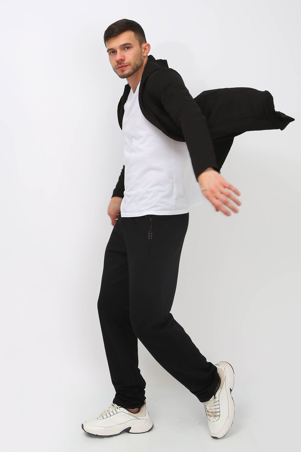 Мужские, спортивные брюки прямого кроя, пояс на резинке со шнурком внутри, средняя посадка, два кармана на молнии, на карманах декоративная вышивка. Материал держит форму, не скатывается. Ткань 2-х нитка компакт пенье. Отлично подойдут для занятий спортом, для повседневной носки.