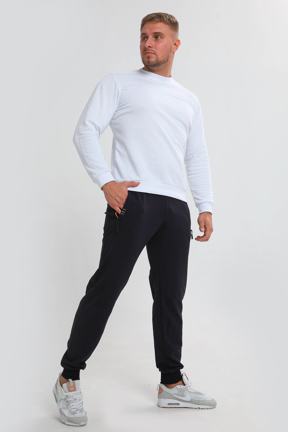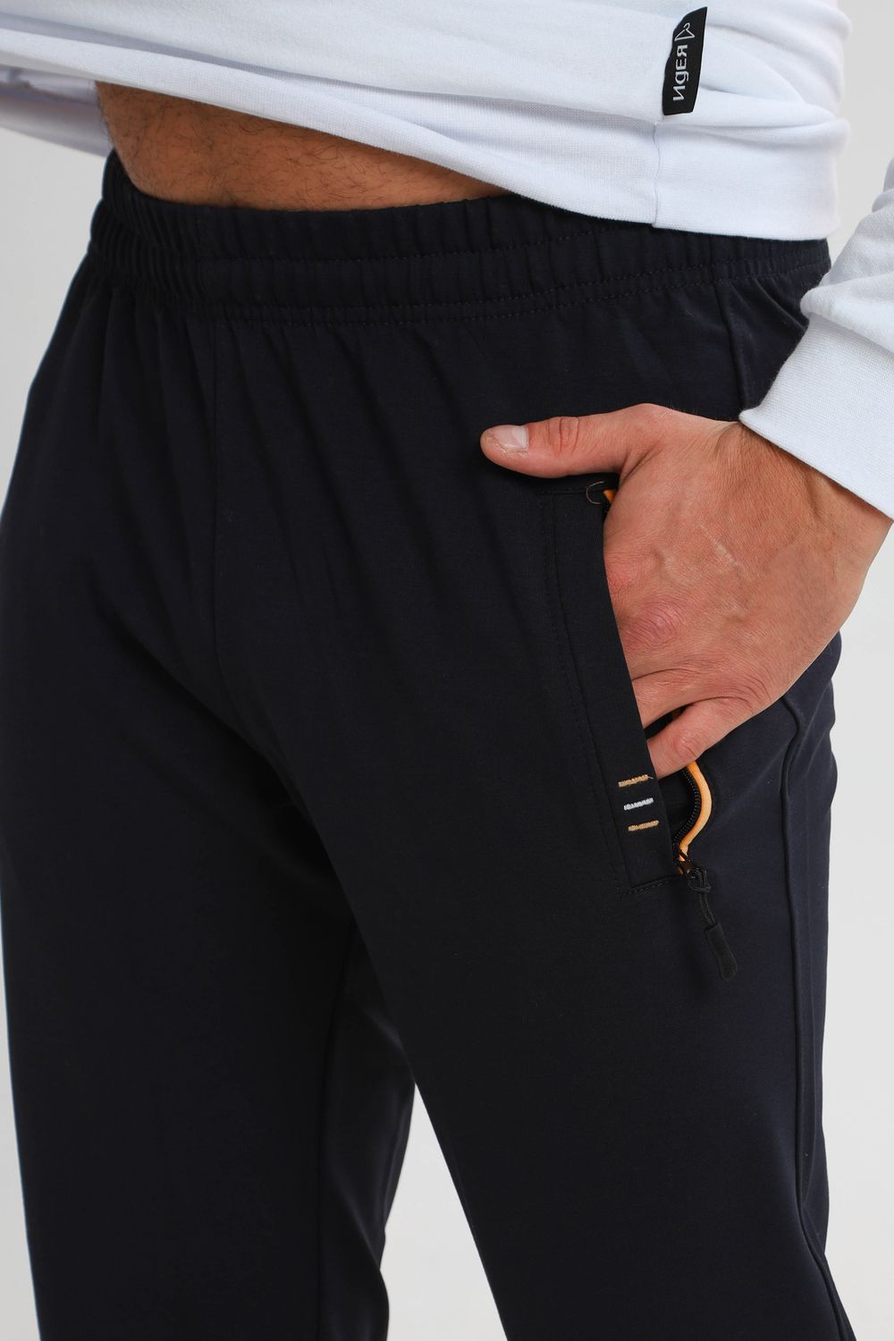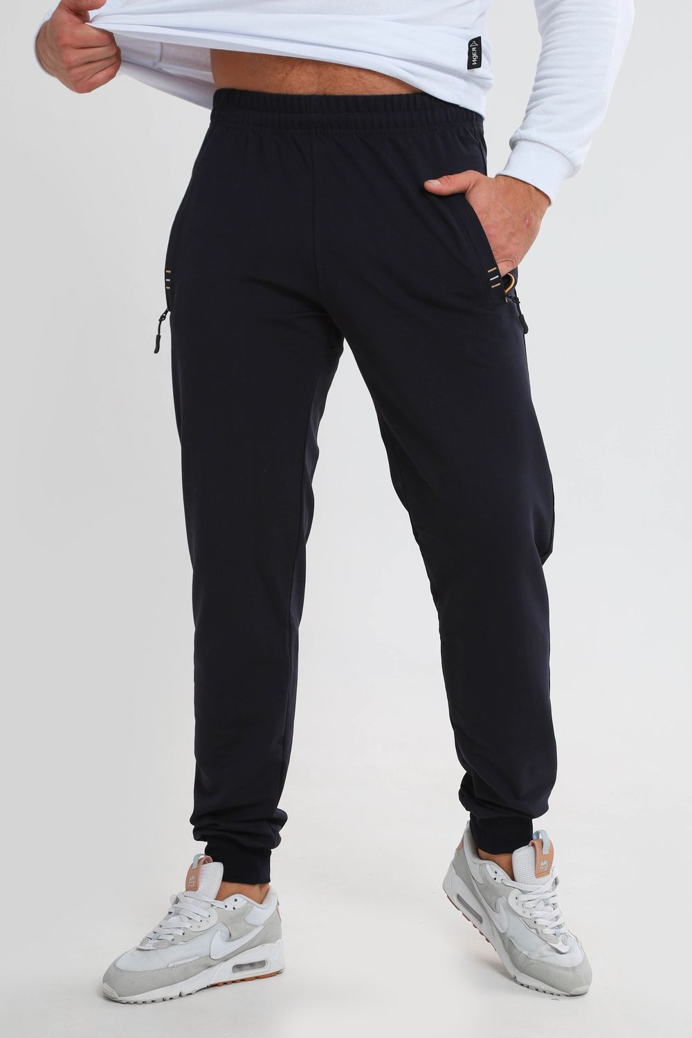 Спортивные мужские брюки, отличного качества. Пояс на резинке, средняя посадка, низ изделия на манжете, два боковых - декоративных кармана на молнии. Подойдут для спорта, отдыха, повседневной носки.