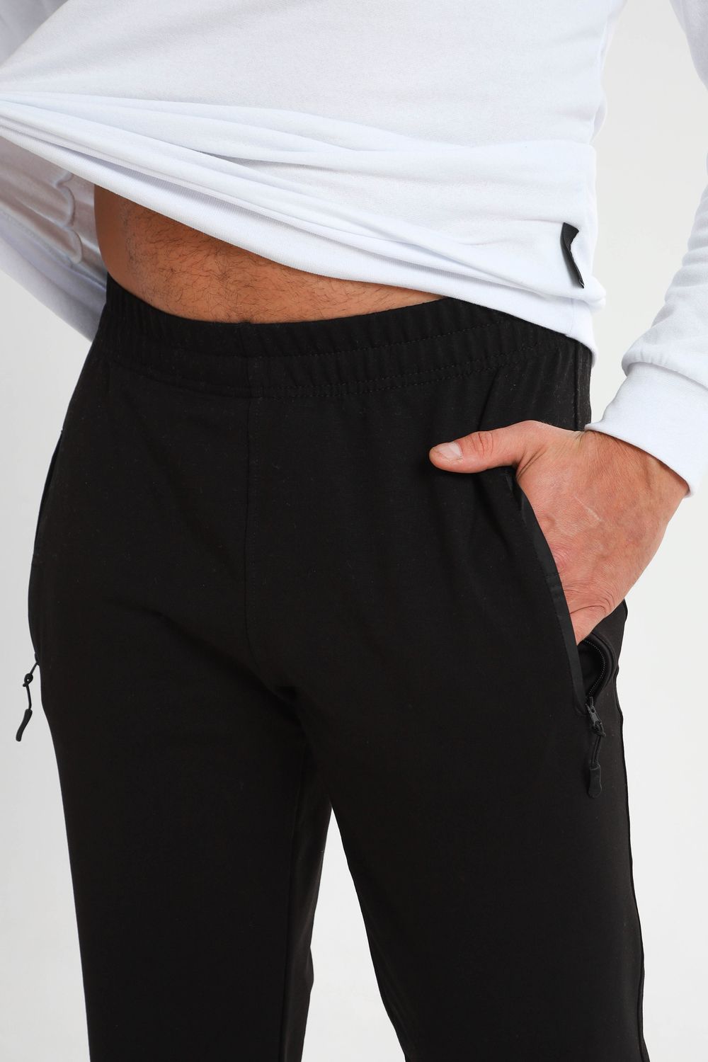 Мужские спортивные брюки прямого кроя, пояс на резинке - средняя посадка. Два боковых кармана на молнии с вставкой из плащевки. Материал держит форму, не скатывается. Подойдут для повседневной носки, для занятий спортом.
