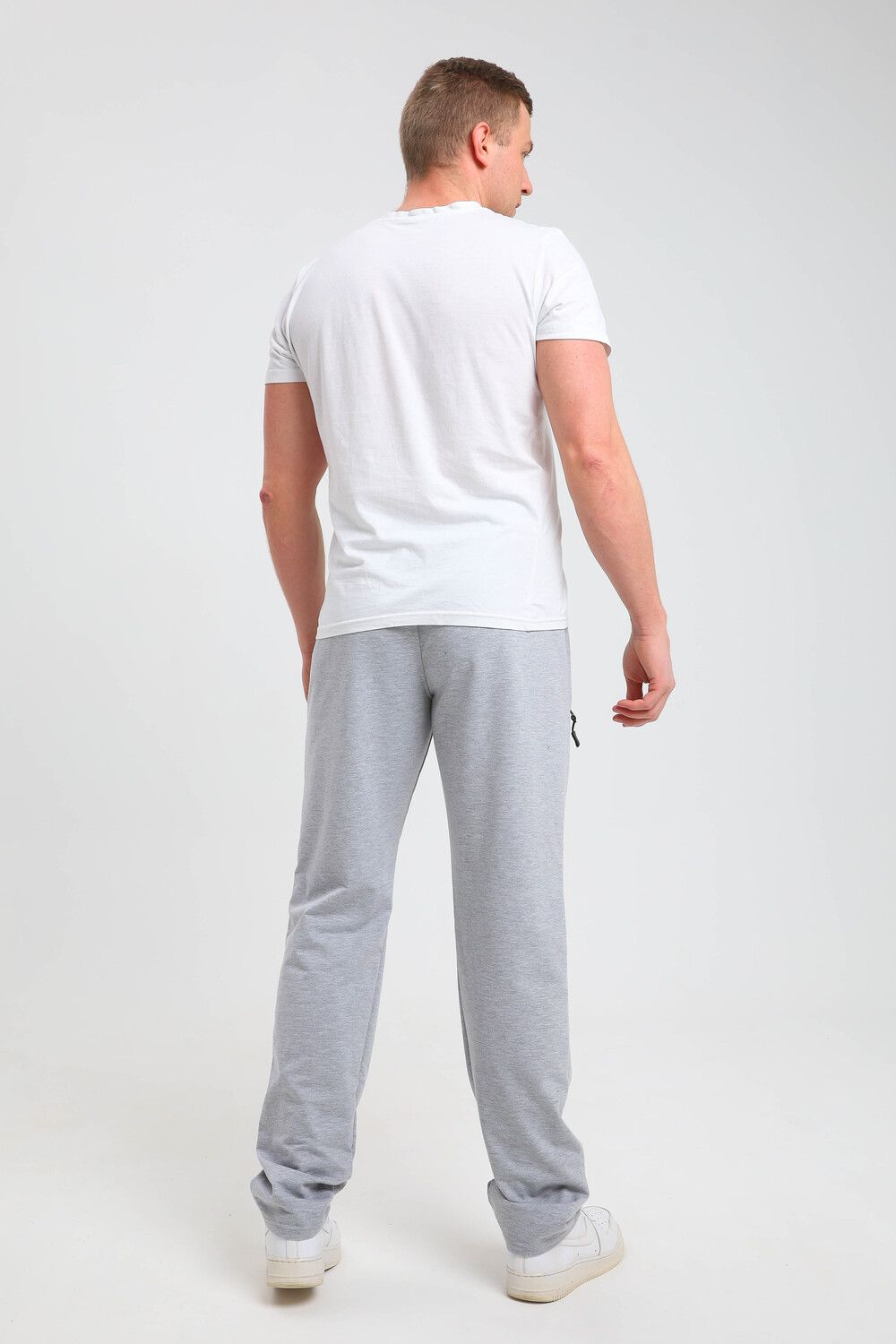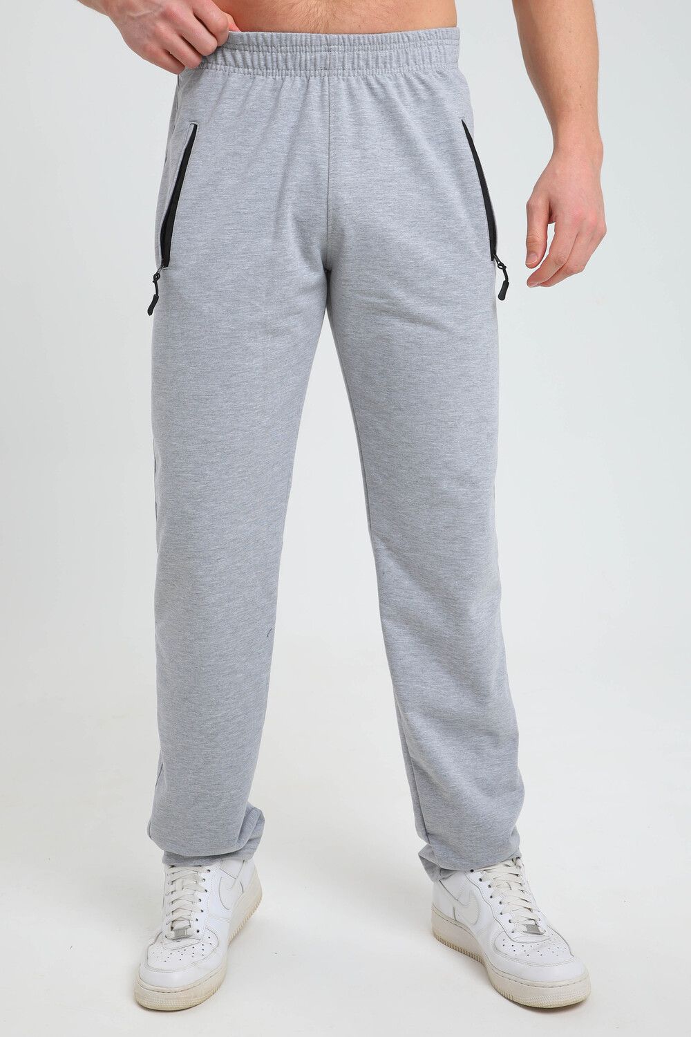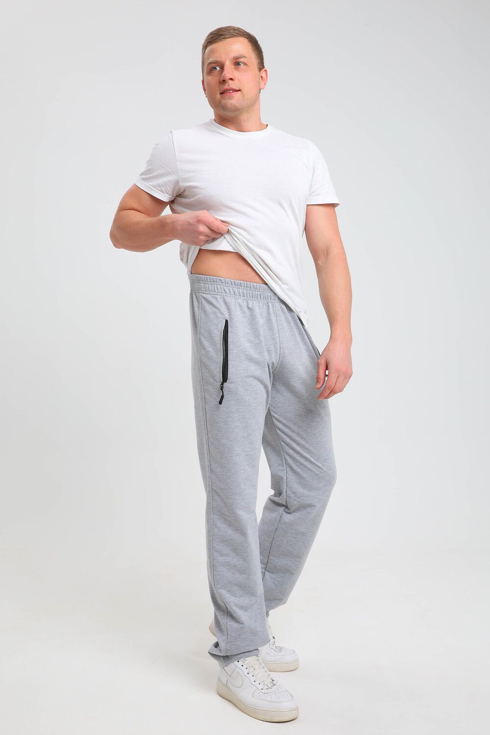 Мужские спортивные брюки прямого кроя, пояс на резинке - средняя посадка. Два боковых кармана на молнии с вставкой из плащевки. Материал держит форму, не скатывается. Подойдут для повседневной носки, для занятий спортом.