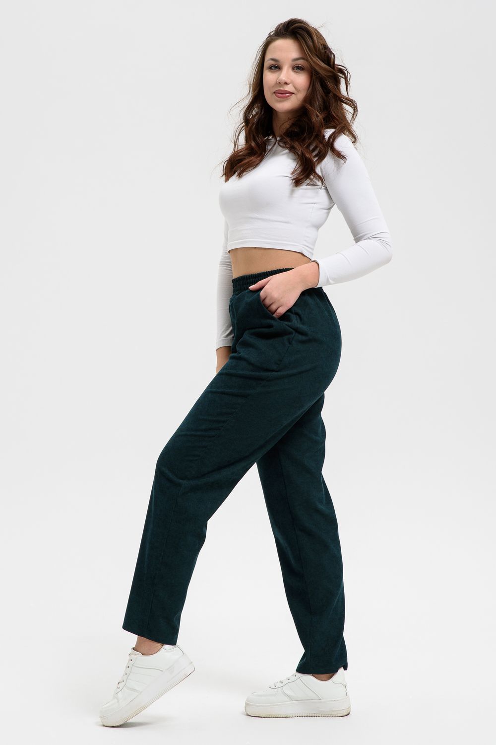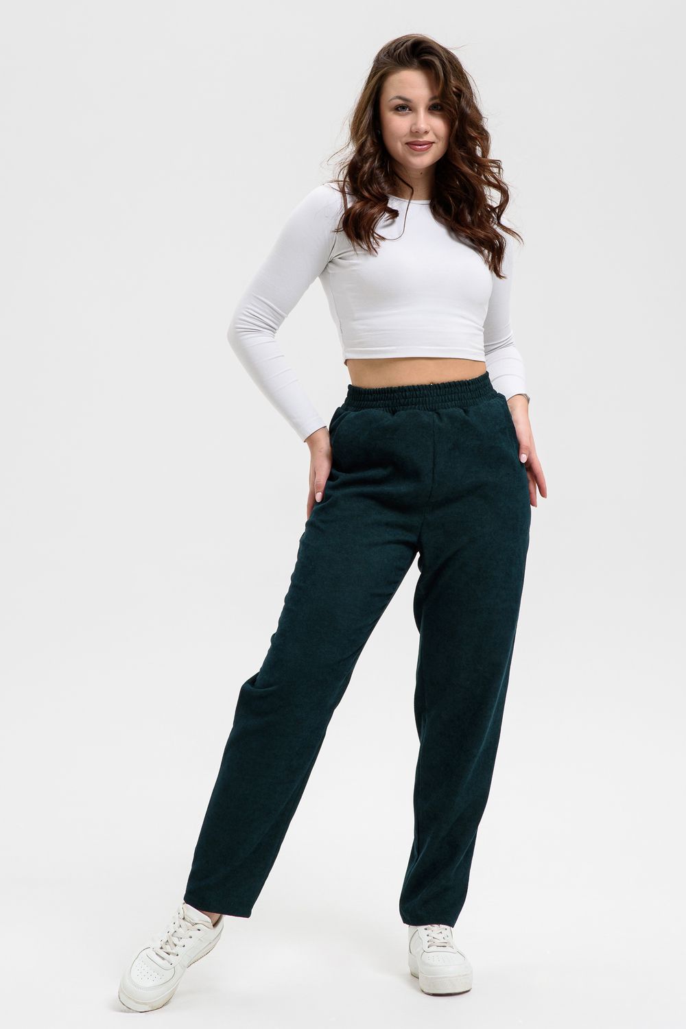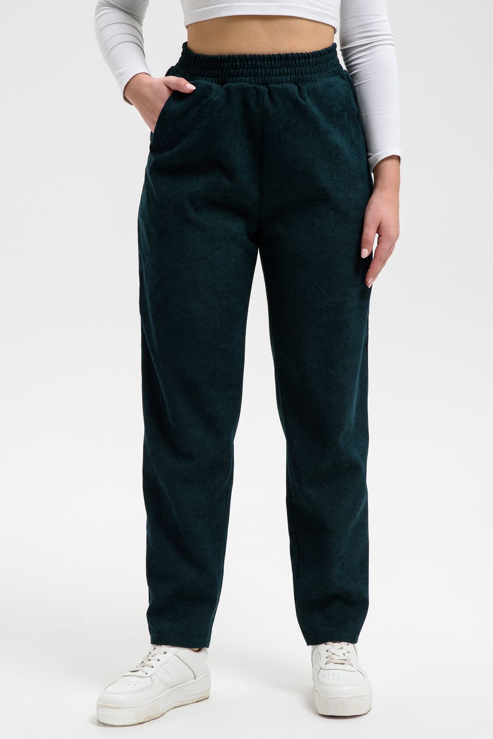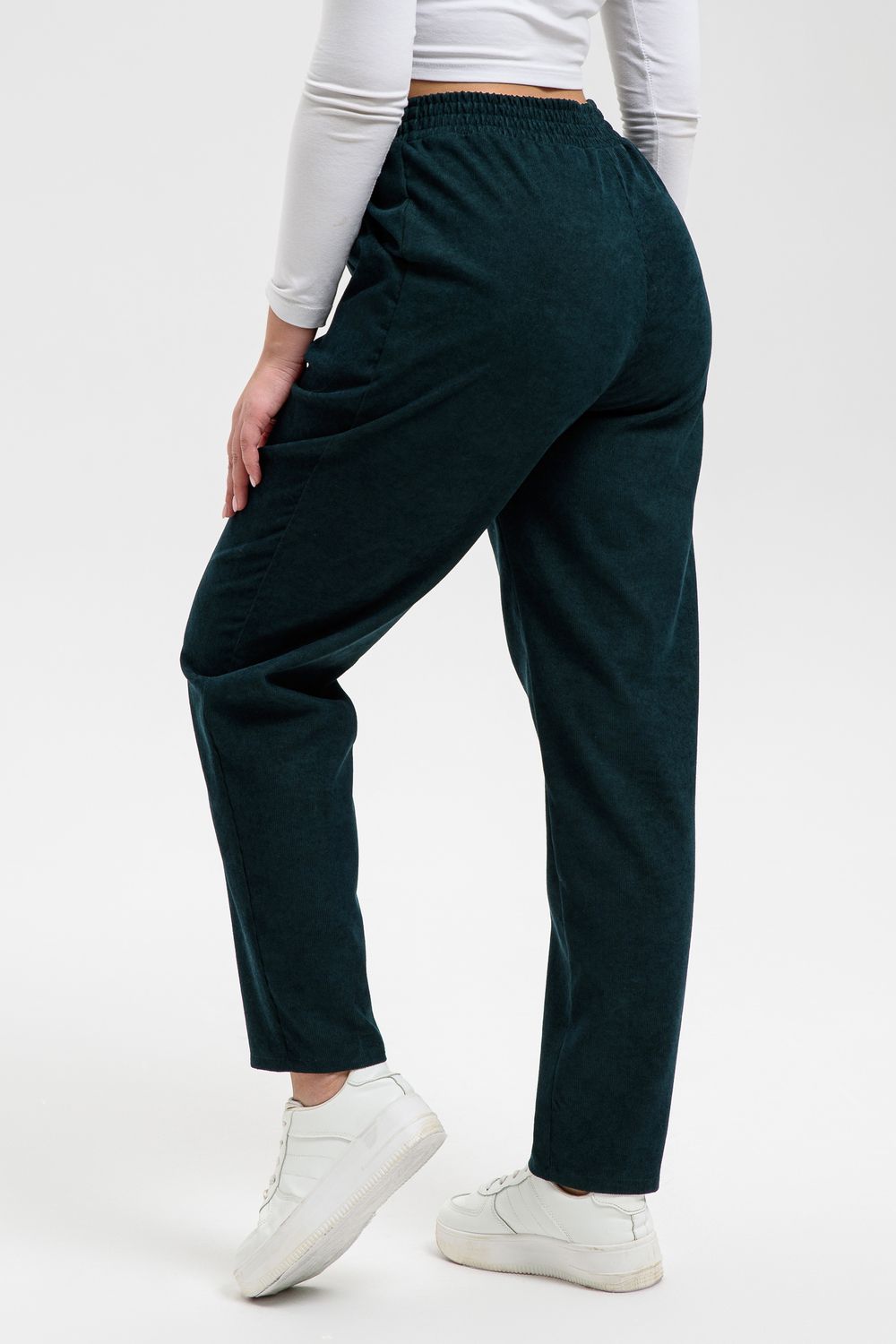 Удобные повседневные брюки из микровельвета на все случаи жизни станут приятным дополнением к вашему осеннему гардеробу. Высокая посадка и широкая резинка на поясе обеспечит комфорт при носке. Брюки не мнутся, хорошо смотрятся и со спортивной обувью, и с демисезонными полусапожками. По бокам внутренние карманы, полноценная длина, обхват талии в размерной сетке соответствует длине резинки в растянутом виде.