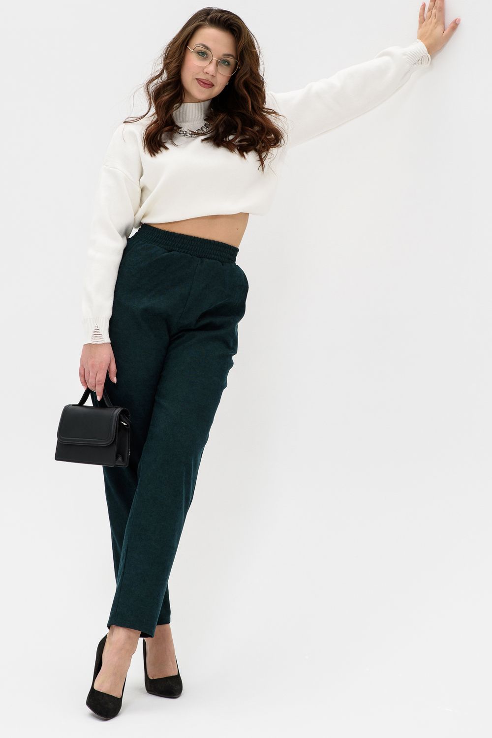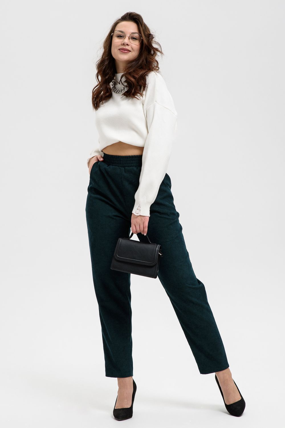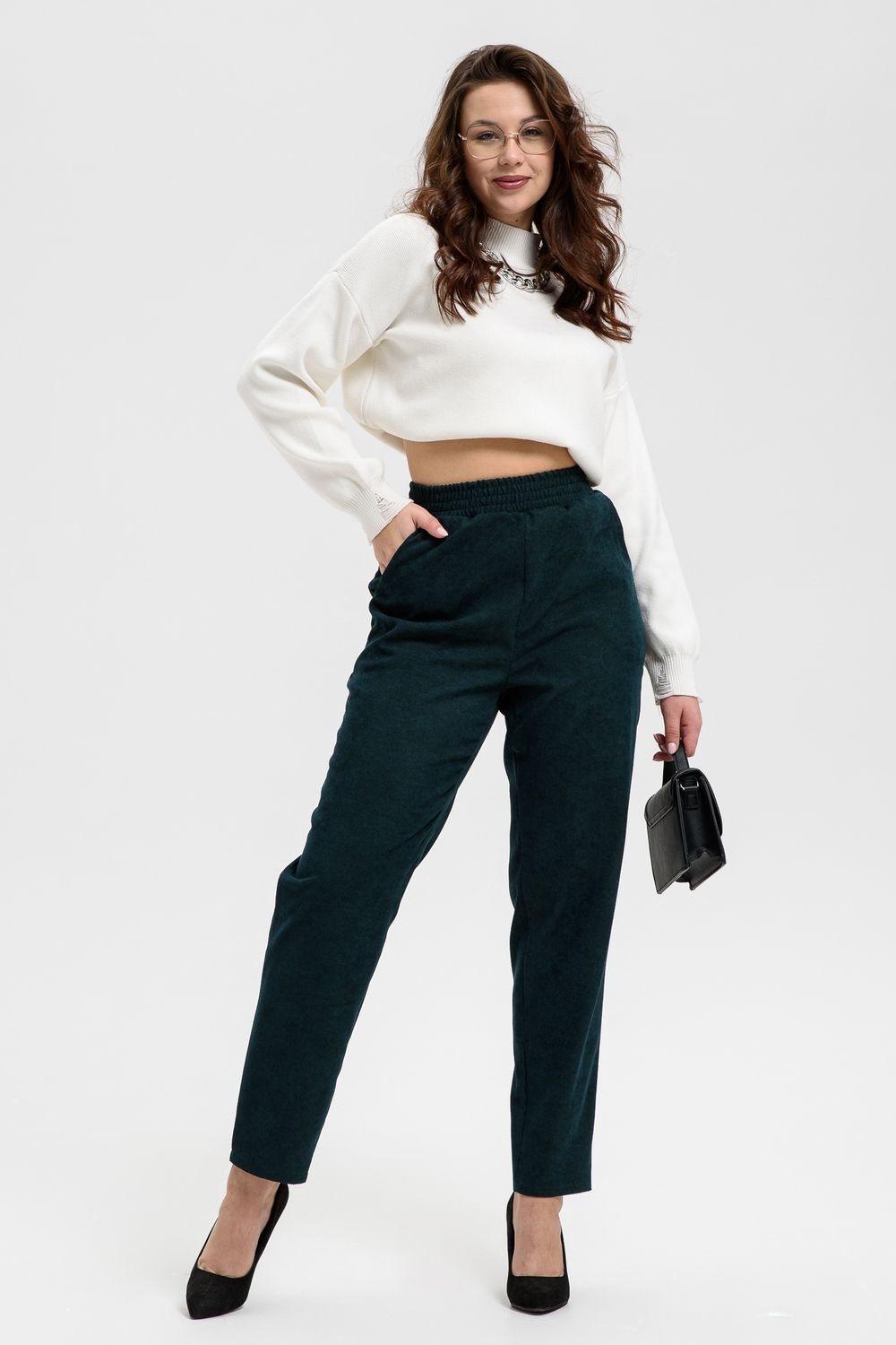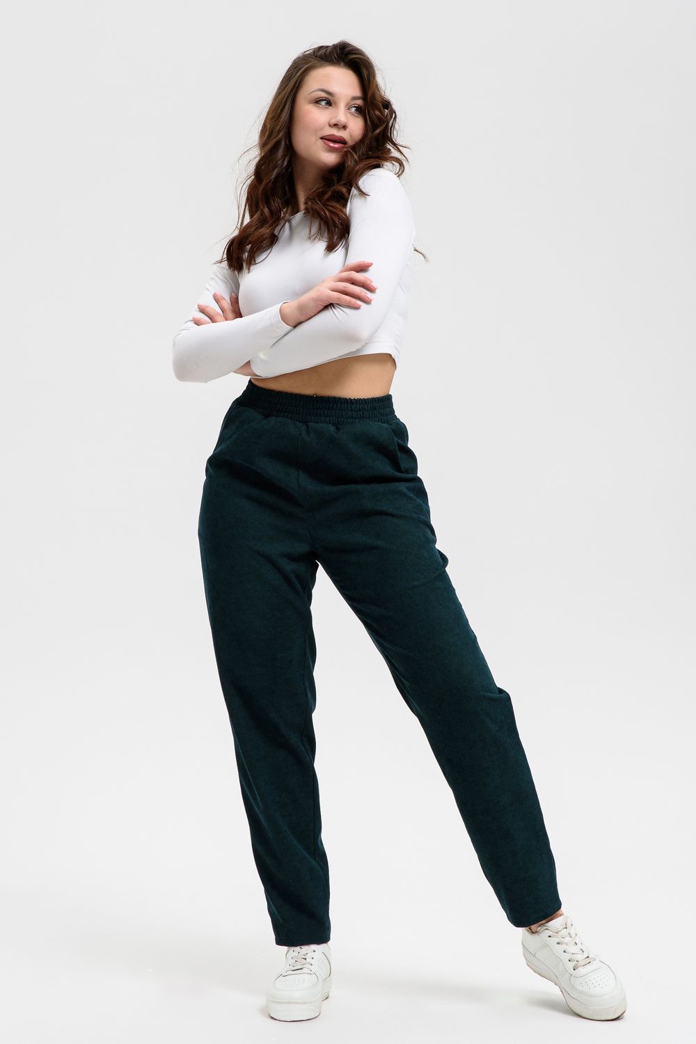 Удобные повседневные брюки из микровельвета на все случаи жизни станут приятным дополнением к вашему осеннему гардеробу. Высокая посадка и широкая резинка на поясе обеспечит комфорт при носке. Брюки не мнутся, хорошо смотрятся и со спортивной обувью, и с демисезонными полусапожками. По бокам внутренние карманы, полноценная длина, обхват талии в размерной сетке соответствует длине резинки в растянутом виде.