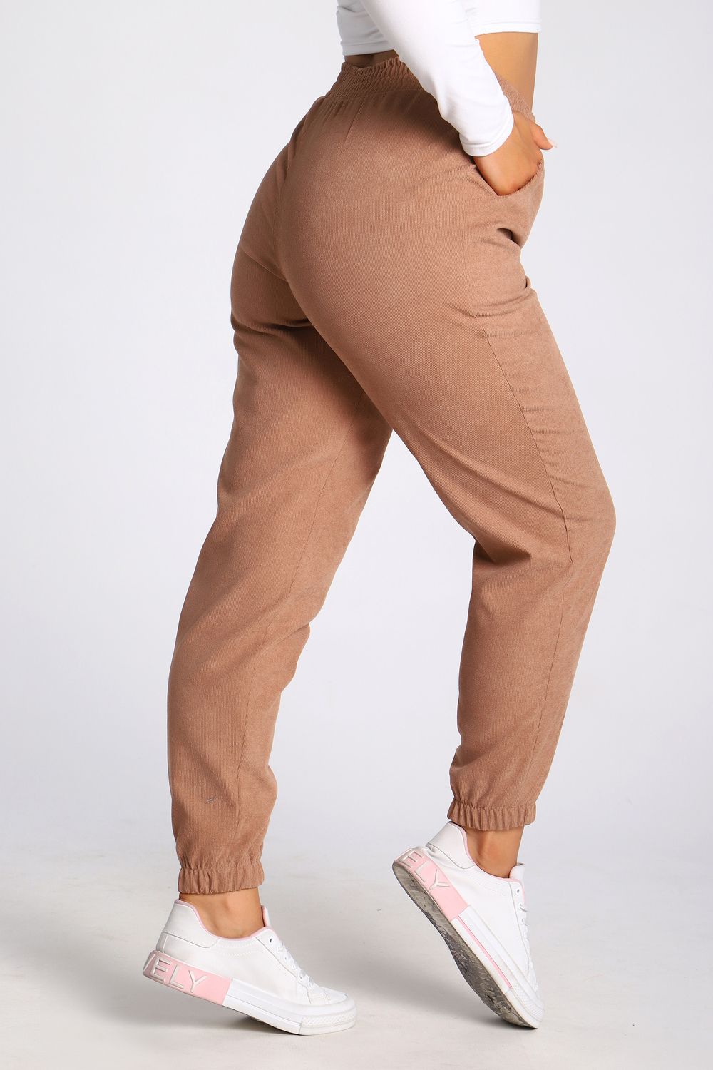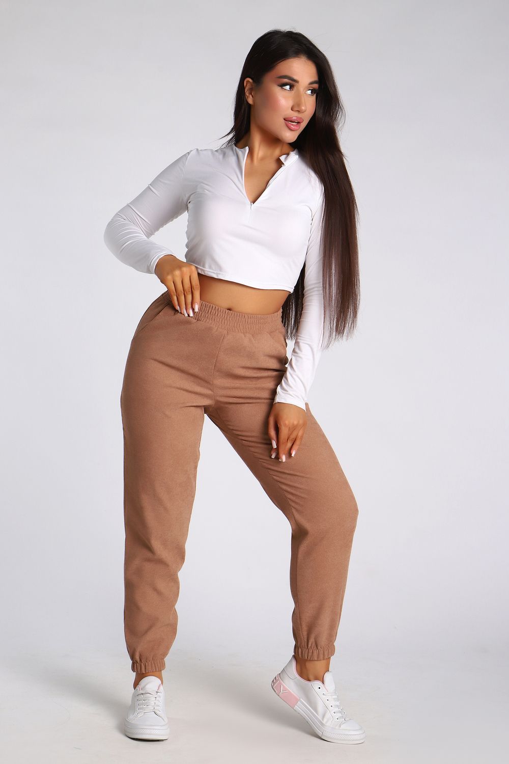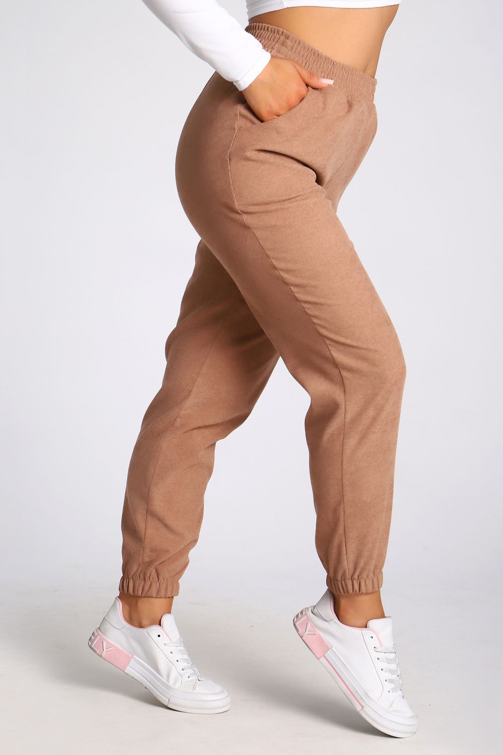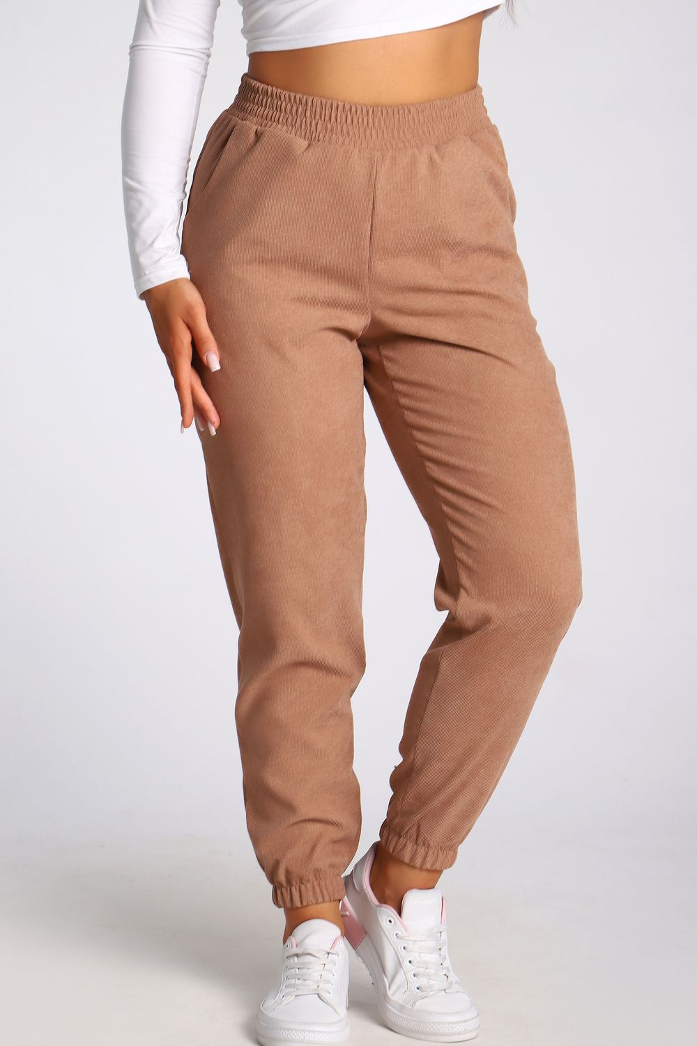Удобные повседневные брюки-джоггеры из микровельвета. Подойдут для работы, прогулок, встреч с друзьями. Модель хорошо смотрится со спортивной обувью .Ткань микровельвет отличается практичностью: она не мнется, не электризуется, проста в уходе. Брюки прямого кроя, слегка зауженные, внизу собраны на резинку шириной 3см. Широкий пояс на резинке, простроченный на спецмашине, обеспечит удобство в носке. Высокая посадка, по бокам внутренние карманы. В замерах обхват талии соответствует длине резинки в растянутом виде.