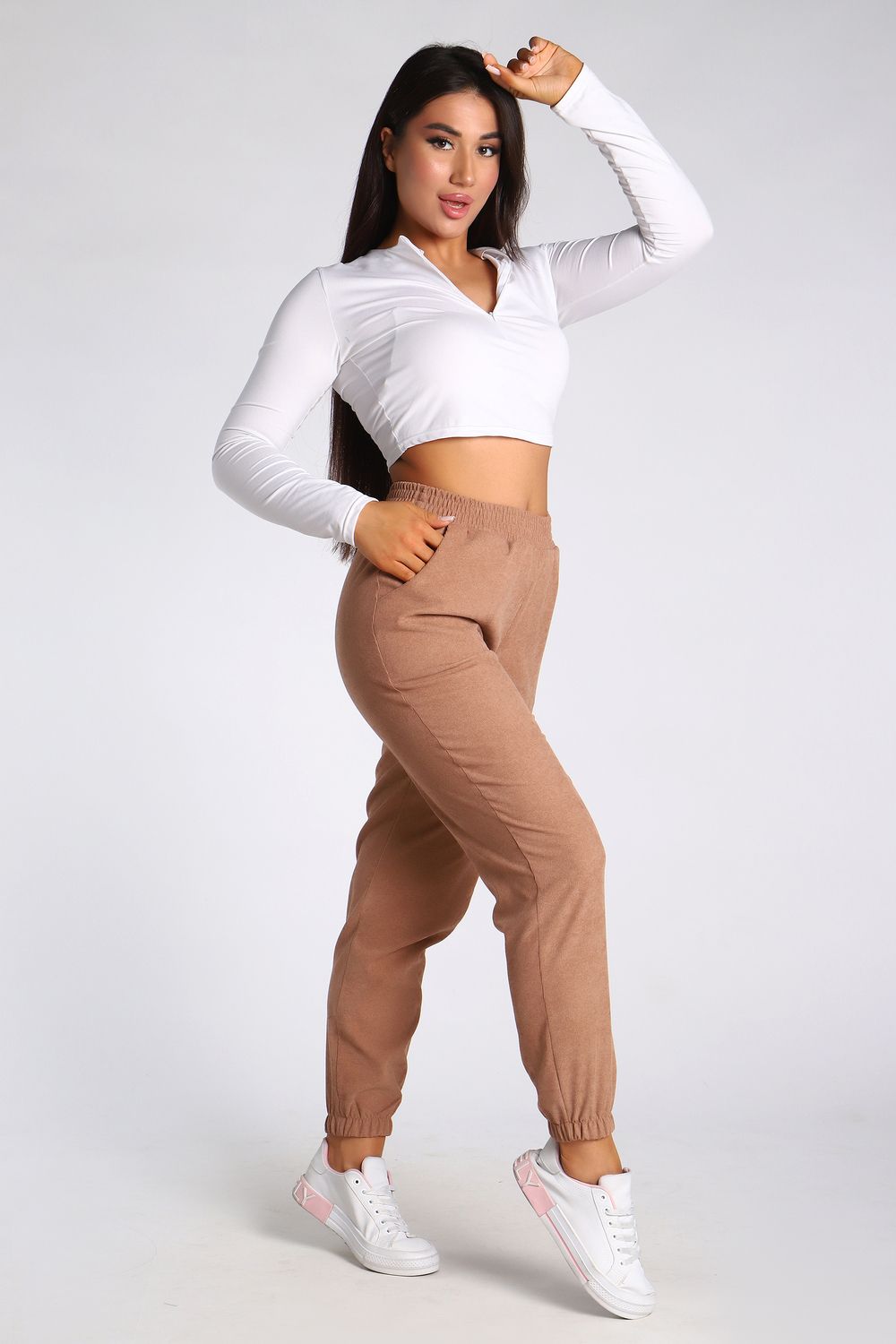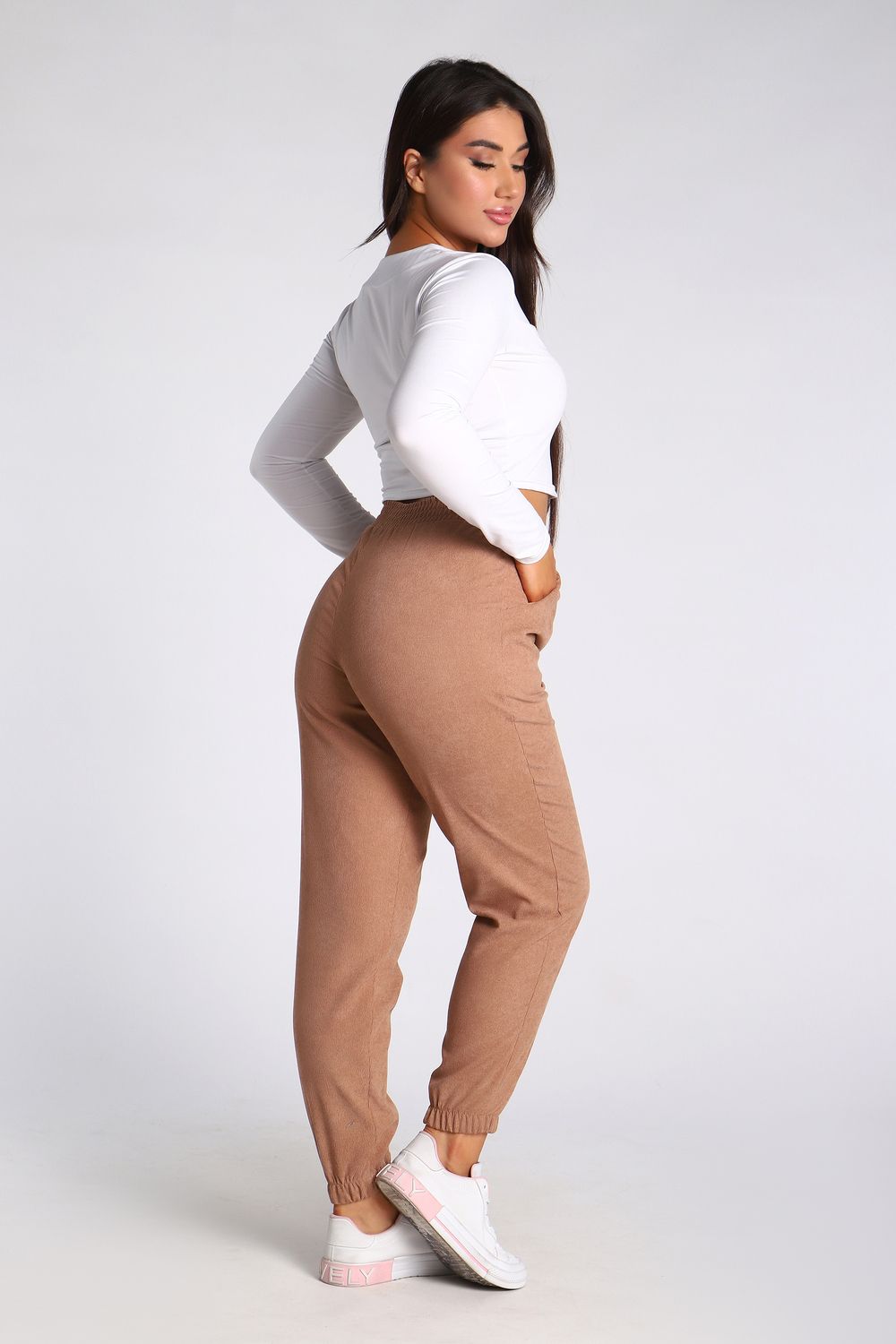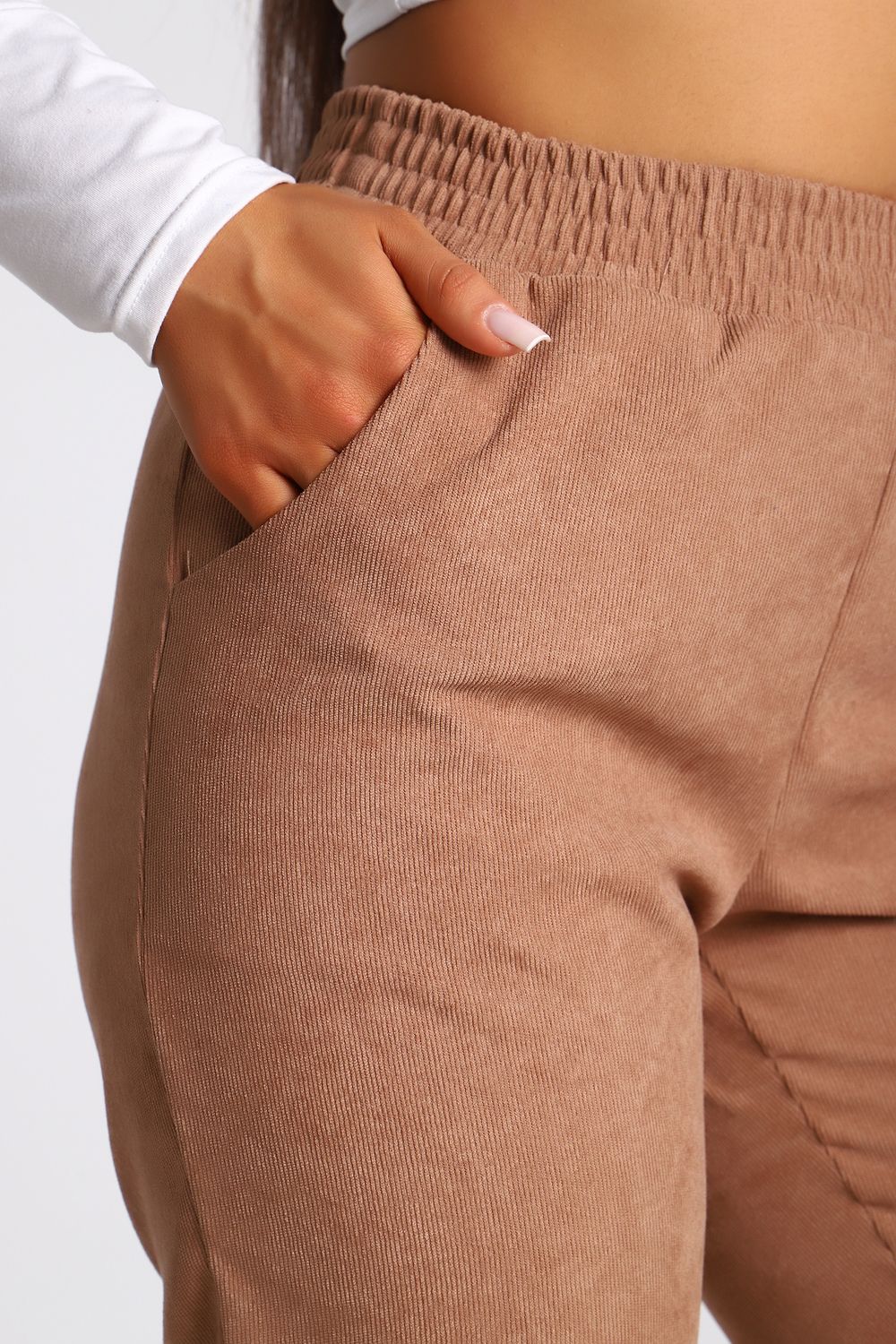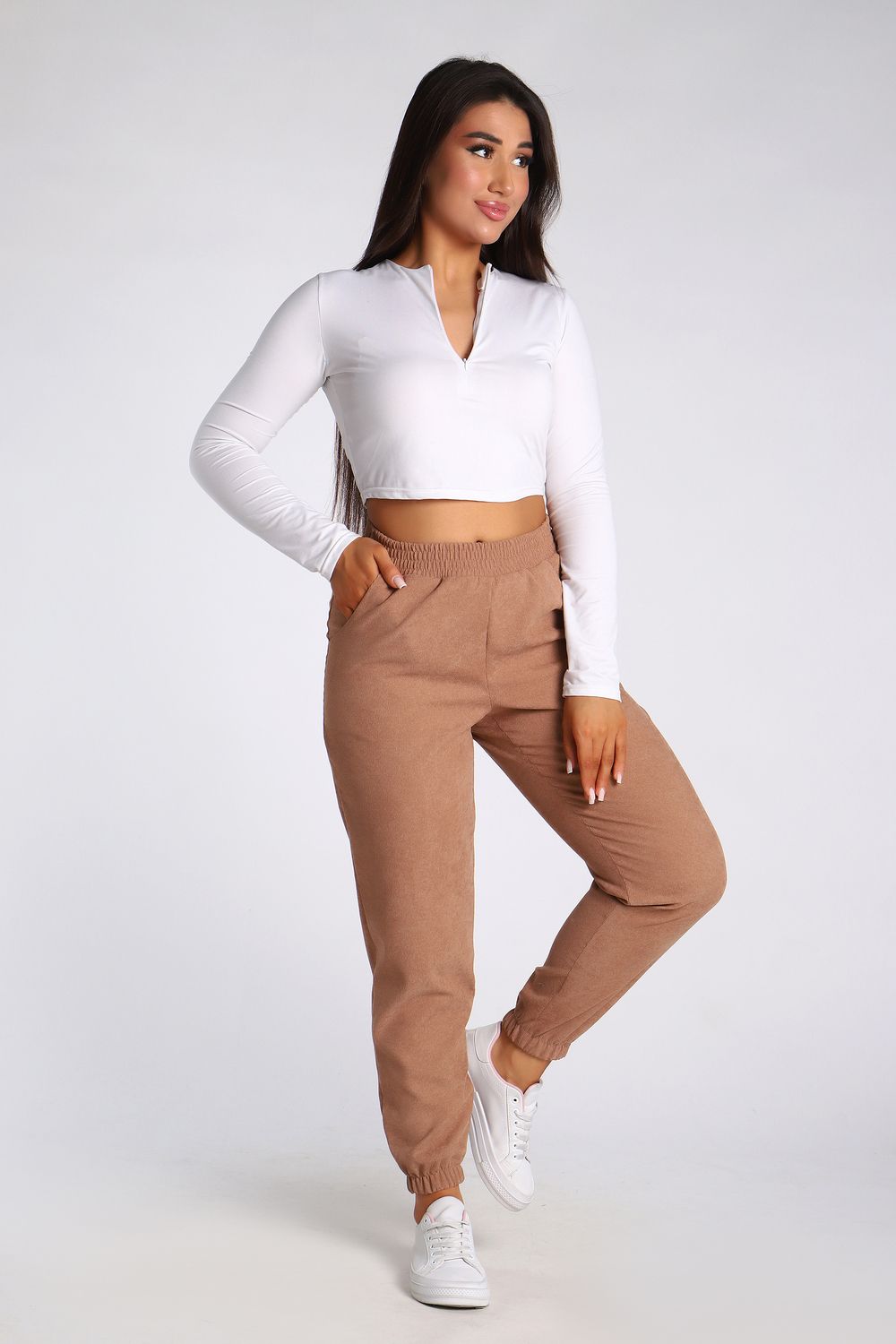 Удобные повседневные брюки-джоггеры из микровельвета. Подойдут для работы, прогулок, встреч с друзьями. Модель хорошо смотрится со спортивной обувью .Ткань микровельвет отличается практичностью: она не мнется, не электризуется, проста в уходе. Брюки прямого кроя, слегка зауженные, внизу собраны на резинку шириной 3см. Широкий пояс на резинке, простроченный на спецмашине, обеспечит удобство в носке. Высокая посадка, по бокам внутренние карманы. В замерах обхват талии соответствует длине резинки в растянутом виде.