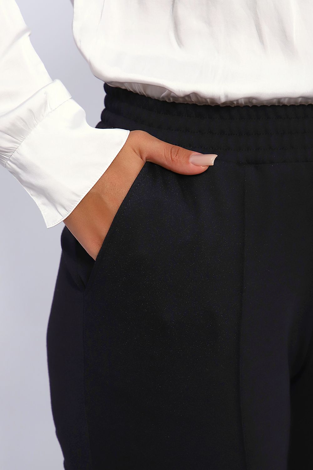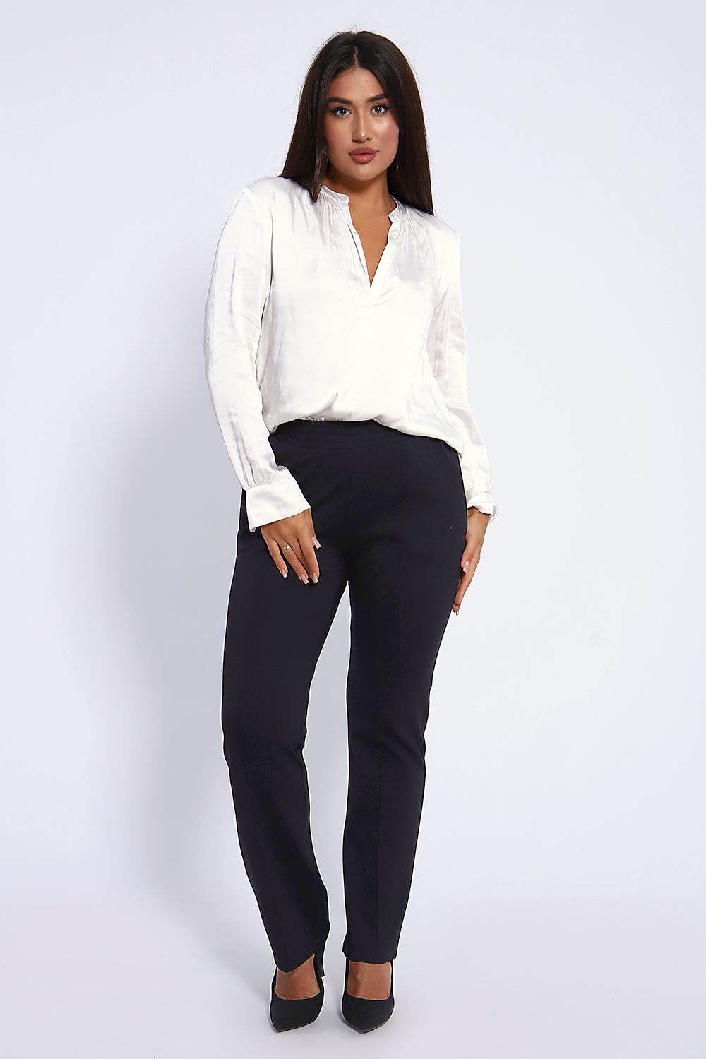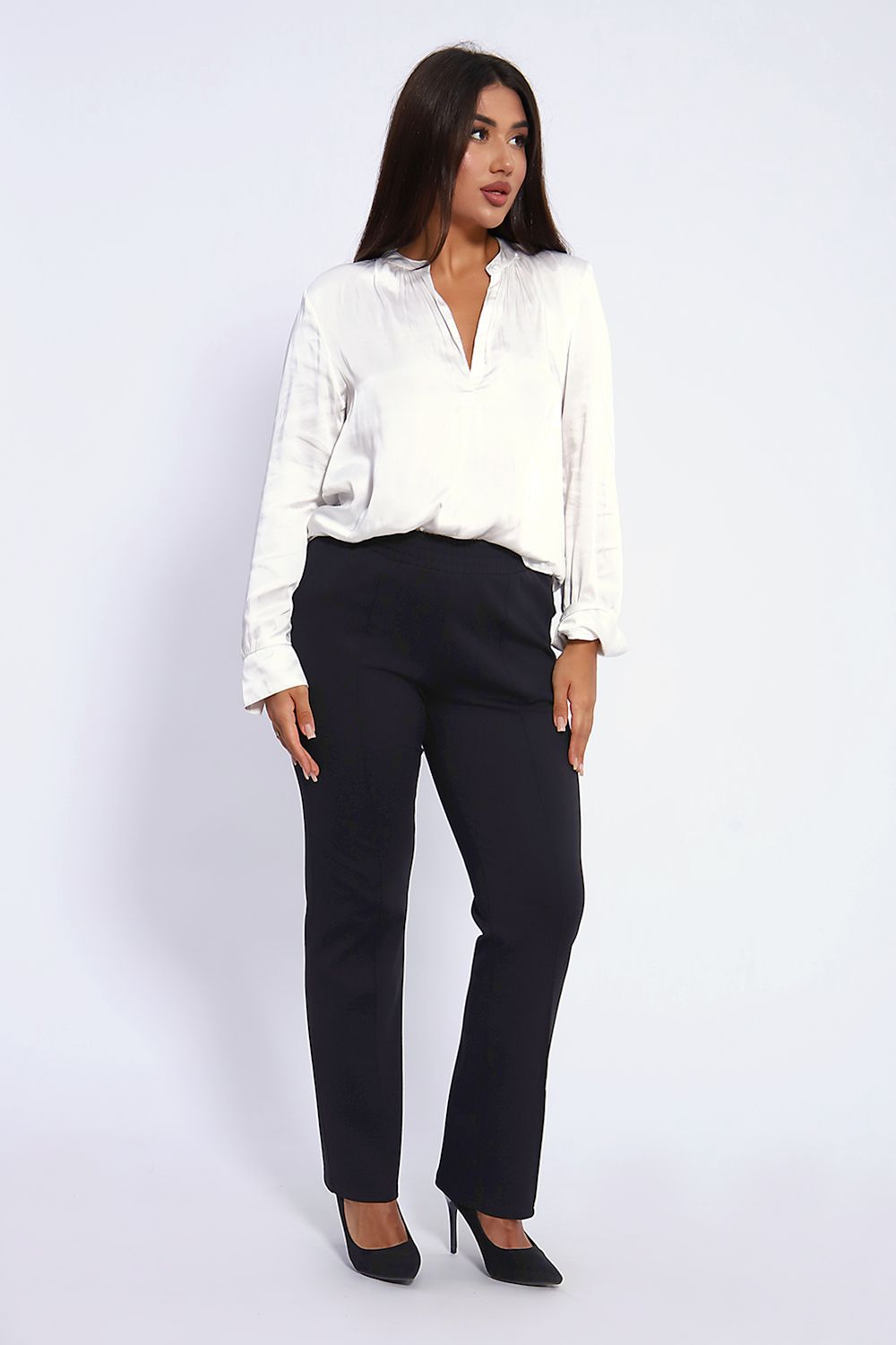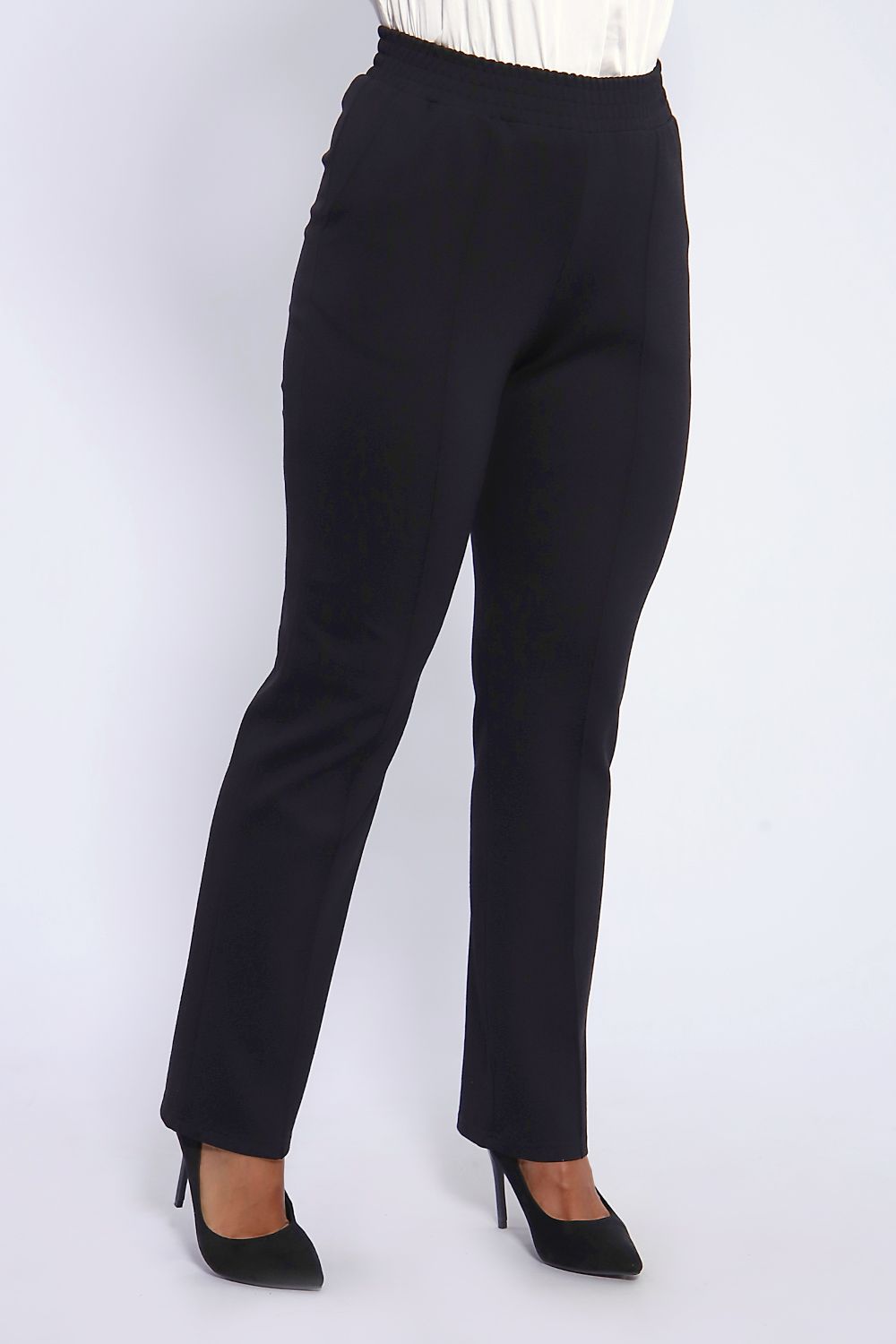Удобные классические брюки на осень и зиму из мягкой приятной ткани - джерси. Ткань плотная, достаточно теплая, хорошо тянется, не электризуется, благодаря наличию в составе вискозы. Брюки прямого кроя, полноценная длина, отстроченные стрелки стройнят фигуру. Пояс на резинке заготовлен на спецмашине, средняя посадка, по бокам внутренние карманы. Отличный вариант для всех случаев жизни: работа, прогулка, праздник.