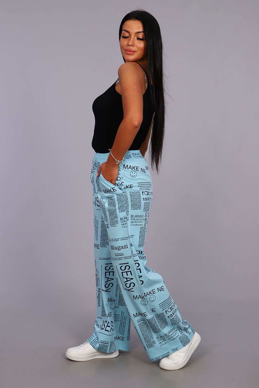 Женские модные брюки - палаццо выполнены из 100% хлопчатобумажного полотна двойного крашения. Ткань в результате такого окрашивания получает более высокие прочностные характеристики, не меняя текстильных качеств. Высокая посадка, вместительные боковые карманы и качественно обработанный на специальной машине пояс, всё это делает модель более комфортной. Брюки такого плана это идеальный вариант, чтобы скрыть все недостатки и подчеркнуть женственность фигуры. А еще для создания целостного образа Вы можете приобрести к ним тунику рубашечного плана № 36544.