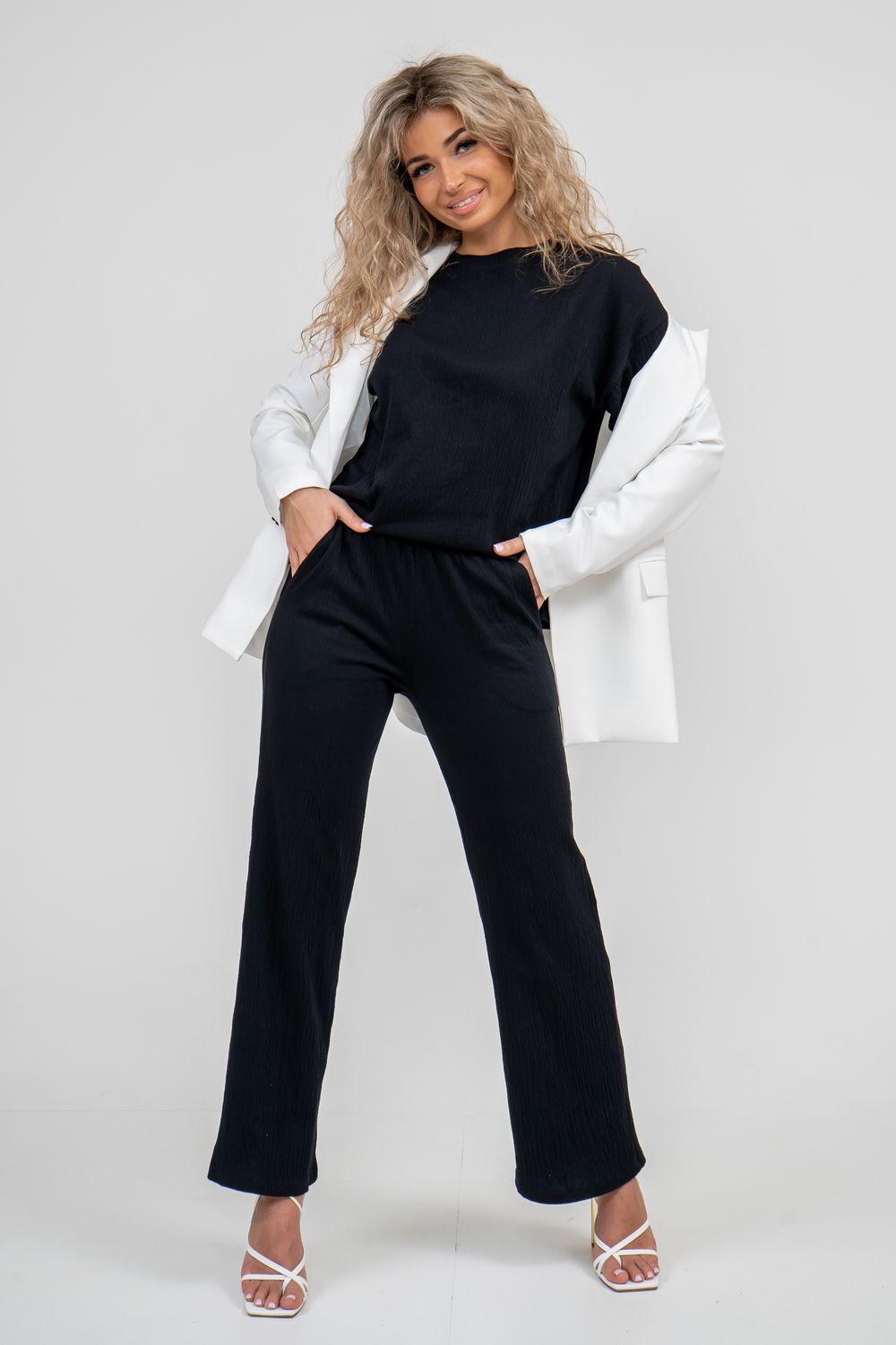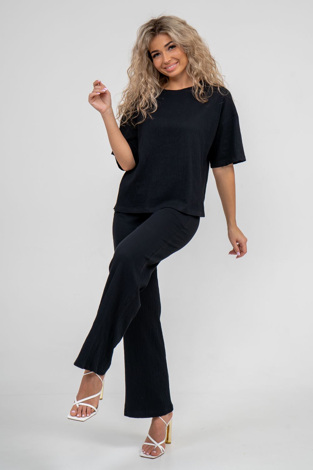 Модные и в то же время универсальные женские брюки выполнены из кулирки гипе жатка компакт. Жатка - это ткань с "мятой" структурой, декоративными заломами и складками. Модель выполнена с двумя боковыми вместительными карманами и поясом, обработанном на специализированной поясной машине. Брюки прямого кроя на широкой резинке с карманами отлично сядут на любой тип фигуры. Это базовая модель, которая сочетается практически с любой одеждой и обувью. Легкие летние, позволяющие обеспечить правильный воздухообмен между телом, комфортные и не стесняют движения, пояс не сдавливает. Мы не оставили без внимания прекрасных представительниц корпулентных форм, поэтому размерный ряд включает в себя большие размеры. Это брюки, которые будут выгодно смотреться в абсолютно любом образе: как спортивные, классические или домашние, школьные для девочки и для беременных. Довольно практичный экземпляр одежды на каждый день отлично подходит для пляжа, прогулок, офиса и деловых встреч. Сейчас полно другой интересной одежды - карго, парашюты, клёш, пижамные, шорты или кюлоты...но как бы ни менялась мода, брюки - палаццо были, есть и будут самой универсальной вещью женского гардероба. Красивые и эстетичные палаццо - отличный подарок для любимой девушки или жены на день рождения, юбилей, годовщину, 8 Марта или Новый год. Покупайте наши стильные брюки из жатки и создавайте модные образы на каждый день!