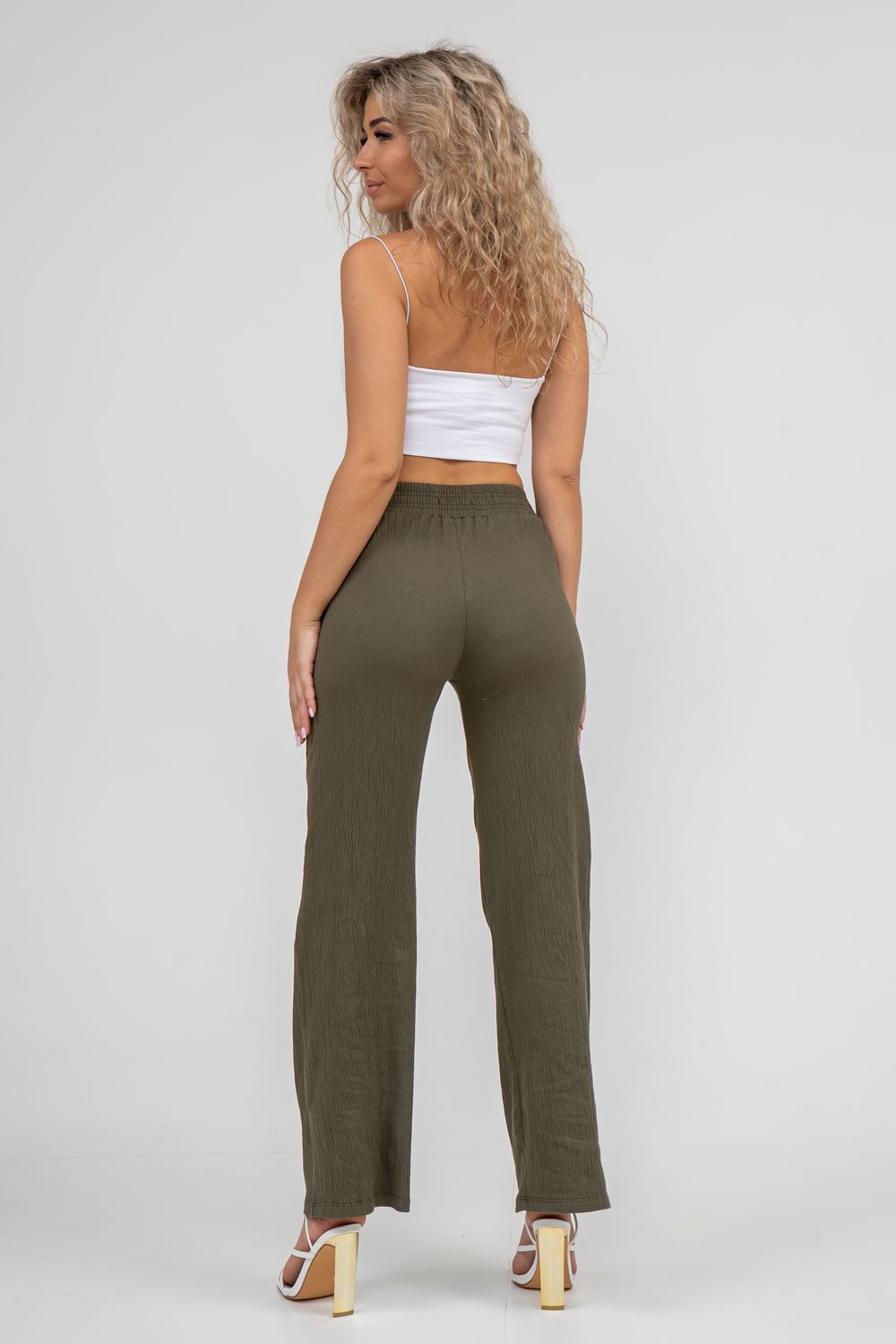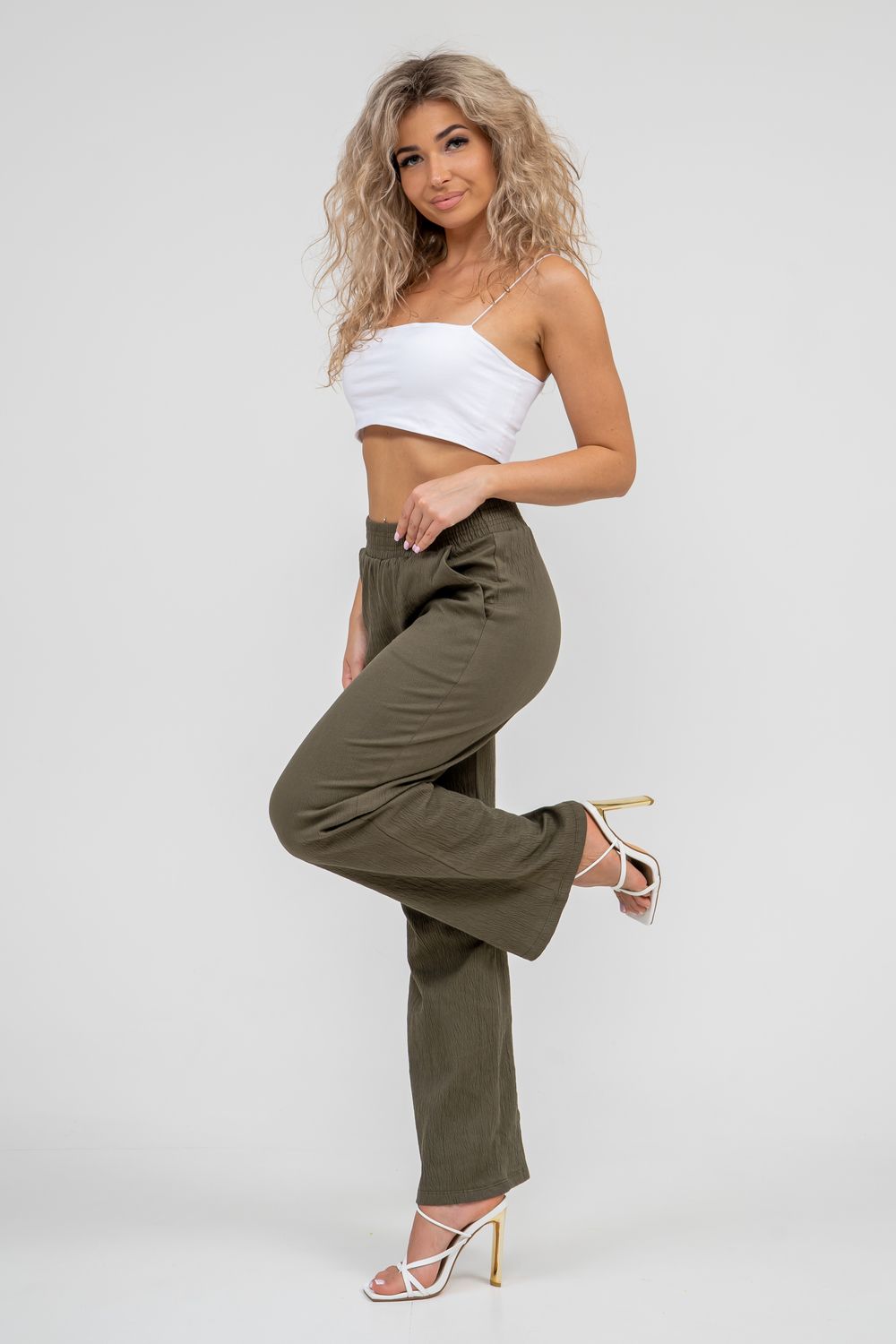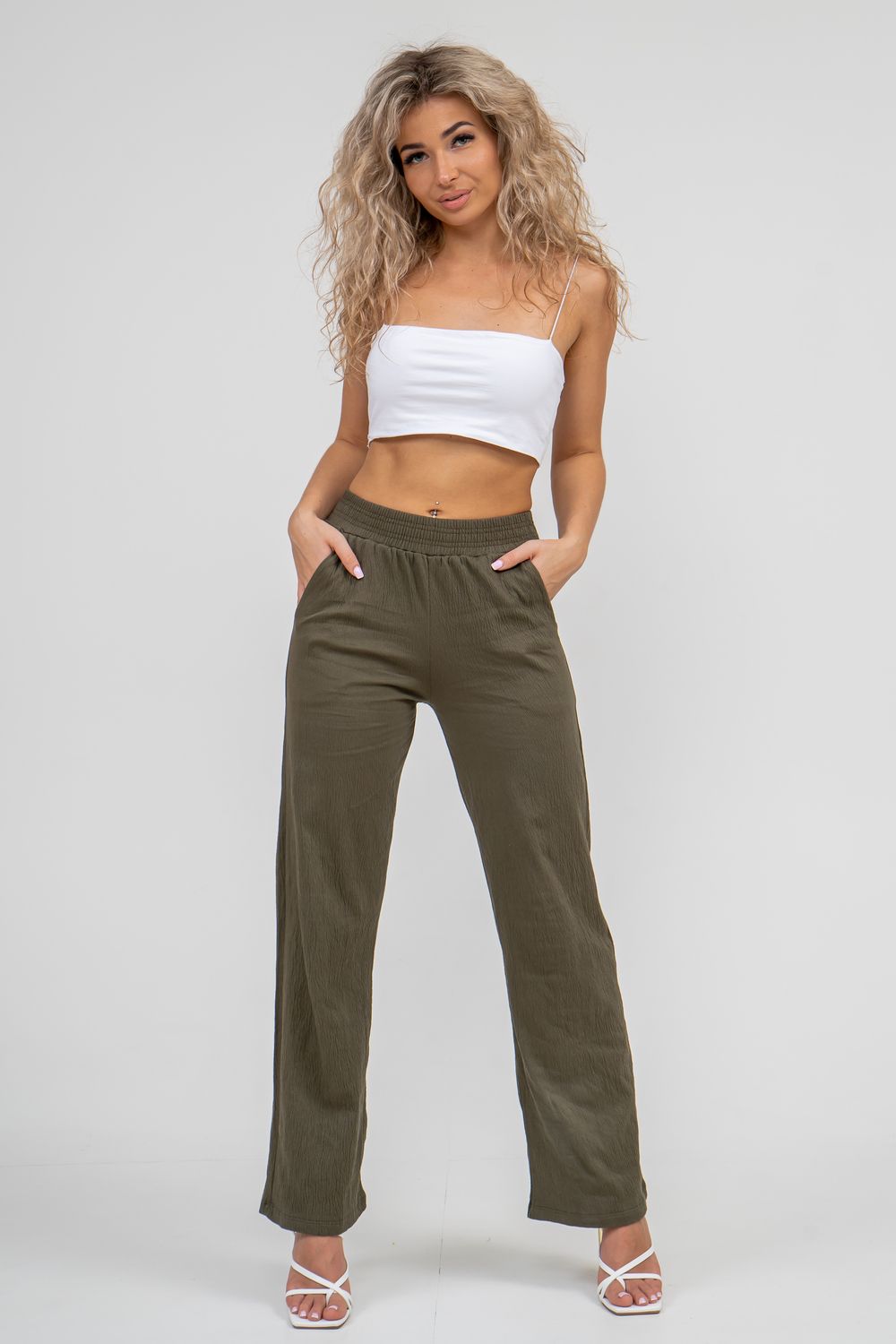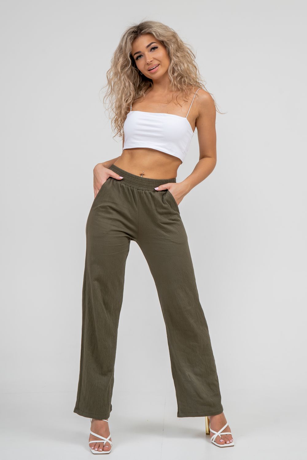 Модные и в то же время универсальные женские брюки выполнены из кулирки гипе жатка компакт. Жатка - это ткань с "мятой" структурой, декоративными заломами и складками. Модель выполнена с двумя боковыми вместительными карманами и поясом, обработанном на специализированной поясной машине. Брюки прямого кроя на широкой резинке с карманами отлично сядут на любой тип фигуры. Это базовая модель, которая сочетается практически с любой одеждой и обувью. Легкие летние, позволяющие обеспечить правильный воздухообмен между телом, комфортные и не стесняют движения, пояс не сдавливает. Мы не оставили без внимания прекрасных представительниц корпулентных форм, поэтому размерный ряд включает в себя большие размеры. Это брюки, которые будут выгодно смотреться в абсолютно любом образе: как спортивные, классические или домашние, школьные для девочки и для беременных. Довольно практичный экземпляр одежды на каждый день отлично подходит для пляжа, прогулок, офиса и деловых встреч. Сейчас полно другой интересной одежды - карго, парашюты, клёш, пижамные, шорты или кюлоты...но как бы ни менялась мода, брюки - палаццо были, есть и будут самой универсальной вещью женского гардероба. Красивые и эстетичные палаццо - отличный подарок для любимой девушки или жены на день рождения, юбилей, годовщину, 8 Марта или Новый год. Покупайте наши стильные брюки из жатки и создавайте модные образы на каждый день!