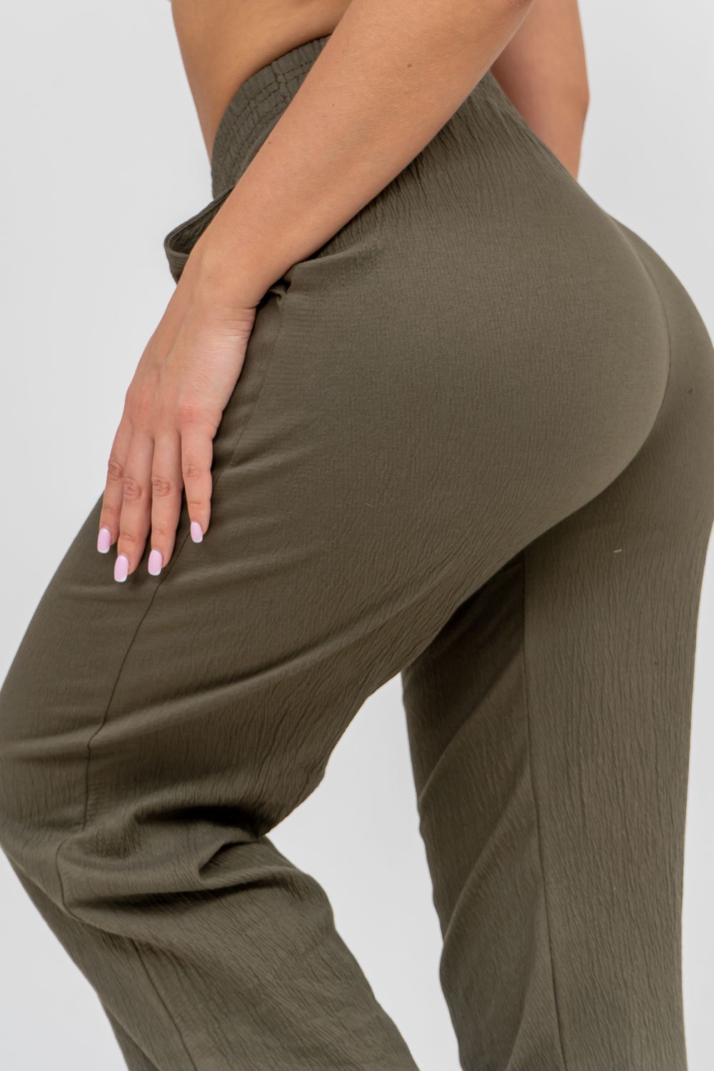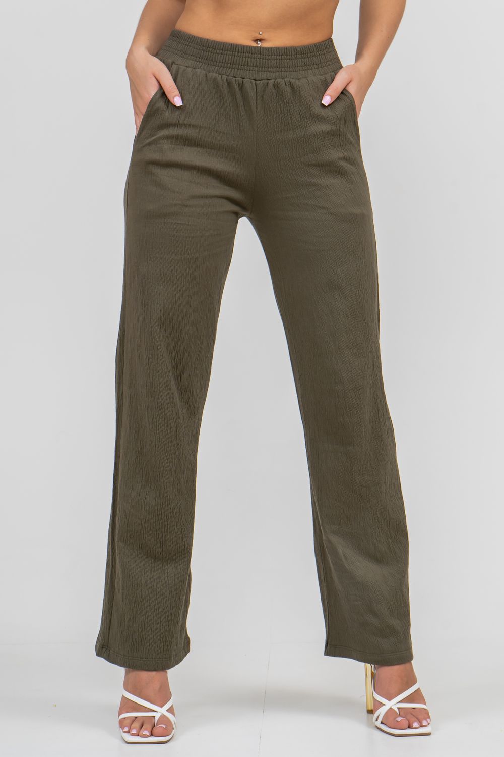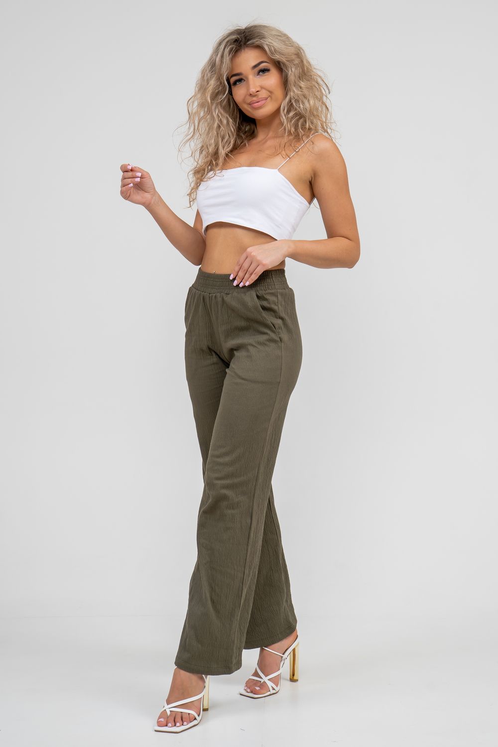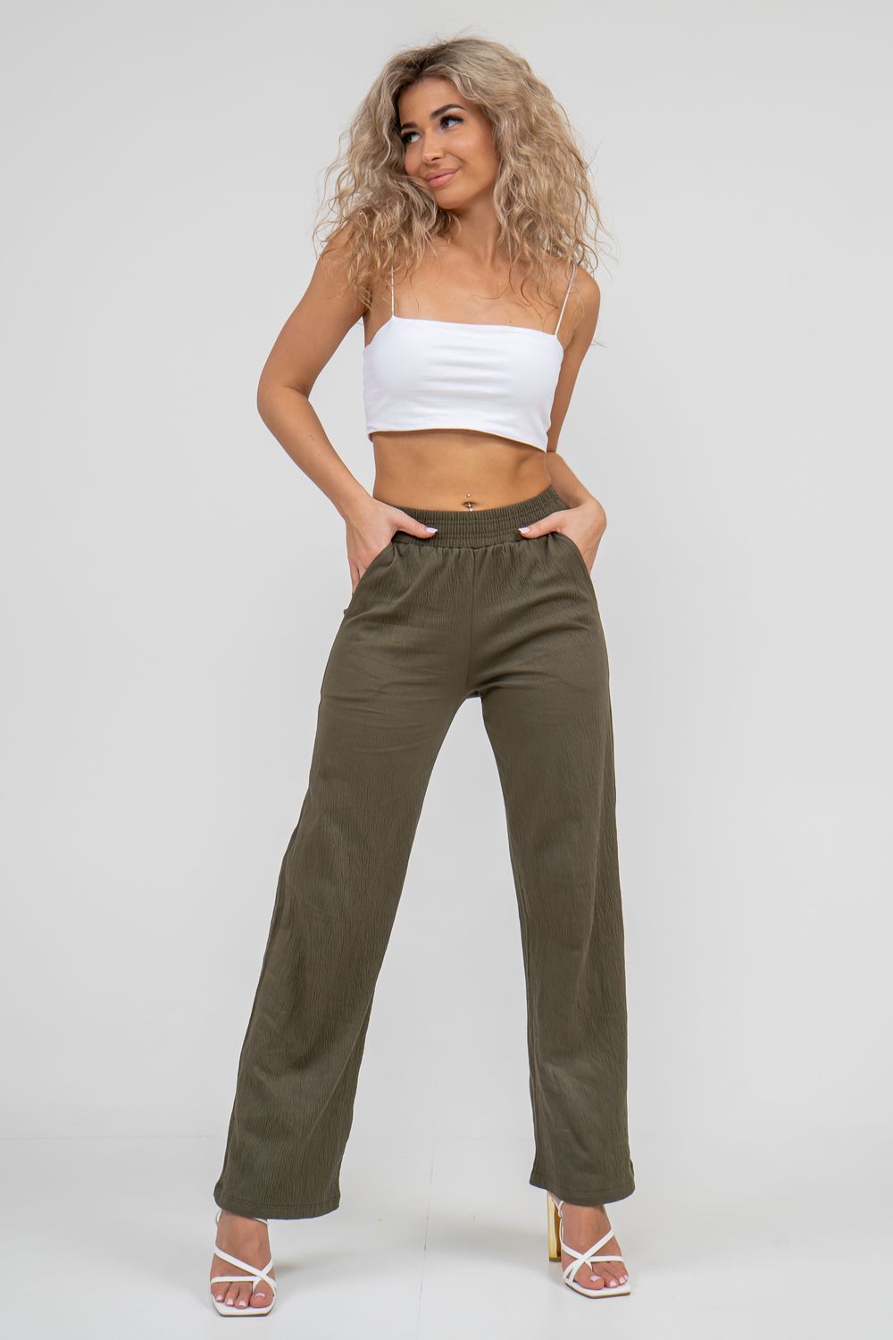 Модные и в то же время универсальные женские брюки выполнены из кулирки гипе жатка компакт. Жатка - это ткань с "мятой" структурой, декоративными заломами и складками. Модель выполнена с двумя боковыми вместительными карманами и поясом, обработанном на специализированной поясной машине. Брюки прямого кроя на широкой резинке с карманами отлично сядут на любой тип фигуры. Это базовая модель, которая сочетается практически с любой одеждой и обувью. Легкие летние, позволяющие обеспечить правильный воздухообмен между телом, комфортные и не стесняют движения, пояс не сдавливает. Мы не оставили без внимания прекрасных представительниц корпулентных форм, поэтому размерный ряд включает в себя большие размеры. Это брюки, которые будут выгодно смотреться в абсолютно любом образе: как спортивные, классические или домашние, школьные для девочки и для беременных. Довольно практичный экземпляр одежды на каждый день отлично подходит для пляжа, прогулок, офиса и деловых встреч. Сейчас полно другой интересной одежды - карго, парашюты, клёш, пижамные, шорты или кюлоты...но как бы ни менялась мода, брюки - палаццо были, есть и будут самой универсальной вещью женского гардероба. Красивые и эстетичные палаццо - отличный подарок для любимой девушки или жены на день рождения, юбилей, годовщину, 8 Марта или Новый год. Покупайте наши стильные брюки из жатки и создавайте модные образы на каждый день!