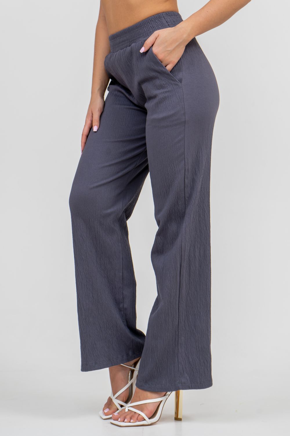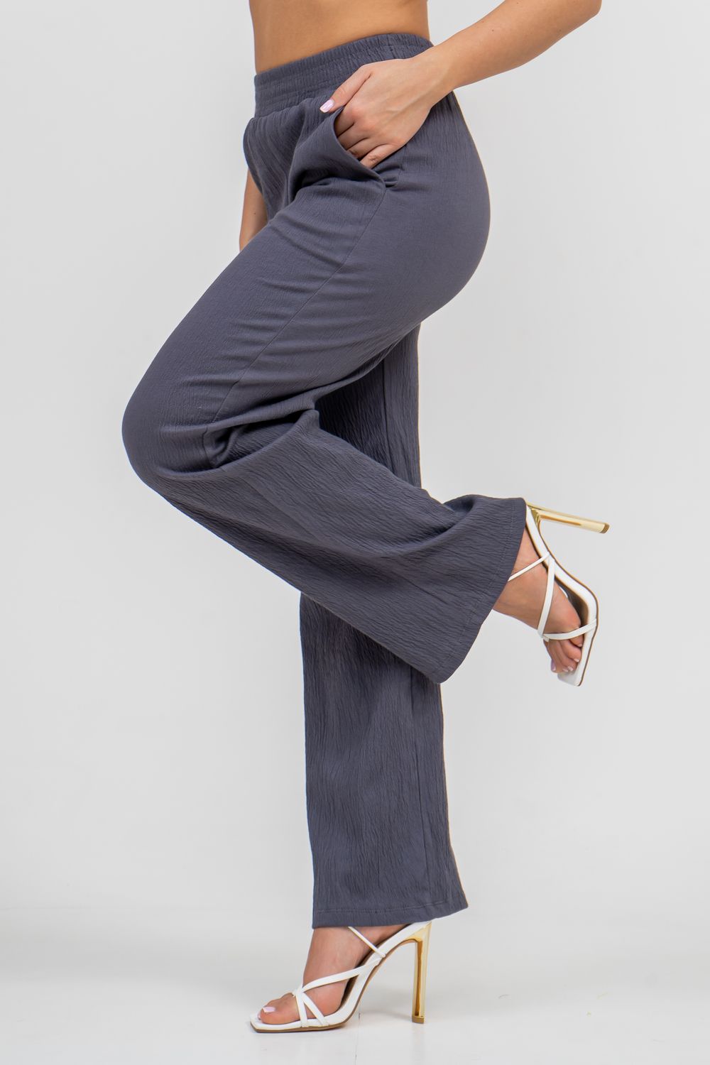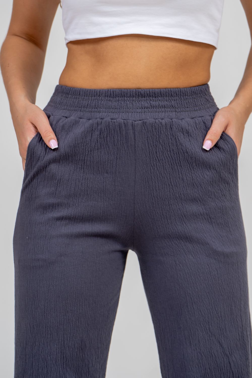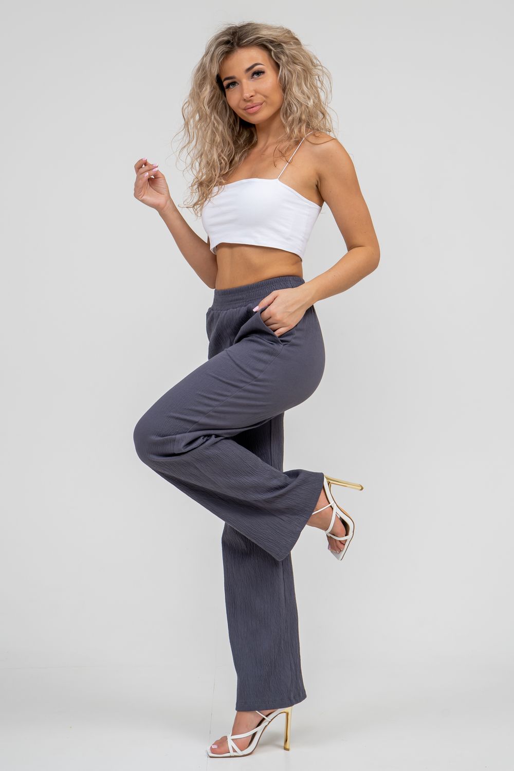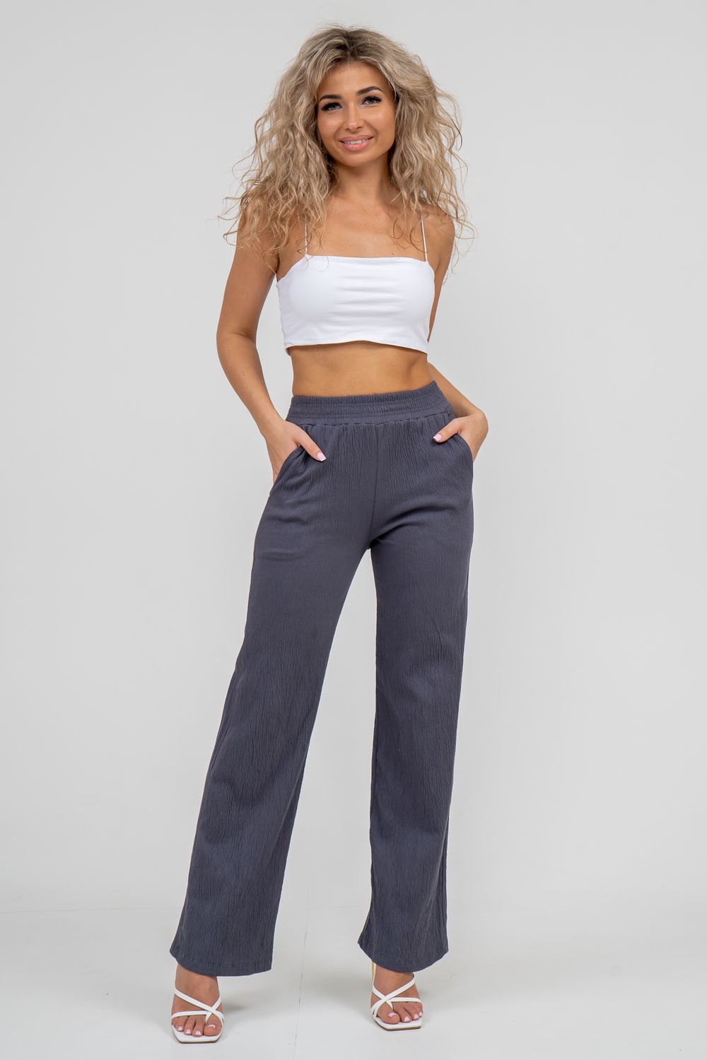 Модные и в то же время универсальные женские брюки выполнены из кулирки гипе жатка компакт. Жатка - это ткань с "мятой" структурой, декоративными заломами и складками. Модель выполнена с двумя боковыми вместительными карманами и поясом, обработанном на специализированной поясной машине. Брюки прямого кроя на широкой резинке с карманами отлично сядут на любой тип фигуры. Это базовая модель, которая сочетается практически с любой одеждой и обувью. Легкие летние, позволяющие обеспечить правильный воздухообмен между телом, комфортные и не стесняют движения, пояс не сдавливает. Мы не оставили без внимания прекрасных представительниц корпулентных форм, поэтому размерный ряд включает в себя большие размеры. Это брюки, которые будут выгодно смотреться в абсолютно любом образе: как спортивные, классические или домашние, школьные для девочки и для беременных. Довольно практичный экземпляр одежды на каждый день отлично подходит для пляжа, прогулок, офиса и деловых встреч. Сейчас полно другой интересной одежды - карго, парашюты, клёш, пижамные, шорты или кюлоты...но как бы ни менялась мода, брюки - палаццо были, есть и будут самой универсальной вещью женского гардероба. Красивые и эстетичные палаццо - отличный подарок для любимой девушки или жены на день рождения, юбилей, годовщину, 8 Марта или Новый год. Покупайте наши стильные брюки из жатки и создавайте модные образы на каждый день!