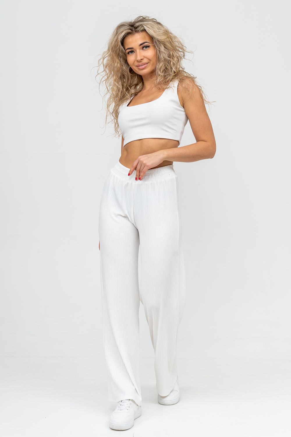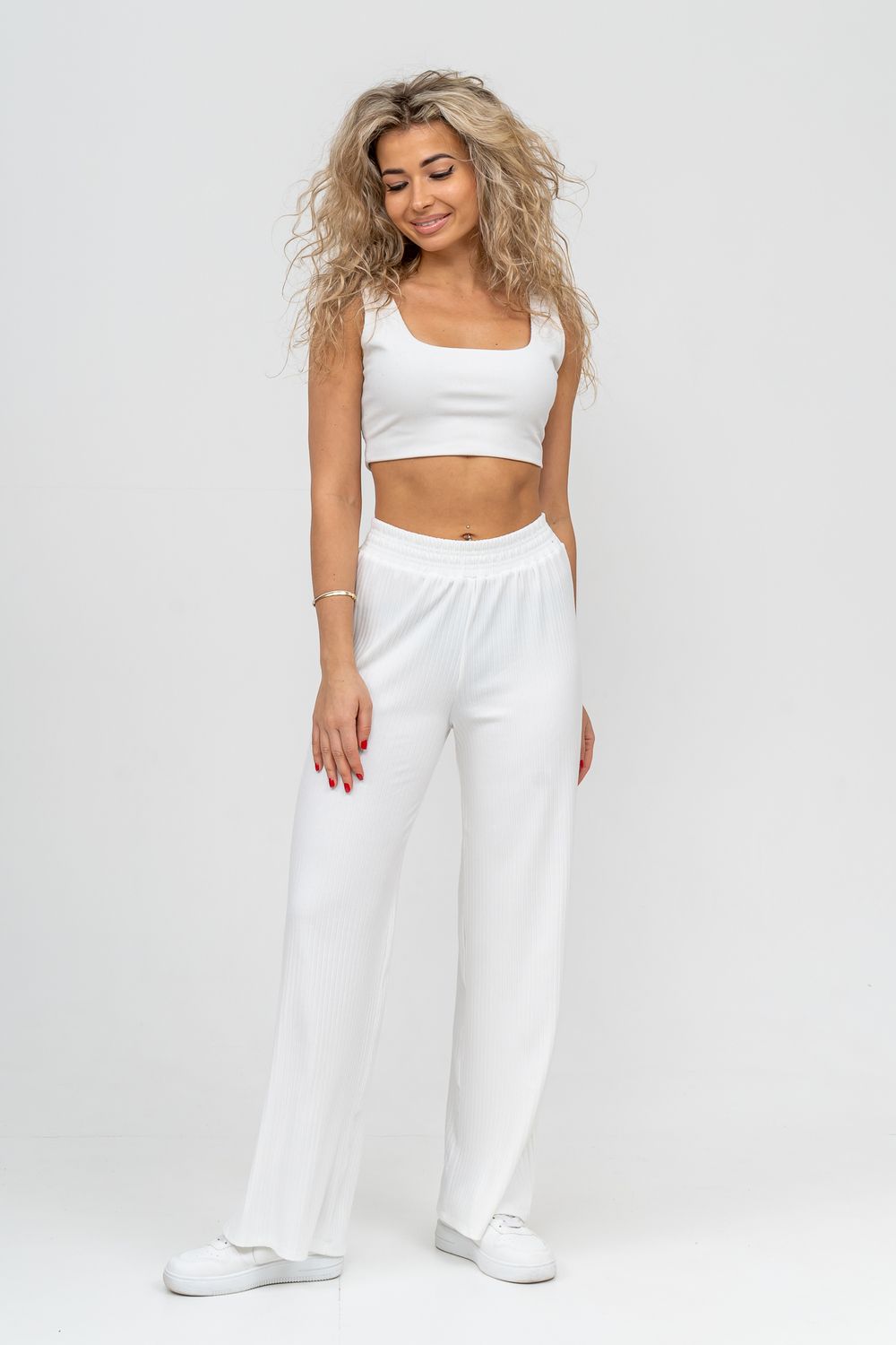 Стильные брюки сезона выполнены из высококачественного материала - лапша, который в свою очередь обладает большим количеством положительных качеств: эластичность, гигроскопичность, износостойкость, комфорт, не линяет и не выгорает. А фактура ткани визуально вытягивает ваши ножки и делает стройнее. Лёгкие прямые брюки с высокой посадкой в стиле палаццо из красивого материала акцентируют достоинства, а пояс резинка, выполненный на специализированной поясной машине, не сдавливает талию, поэтому подойдёт также для беременных девушек. Брюки выполнены в свободном стиле, что идеально подойдёт для дома, отдыха и спорта. А так же - это идеальный вариант на каждый день, который вы можете носить сочетая с другими вещами, создавая свой идеальный образ. А различные вариации верха с брюками - это отличный вариант для создания праздничного образа. Брюки сделают образ женщин, девушек, студентов и подростков ярким и любимым как дома, так и на улице, работе, учёбе.