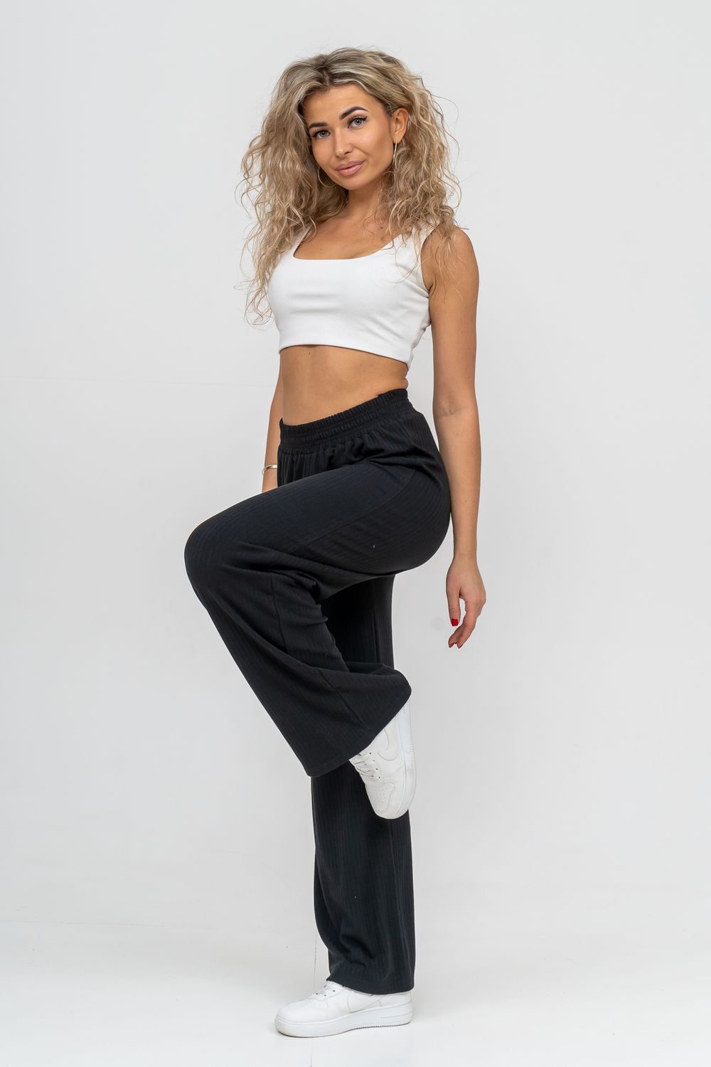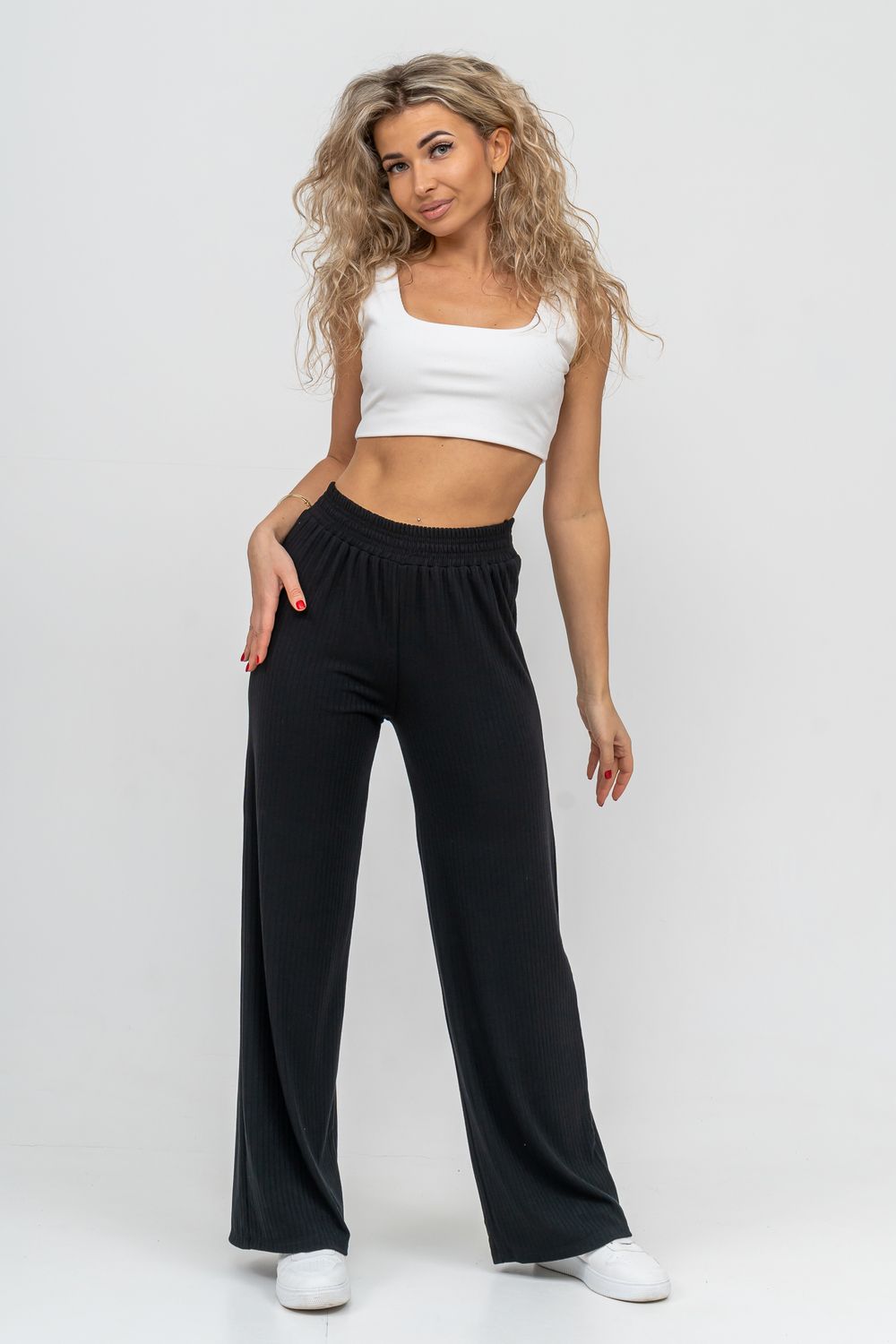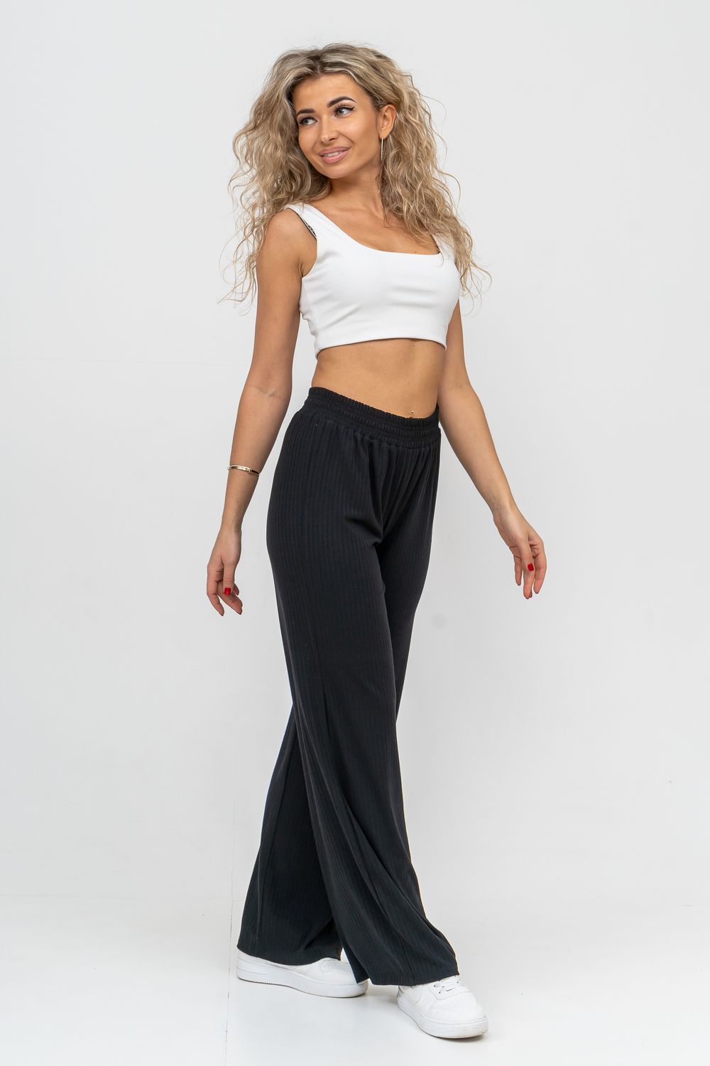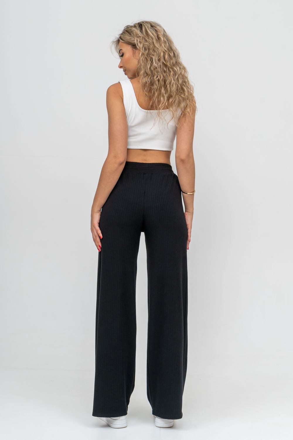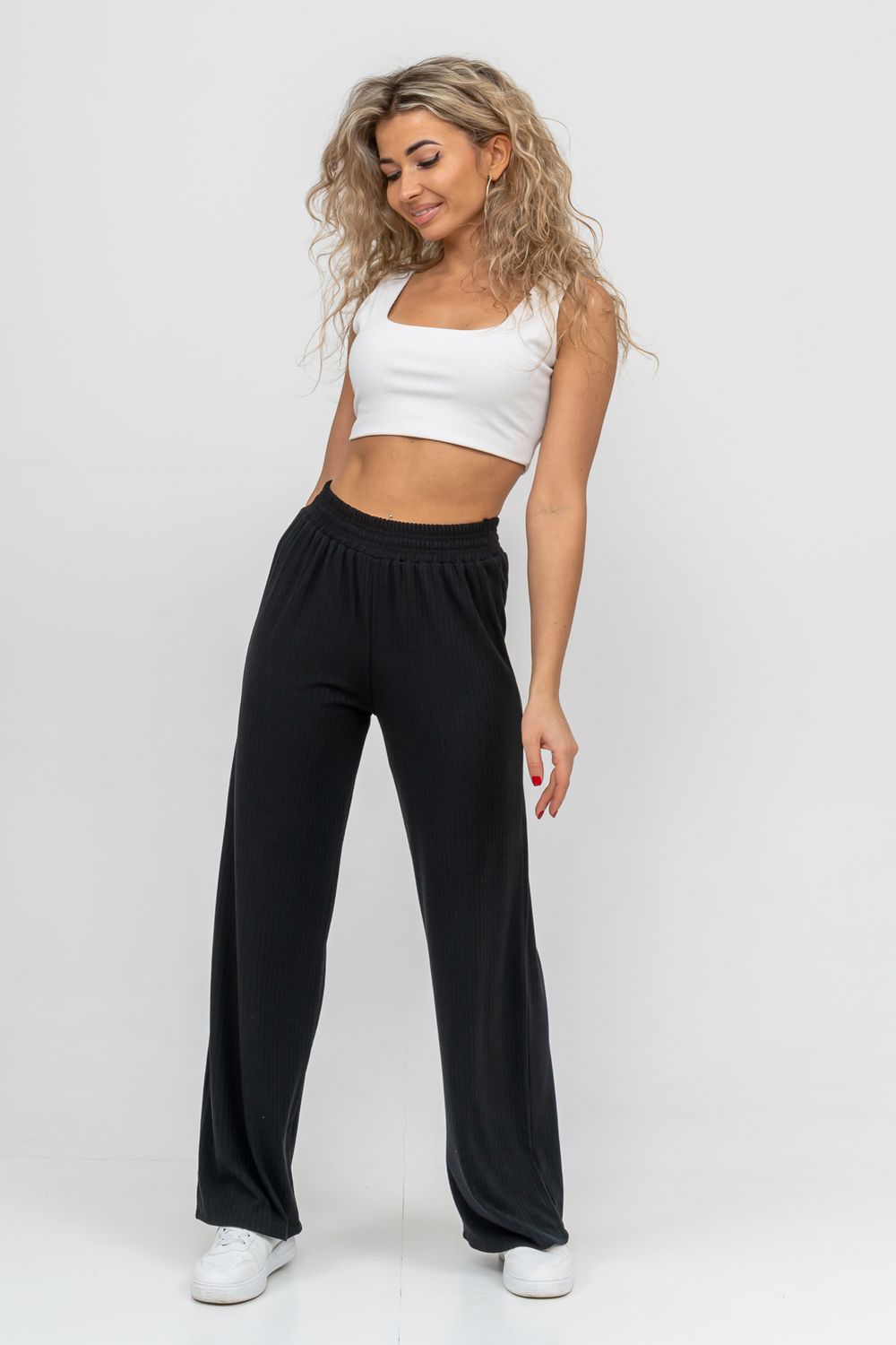 Стильные брюки сезона выполнены из высококачественного материала - лапша, который в свою очередь обладает большим количеством положительных качеств: эластичность, гигроскопичность, износостойкость, комфорт, не линяет и не выгорает. А фактура ткани визуально вытягивает ваши ножки и делает стройнее. Лёгкие прямые брюки с высокой посадкой в стиле палаццо из красивого материала акцентируют достоинства, а пояс резинка, выполненный на специализированной поясной машине, не сдавливает талию, поэтому подойдёт также для беременных девушек. Брюки выполнены в свободном стиле, что идеально подойдёт для дома, отдыха и спорта. А так же - это идеальный вариант на каждый день, который вы можете носить сочетая с другими вещами, создавая свой идеальный образ. А различные вариации верха с брюками - это отличный вариант для создания праздничного образа. Брюки сделают образ женщин, девушек, студентов и подростков ярким и любимым как дома, так и на улице, работе, учёбе.