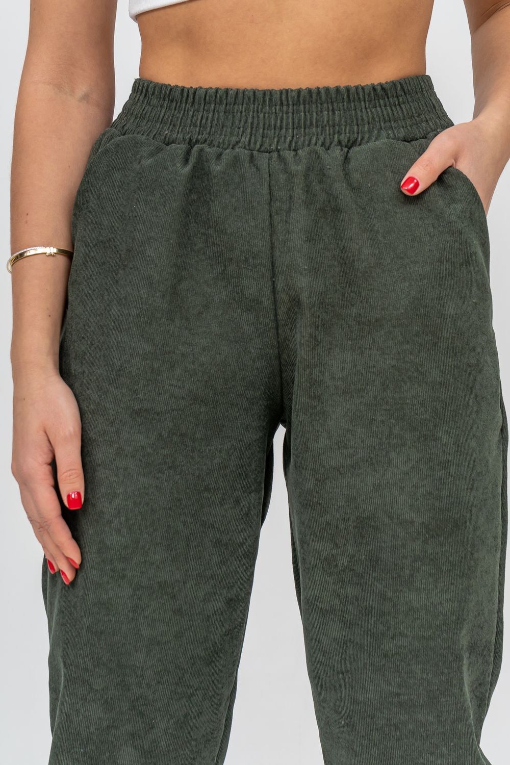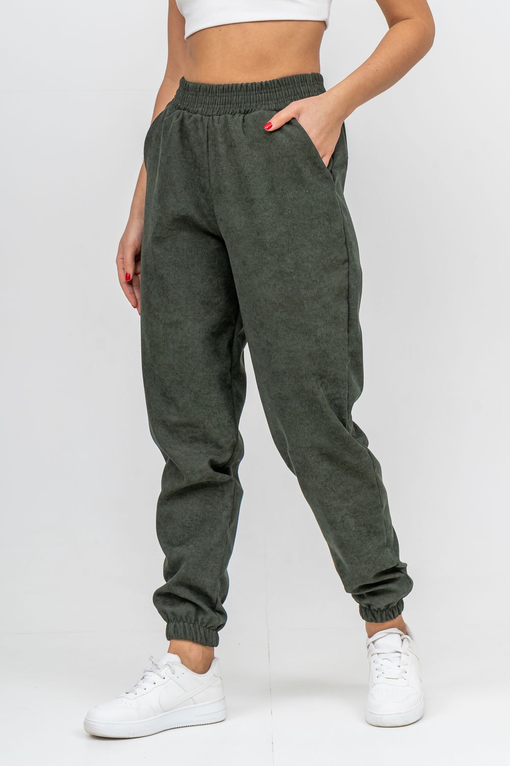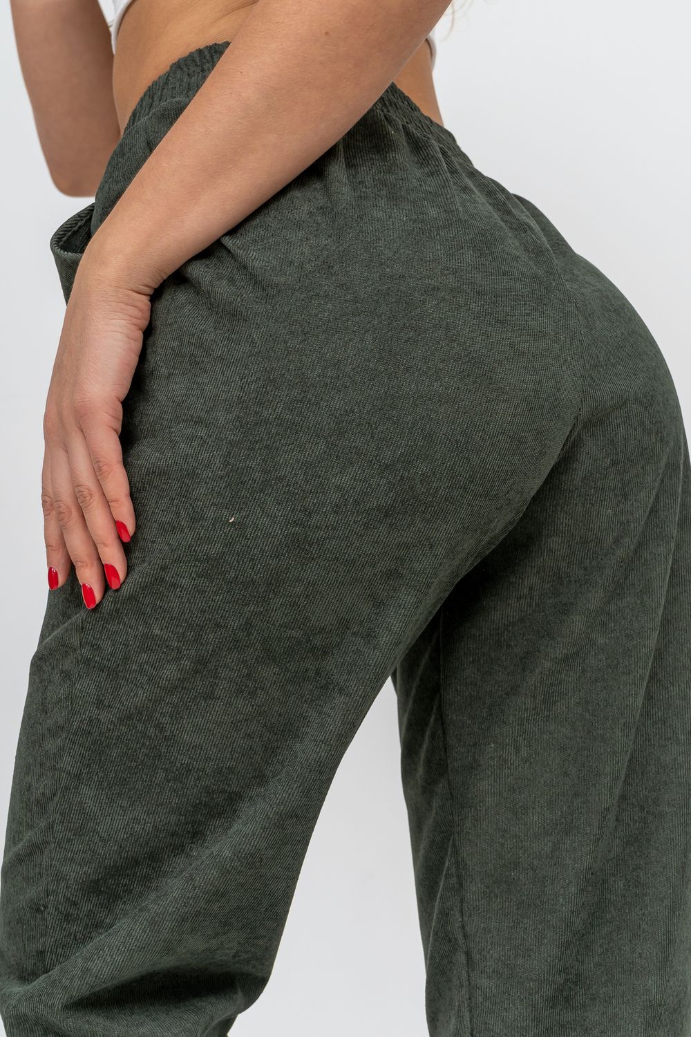 Женские стильные брюки - бананы выполнены из качественного вельвета, что увеличивает долговечность изделия, придавая ему прочность. Вельвет практичен, прост в уходе и использовании. Обладает высокой износоустойчивостью, прочностью, не деформируется и не вытягивается, приятен к телу, не мнётся и не выцветает. Материал гигроскопичен, хорошо пропускает воздух и сохраняет тепло. Высокая посадка, вместительные боковые карманы, удобный и качественно обработанный на специальной машине пояс - резинка позволит Вам чувствовать себя максимально комфортно. Такой фасон брюк формирует выразительный женственный силуэт, скрывает мелкие недостатки фигуры и гармонизирует пропорции. Всё это образует идеальное решение для лука на каждый день, проведённый вами дома, на работе, в школе и на отдыхе.