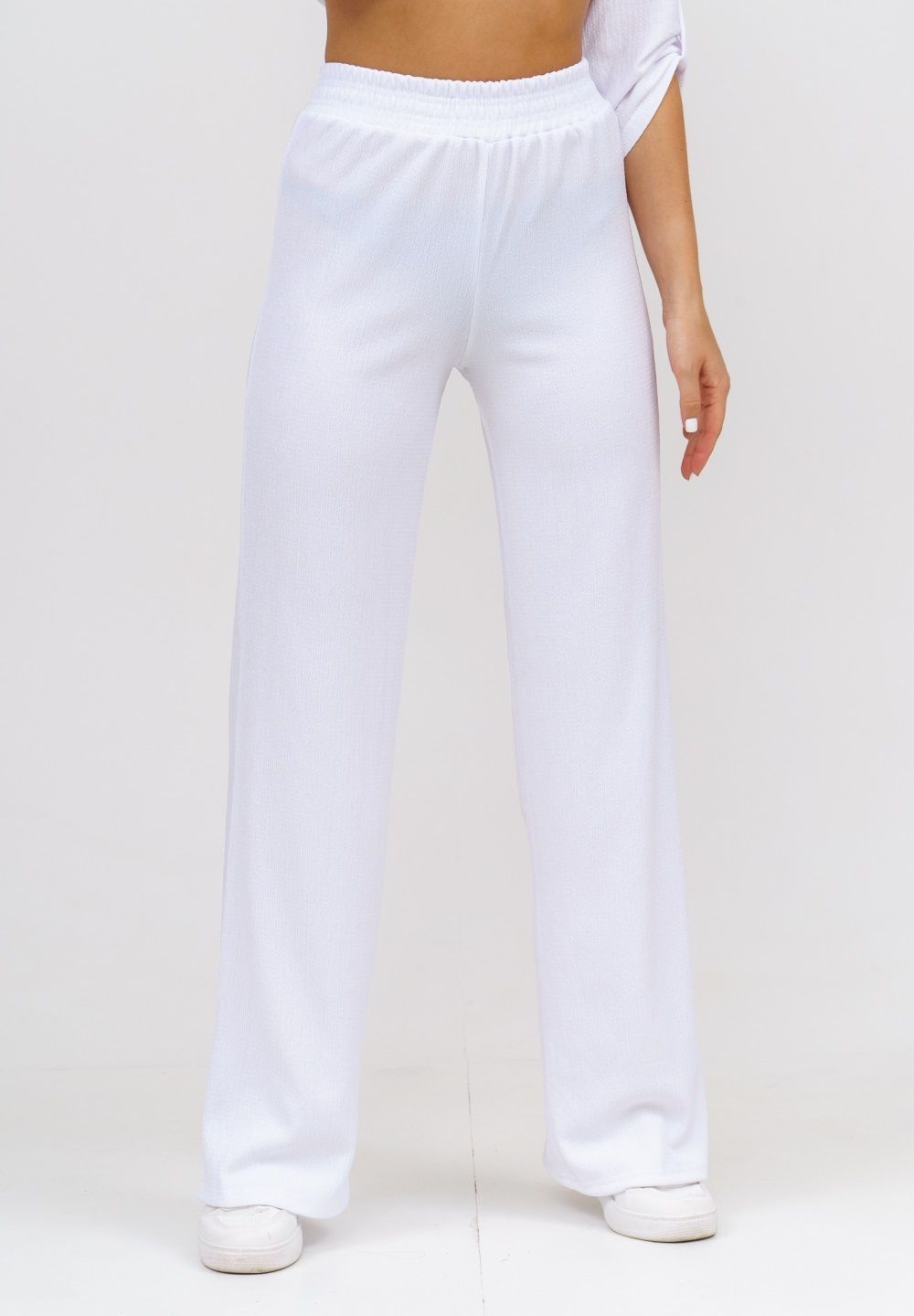 Модные женские брюки - палаццо с завышенной линией талии выполнены из лёгкого струящегося материала - жатка. Пояс брюк обработан на специализированной поясной машине. Кажется в новом сезоне с фантастической жаткой познакомился каждый! Жатая фактура - это очевидный мастхев летних коллекций, который с успехом переходит в другие сезоны в виде предметов домашнего гардероба. Такая находка и раньше была известна всем, но в этом сезоне тренд с жаткой захватил буквально всех. Изделие из такого материала имеет огромное количество плюсов: брюки из такого материала безупречны для жары, лёгкие, практически не ощущаются на теле, и быстро сохнут при намокании. Именно поэтому необычная и фактурная ткань цепляет взгляды окружающих и прекрасно подходит для прогулок, в отпуск, на праздник или для пляжного отдыха. Брюки такого плана - это отличный подарок самой себе, и твоё лучшее решение!