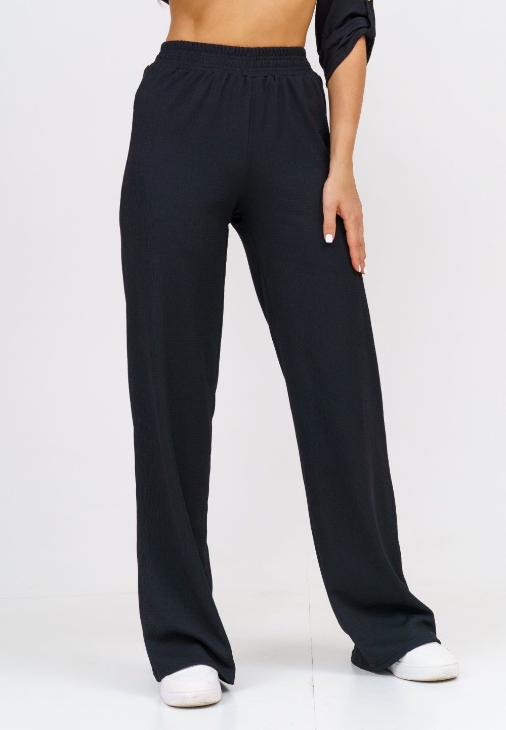 Модные женские брюки - палаццо с завышенной линией талии выполнены из лёгкого струящегося материала - жатка. Пояс брюк обработан на специализированной поясной машине. Кажется в новом сезоне с фантастической жаткой познакомился каждый! Жатая фактура - это очевидный мастхев летних коллекций, который с успехом переходит в другие сезоны в виде предметов домашнего гардероба. Такая находка и раньше была известна всем, но в этом сезоне тренд с жаткой захватил буквально всех. Изделие из такого материала имеет огромное количество плюсов: брюки из такого материала безупречны для жары, лёгкие, практически не ощущаются на теле, и быстро сохнут при намокании. Именно поэтому необычная и фактурная ткань цепляет взгляды окружающих и прекрасно подходит для прогулок, в отпуск, на праздник или для пляжного отдыха. Брюки такого плана - это отличный подарок самой себе, и твоё лучшее решение!