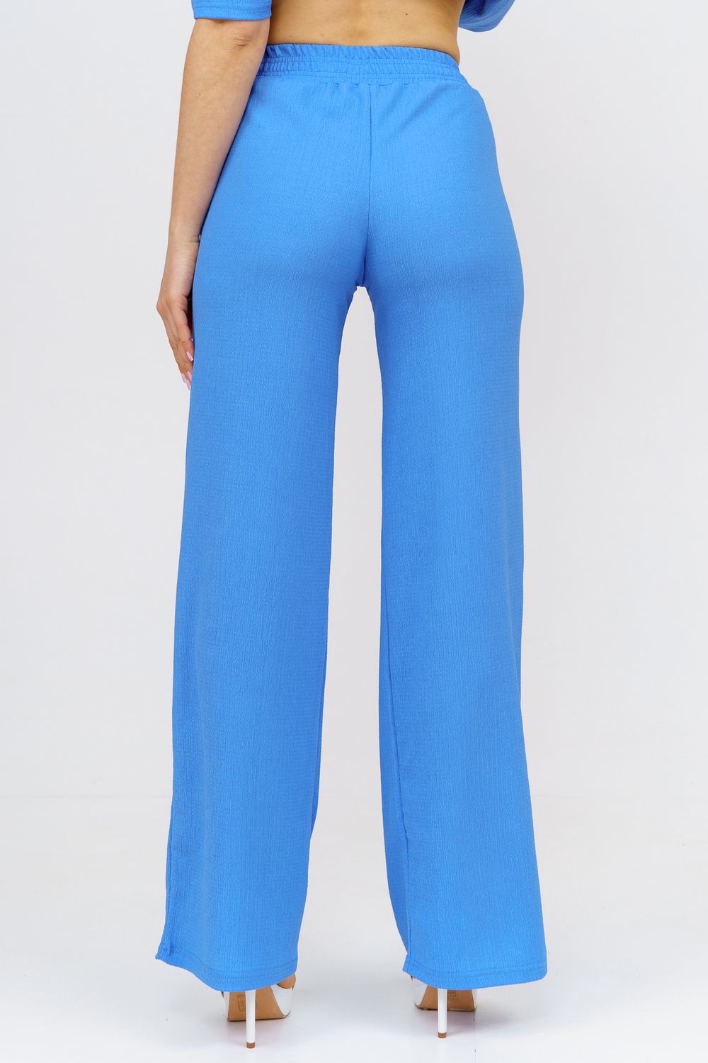 Модные женские брюки - палаццо с завышенной линией талии выполнены из лёгкого струящегося материала - жатка. Пояс брюк обработан на специализированной поясной машине. Кажется в новом сезоне с фантастической жаткой познакомился каждый! Жатая фактура - это очевидный мастхев летних коллекций, который с успехом переходит в другие сезоны в виде предметов домашнего гардероба. Такая находка и раньше была известна всем, но в этом сезоне тренд с жаткой захватил буквально всех. Изделие из такого материала имеет огромное количество плюсов: брюки из такого материала безупречны для жары, лёгкие, практически не ощущаются на теле, и быстро сохнут при намокании. Именно поэтому необычная и фактурная ткань цепляет взгляды окружающих и прекрасно подходит для прогулок, в отпуск, на праздник или для пляжного отдыха. Брюки такого плана - это отличный подарок самой себе, и твоё лучшее решение!