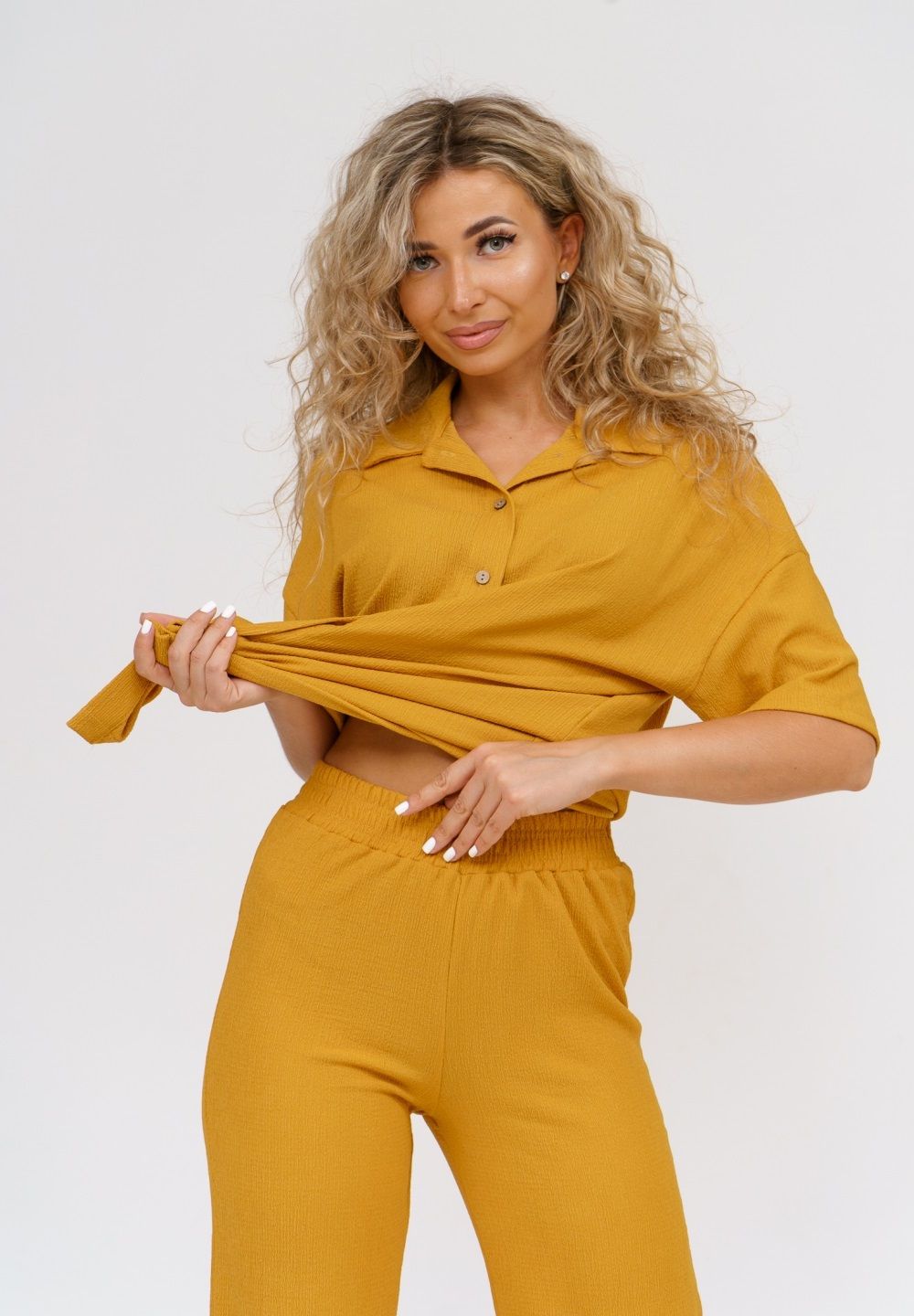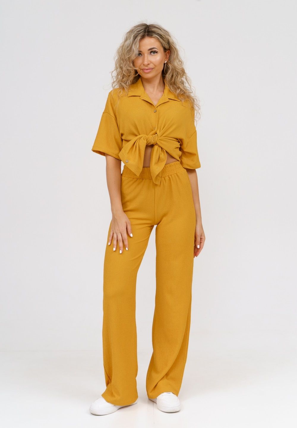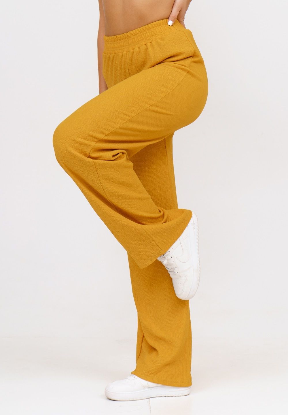 Модные женские брюки - палаццо с завышенной линией талии выполнены из лёгкого струящегося материала - жатка. Пояс брюк обработан на специализированной поясной машине. Кажется в новом сезоне с фантастической жаткой познакомился каждый! Жатая фактура - это очевидный мастхев летних коллекций, который с успехом переходит в другие сезоны в виде предметов домашнего гардероба. Такая находка и раньше была известна всем, но в этом сезоне тренд с жаткой захватил буквально всех. Изделие из такого материала имеет огромное количество плюсов: брюки из такого материала безупречны для жары, лёгкие, практически не ощущаются на теле, и быстро сохнут при намокании. Именно поэтому необычная и фактурная ткань цепляет взгляды окружающих и прекрасно подходит для прогулок, в отпуск, на праздник или для пляжного отдыха. Брюки такого плана - это отличный подарок самой себе, и твоё лучшее решение!