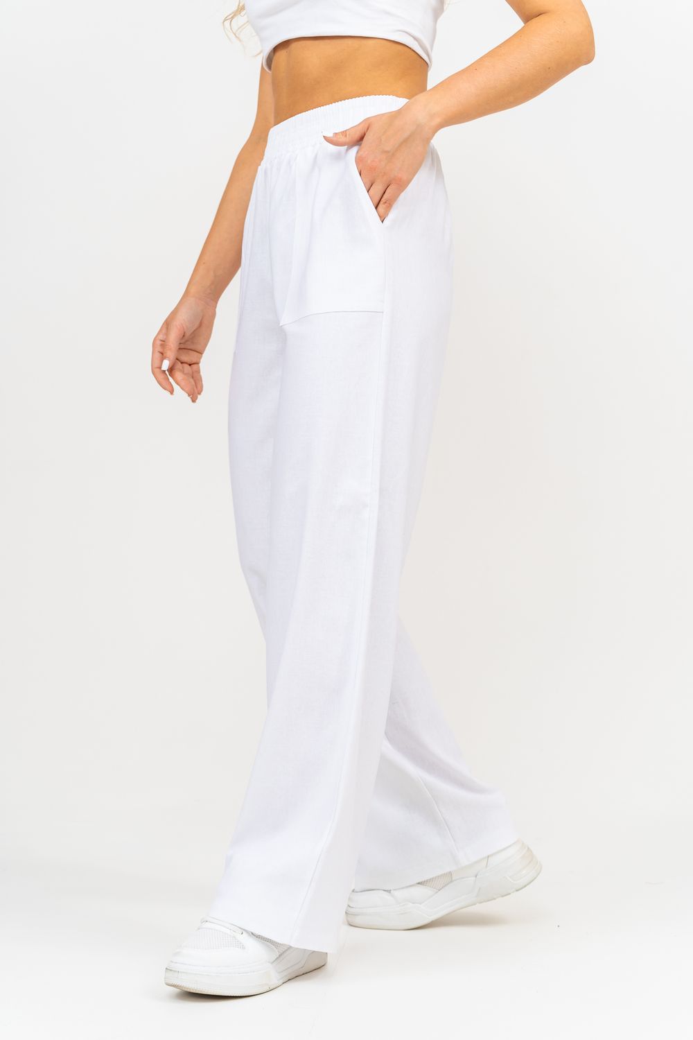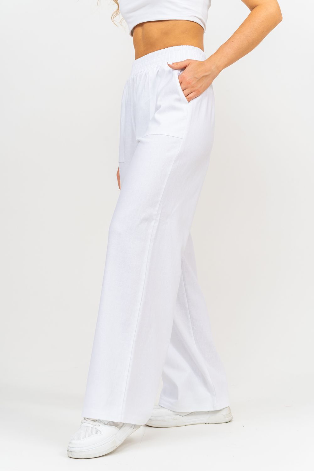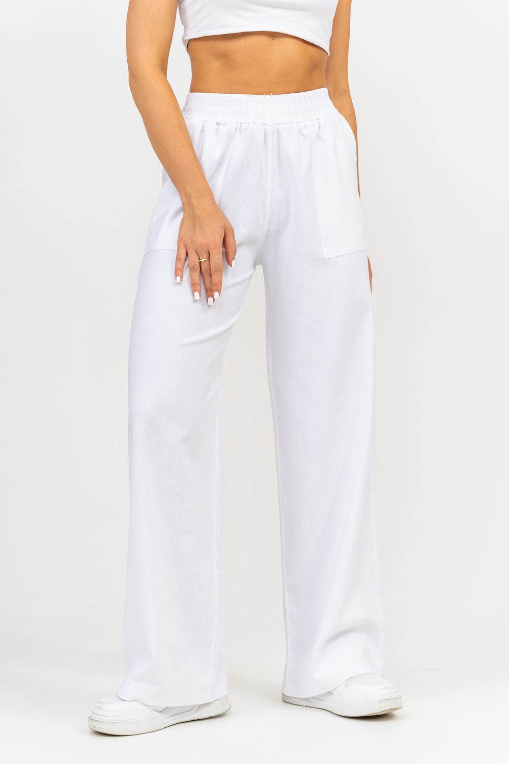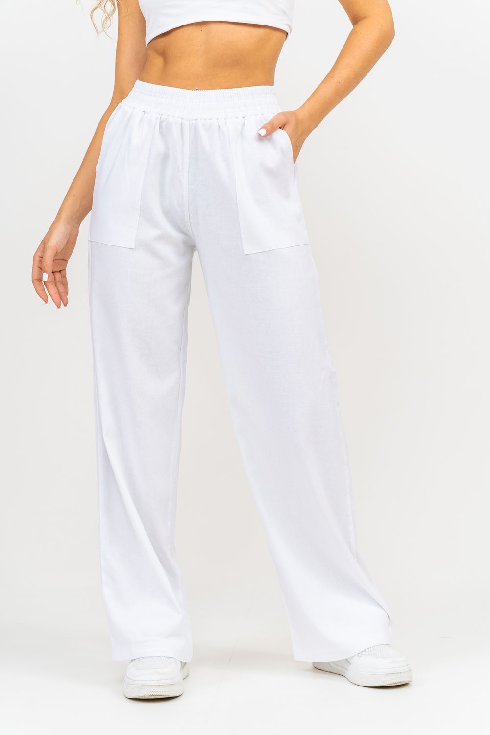 Стильные и современные женские летние брюки - палаццо выполнены из прочного, износостойкого, долговечного и приятного к телу материала. Это экологичный материал, обладающий отличной гигроскопичностью и воздухопроницаемостью. Одежда из ткани, в состав которой входит лён, способствует естественной терморегуляции тела и отлично подходит для летнего сезона и жаркого климата. Спереди брюк настрочены два вместительных накладных кармана. Пояс выполнен на специализированной поясной машине. Это качественная и современная обработка, при которой Ваш пояс не деформируется со временем, при стирке и не даёт резинке скрутиться. Льняные брюки - это универсальная вещь, они подойдут для работы в офисе, для школы, прогулок, на праздник или для дома. Особый шарм брюки приобретают во время отпуска, отдыха на море, на курорте или пляже. Брюки - палаццо с завышенной посадкой красиво подчеркивают талию и линию бедра, создавая лаконичный и стильный образ. Брюки такого плана подходят под разные стили - casual, спортивный, неформальный, пляжный морской, бохо и конечно более строгие варианты - классика, деловой офисный стиль. Длинные брюки на резинке - идеальный вариант для современной женщины, которая много времени проводит на работе. Базовая популярная модель позволяет чувствовать себя удобно и комфортно в течении всего рабочего дня. Лёгкие и свободные брюки с карманами из премиум ткани отлично подходят для жаркого лета, пляжа, вечеринки, танцев или домашнего отдыха. Элегантные брюки помогут создать красивые вечерние образы, а также помогут выглядеть эффектно на праздничной фотосессии или выпускном.