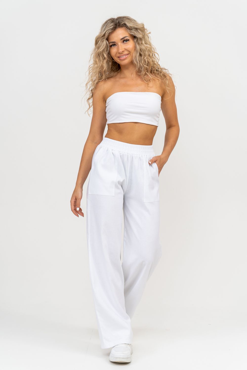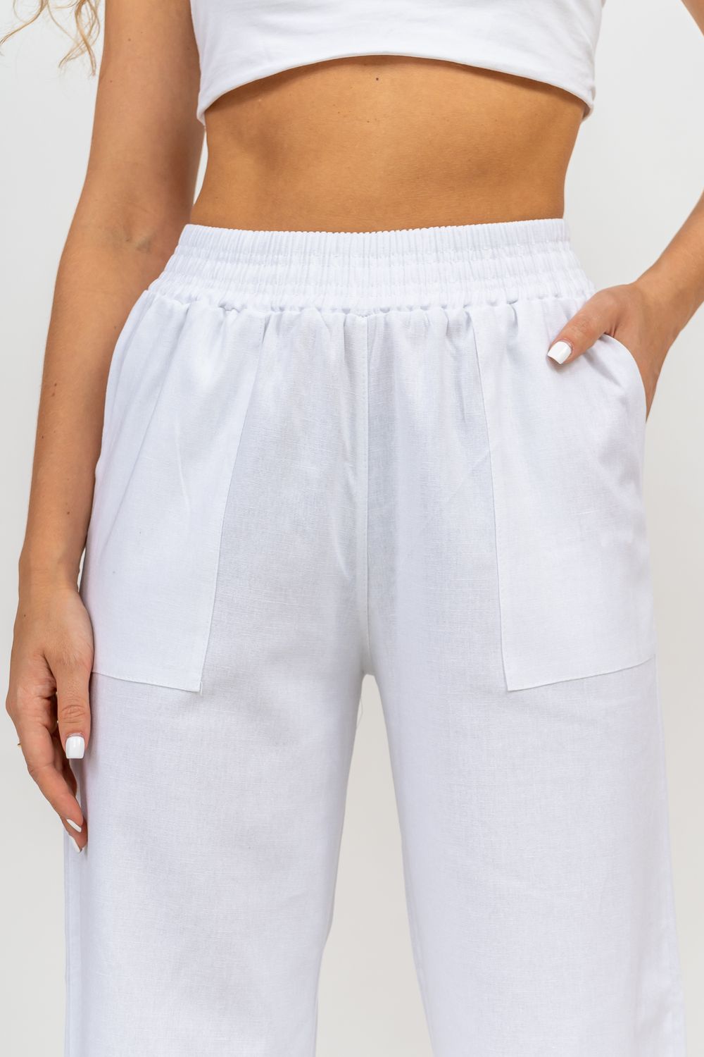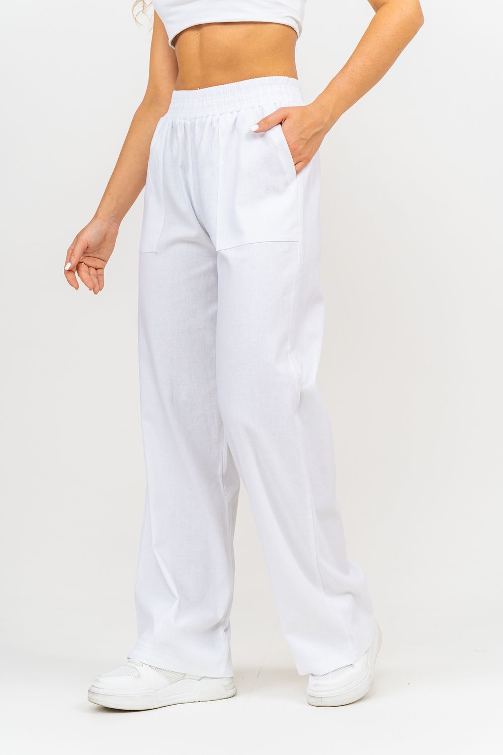 Стильные и современные женские летние брюки - палаццо выполнены из прочного, износостойкого, долговечного и приятного к телу материала. Это экологичный материал, обладающий отличной гигроскопичностью и воздухопроницаемостью. Одежда из ткани, в состав которой входит лён, способствует естественной терморегуляции тела и отлично подходит для летнего сезона и жаркого климата. Спереди брюк настрочены два вместительных накладных кармана. Пояс выполнен на специализированной поясной машине. Это качественная и современная обработка, при которой Ваш пояс не деформируется со временем, при стирке и не даёт резинке скрутиться. Льняные брюки - это универсальная вещь, они подойдут для работы в офисе, для школы, прогулок, на праздник или для дома. Особый шарм брюки приобретают во время отпуска, отдыха на море, на курорте или пляже. Брюки - палаццо с завышенной посадкой красиво подчеркивают талию и линию бедра, создавая лаконичный и стильный образ. Брюки такого плана подходят под разные стили - casual, спортивный, неформальный, пляжный морской, бохо и конечно более строгие варианты - классика, деловой офисный стиль. Длинные брюки на резинке - идеальный вариант для современной женщины, которая много времени проводит на работе. Базовая популярная модель позволяет чувствовать себя удобно и комфортно в течении всего рабочего дня. Лёгкие и свободные брюки с карманами из премиум ткани отлично подходят для жаркого лета, пляжа, вечеринки, танцев или домашнего отдыха. Элегантные брюки помогут создать красивые вечерние образы, а также помогут выглядеть эффектно на праздничной фотосессии или выпускном.