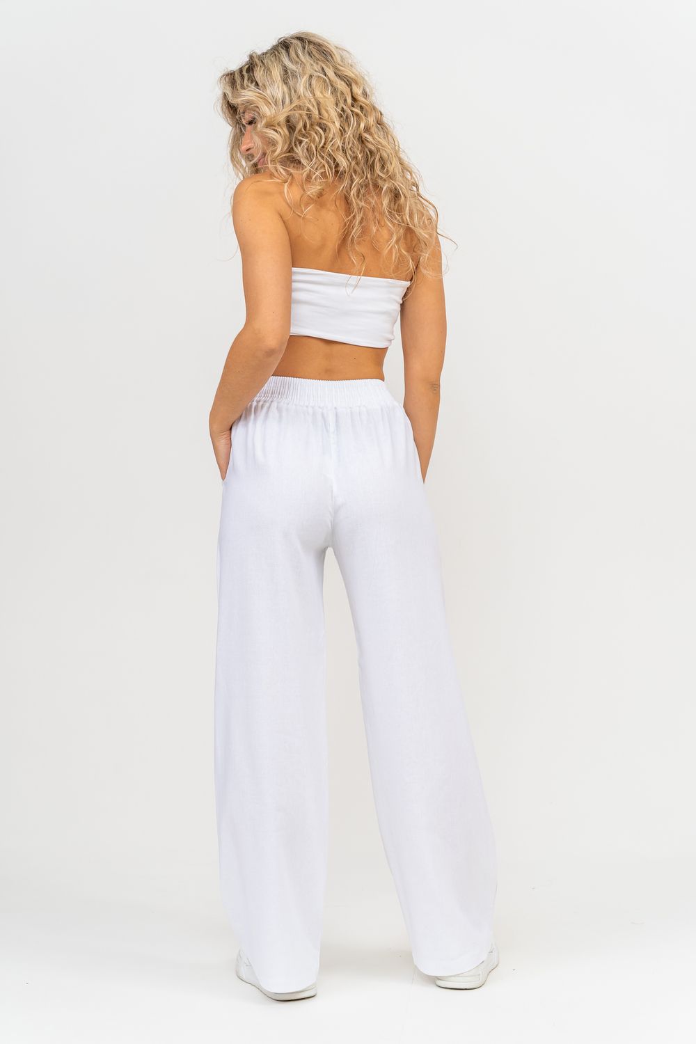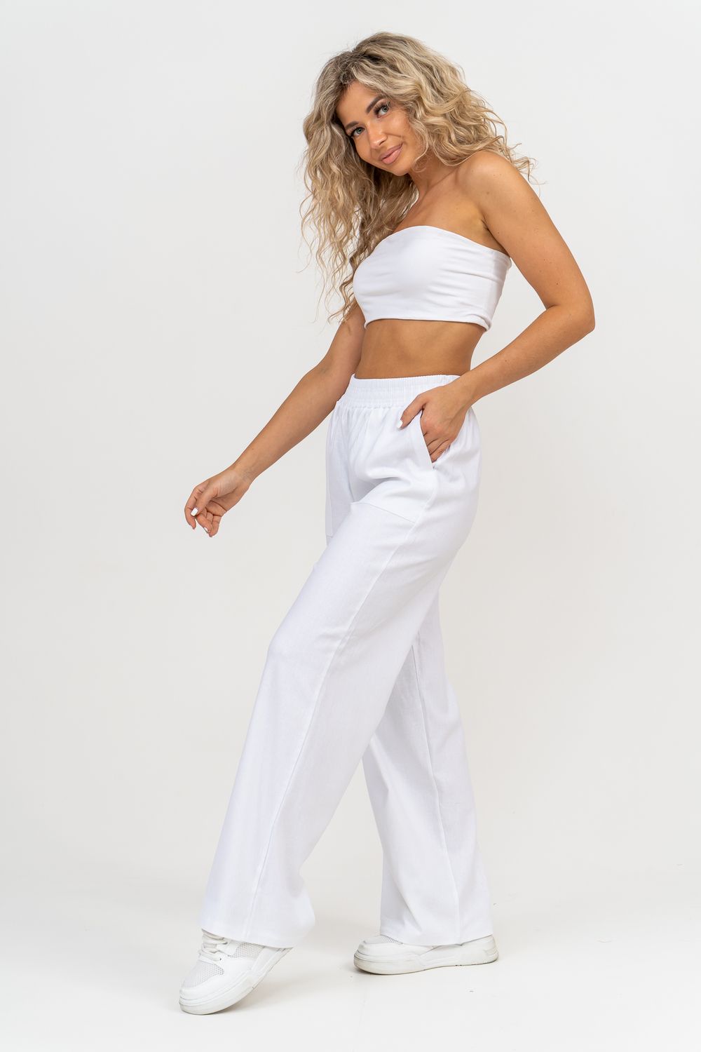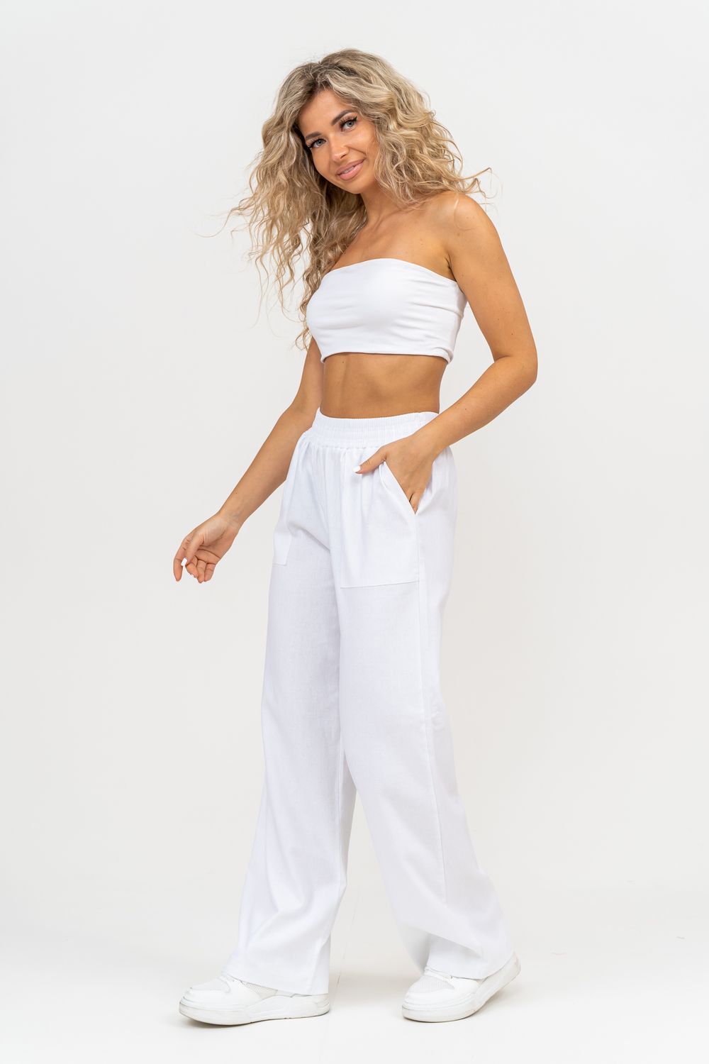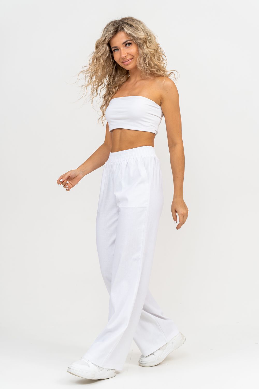 Стильные и современные женские летние брюки - палаццо выполнены из прочного, износостойкого, долговечного и приятного к телу материала. Это экологичный материал, обладающий отличной гигроскопичностью и воздухопроницаемостью. Одежда из ткани, в состав которой входит лён, способствует естественной терморегуляции тела и отлично подходит для летнего сезона и жаркого климата. Спереди брюк настрочены два вместительных накладных кармана. Пояс выполнен на специализированной поясной машине. Это качественная и современная обработка, при которой Ваш пояс не деформируется со временем, при стирке и не даёт резинке скрутиться. Льняные брюки - это универсальная вещь, они подойдут для работы в офисе, для школы, прогулок, на праздник или для дома. Особый шарм брюки приобретают во время отпуска, отдыха на море, на курорте или пляже. Брюки - палаццо с завышенной посадкой красиво подчеркивают талию и линию бедра, создавая лаконичный и стильный образ. Брюки такого плана подходят под разные стили - casual, спортивный, неформальный, пляжный морской, бохо и конечно более строгие варианты - классика, деловой офисный стиль. Длинные брюки на резинке - идеальный вариант для современной женщины, которая много времени проводит на работе. Базовая популярная модель позволяет чувствовать себя удобно и комфортно в течении всего рабочего дня. Лёгкие и свободные брюки с карманами из премиум ткани отлично подходят для жаркого лета, пляжа, вечеринки, танцев или домашнего отдыха. Элегантные брюки помогут создать красивые вечерние образы, а также помогут выглядеть эффектно на праздничной фотосессии или выпускном.