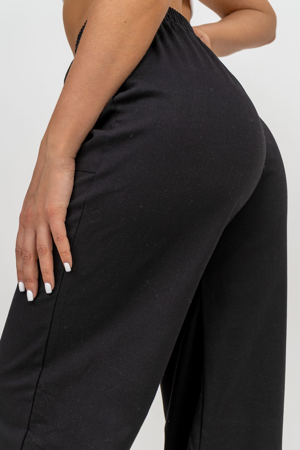 Стильные и современные женские летние брюки - палаццо выполнены из прочного, износостойкого, долговечного и приятного к телу материала. Это экологичный материал, обладающий отличной гигроскопичностью и воздухопроницаемостью. Одежда из ткани, в состав которой входит лён, способствует естественной терморегуляции тела и отлично подходит для летнего сезона и жаркого климата. Спереди брюк настрочены два вместительных накладных кармана. Пояс выполнен на специализированной поясной машине. Это качественная и современная обработка, при которой Ваш пояс не деформируется со временем, при стирке и не даёт резинке скрутиться. Льняные брюки - это универсальная вещь, они подойдут для работы в офисе, для школы, прогулок, на праздник или для дома. Особый шарм брюки приобретают во время отпуска, отдыха на море, на курорте или пляже. Брюки - палаццо с завышенной посадкой красиво подчеркивают талию и линию бедра, создавая лаконичный и стильный образ. Брюки такого плана подходят под разные стили - casual, спортивный, неформальный, пляжный морской, бохо и конечно более строгие варианты - классика, деловой офисный стиль. Длинные брюки на резинке - идеальный вариант для современной женщины, которая много времени проводит на работе. Базовая популярная модель позволяет чувствовать себя удобно и комфортно в течении всего рабочего дня. Лёгкие и свободные брюки с карманами из премиум ткани отлично подходят для жаркого лета, пляжа, вечеринки, танцев или домашнего отдыха. Элегантные брюки помогут создать красивые вечерние образы, а также помогут выглядеть эффектно на праздничной фотосессии или выпускном.