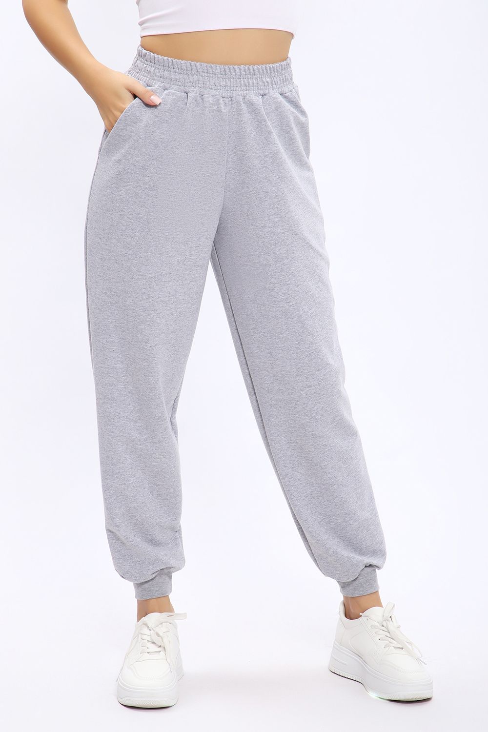 Женские брюки уже давно отличаются не только стилем и красотой, но и комфортом. Удобные не сковывающие движения элементы позволяют создавать модные образы. И это та самая модель - брюки джоггеры из футера 2-х нитки с высокой линией талии, которые идеально сядут на любой тип фигуры. Брюки такого плана заняли достойную позицию в гардеробе модниц благодаря своему оригинальному, и в то же время удобному крою. Внешний вид представляет собой свободные брюки сужающиеся к низу. Их отличительной чертой является пояс-резинка, обработанный на специализированной машине, и эластичные манжеты по низу брюк. Так же у модели имеются боковые карманы, в которых помещается всё самое необходимое. Удобство таких брюк неоспоримо, ведь резинка не пережимает тело и предоставляет свободу движений. В повседневной жизни за счёт своей универсальности брюки подойдут на любой повод - на работу, в школу, на прогулку, на тренировку... С брюками такого плана можно создавать спортивные образы и образы в направлении casual. Длинные майки, широкие свитера, другие элементы одежды oversize прекрасно дополнят эту модель. Не бойтесь добавлять аксессуары, они способны изменить образ до неузнаваемости и сделать брюки такого плана любимой вещью Вашего гардероба на любой случай жизни!