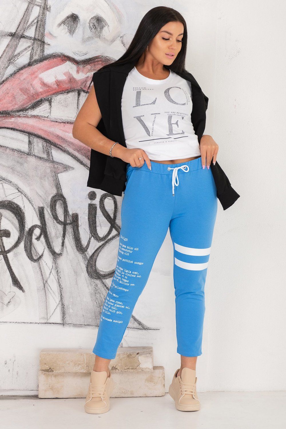 Джоггеры – это брюки на резинке. В бедрах они свободны, а к низу сужаются. Сегодня их носят все модницы и ни один стильный женский образ не обходится без этого тренда. Брючки с прекрасной посадкой, пояс регулируется декоративным шнуром. Длина 3/4.