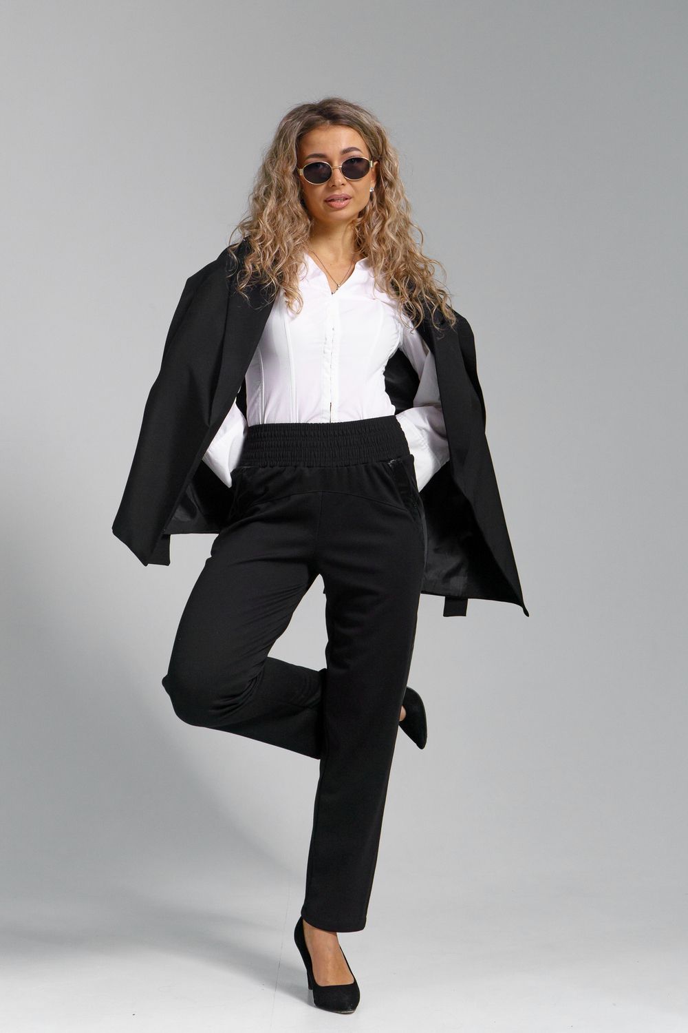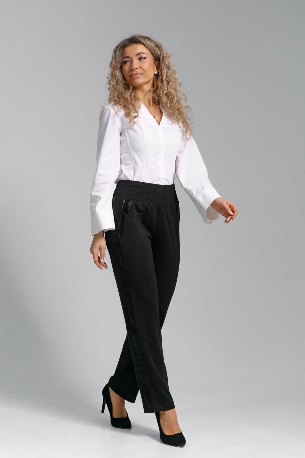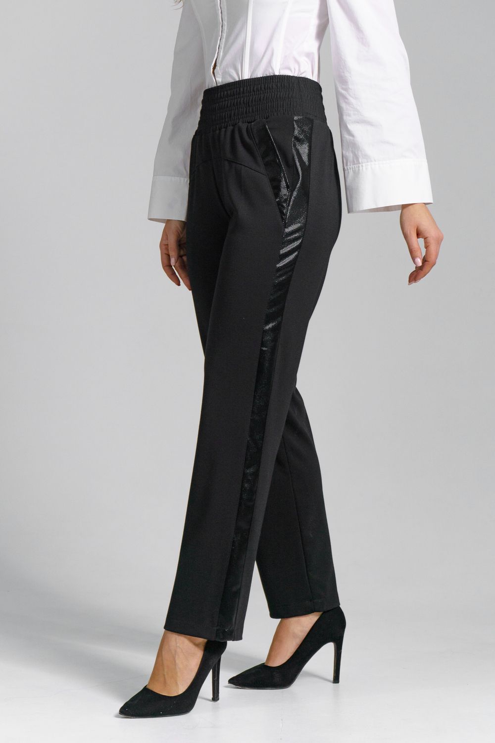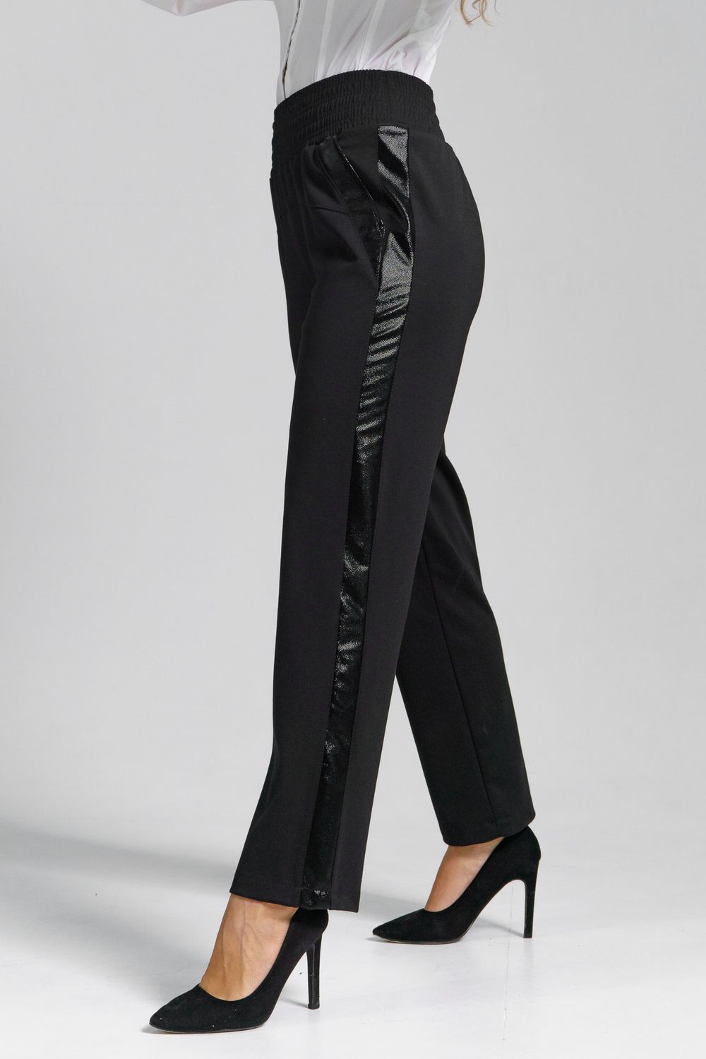 Женские стильные прямые брюки выполнены из двух видов материала: качественная эко-кожа и воздухопроницаемый плотный стрейч - трикотаж нейлон - рома. Два этих дополняющих друг друга материала создают комфорт, удобство и поддерживают температуру тела постоянной вне зависимости от условий внешней среды. Качественный материал не теряет свойств при интенсивной эксплуатации. Хорошо сохраняет первоначальную форму и презентабельный внешний вид. Неприхотливый, элементарно стирается, быстро сохнет, не нуждается в глажке. Модель такого плана поможет Вам создать сногсшибательный образ. Изделие выполнено на широком поясе - резинке с завышенной линией талии, что делает Вашу фигуру стройной и подтянутой. По бокам изделия имеется вставка и карман-обманка из экокожи, актуальной в этом и следующем сезоне. Брюки такого плана станут прекрасной основой любого образа, как на каждый день, так и на праздник. А размерная сетка не оставит без внимания прекрасных представительниц корпулентных форм, поэтому размерный ряд включает в себя большие размеры. Классические брюки с резинкой на поясе прекрасно подойдут как для повседневного образа на работу, в офис, так и на любое мероприятие. Брюки больших размеров вытягивают силуэт, делая ноги зрительно стройнее и длиннее, при этом надежно скрывая любые несовершенства. Легкие и комфортные, представлены стандартных и больших размеров плюс сайз plus size. Брюки с зауженными к низу штанинами позволяют создавать модные образы, а завышенная линия талии обеспечивает комфортную посадку. Универсальные, идеально садятся, не сползают и «правильно» ведут себя при движении. Из-за особенностей кроя визуально вытягивают силуэт и делают его тонким и изящным. Отличный вариант создать стильный образ для прогулок. Очень комфортные в повседневной носке в любой сезон. Если вы ищете брюки на каждый день, то эта удобная и практичная модель для Вас!