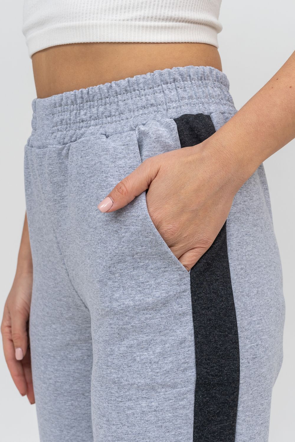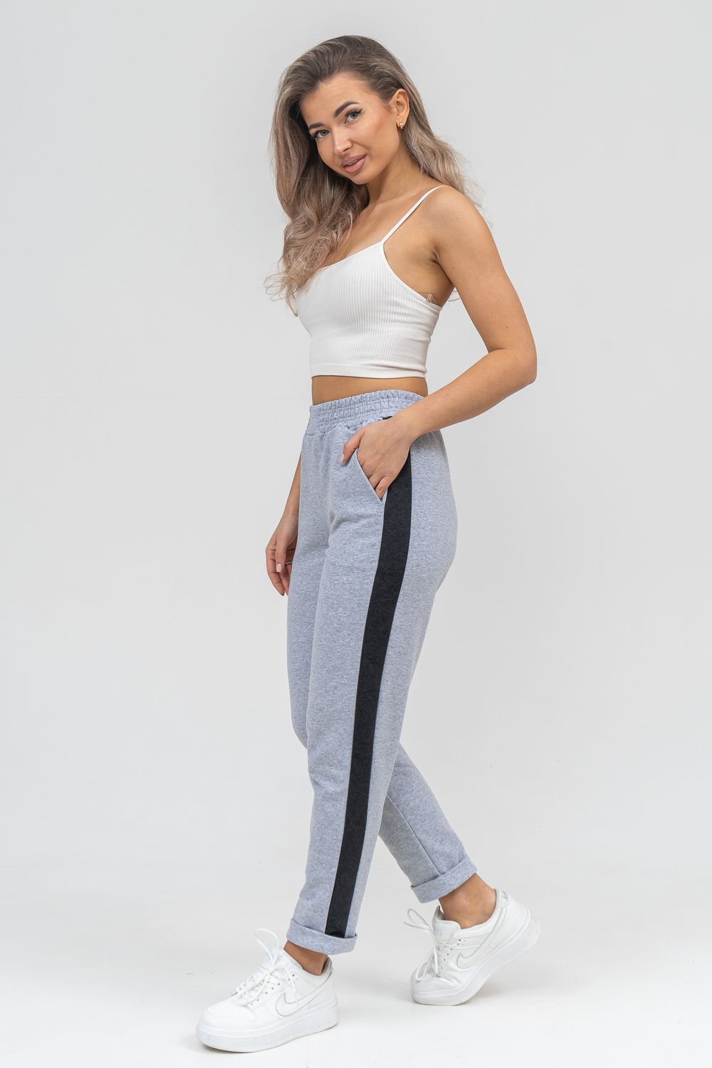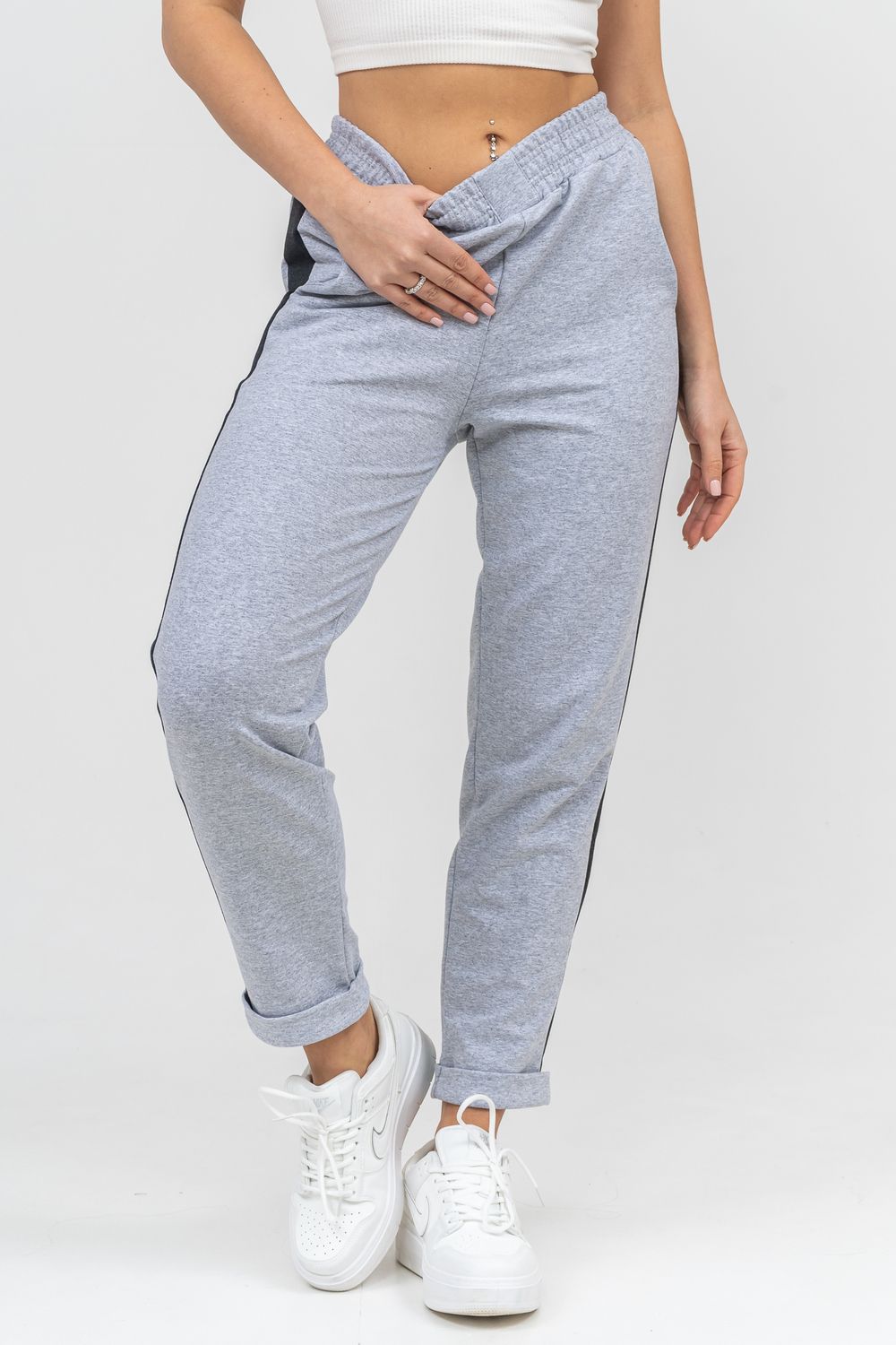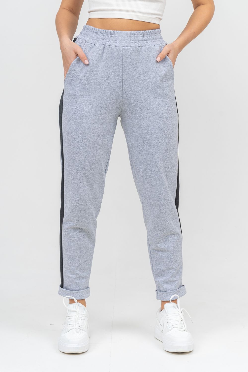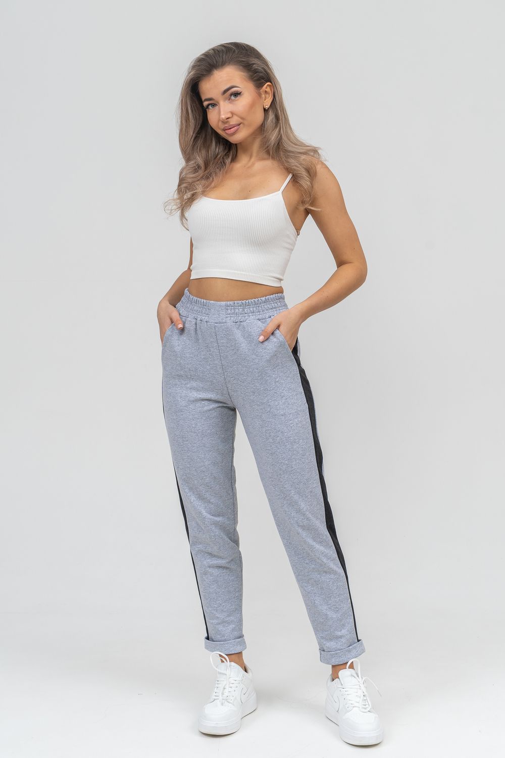 Молодежные брюки с длиной 7/8 и манжетом по низу, выполнены из футера цвета антрацит. По бокам брюк имеются карманы и светлые вставки. Пояс брюк обработан на специальной поясной машине. Брюки подходят как для спорта, так и для отдыха.