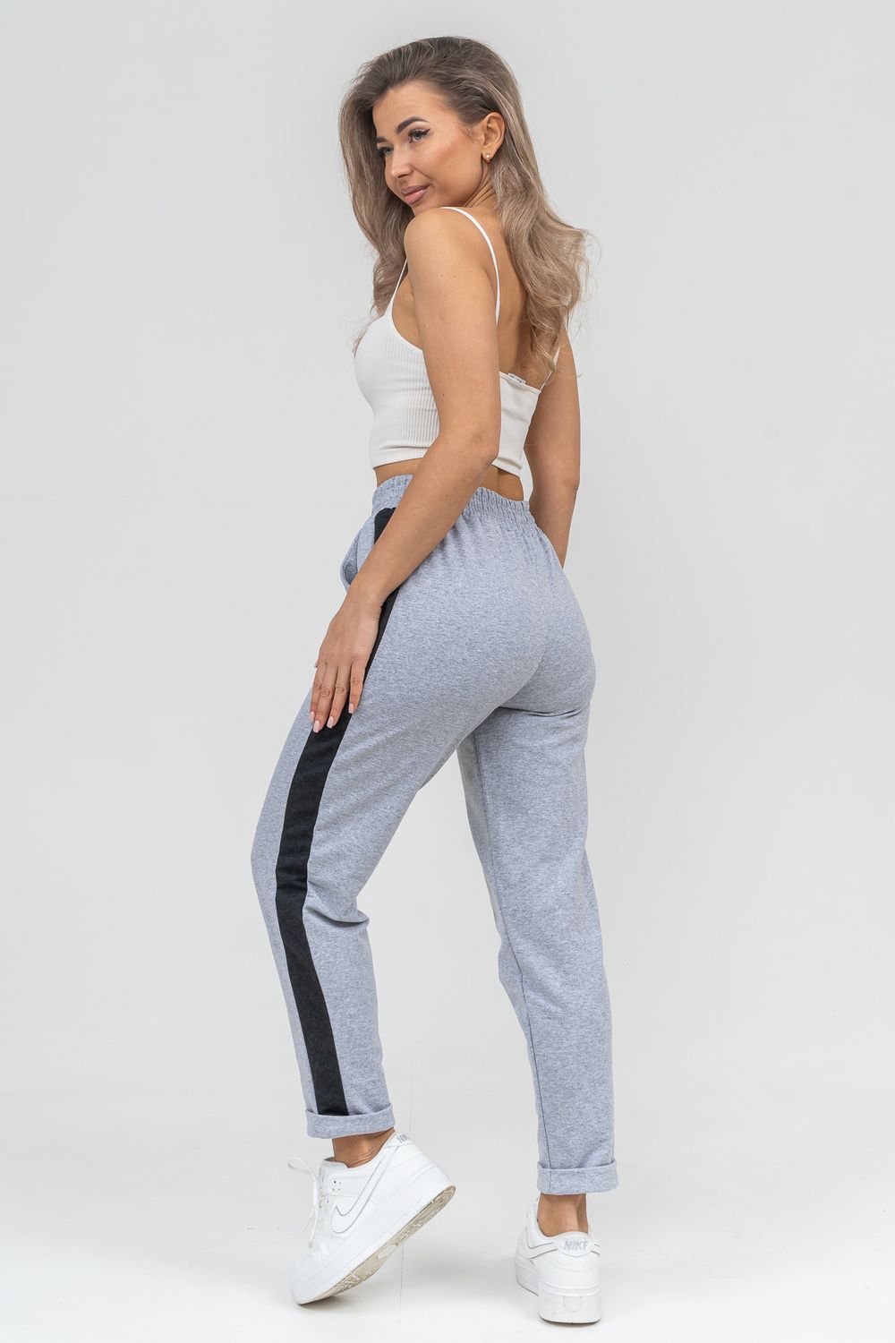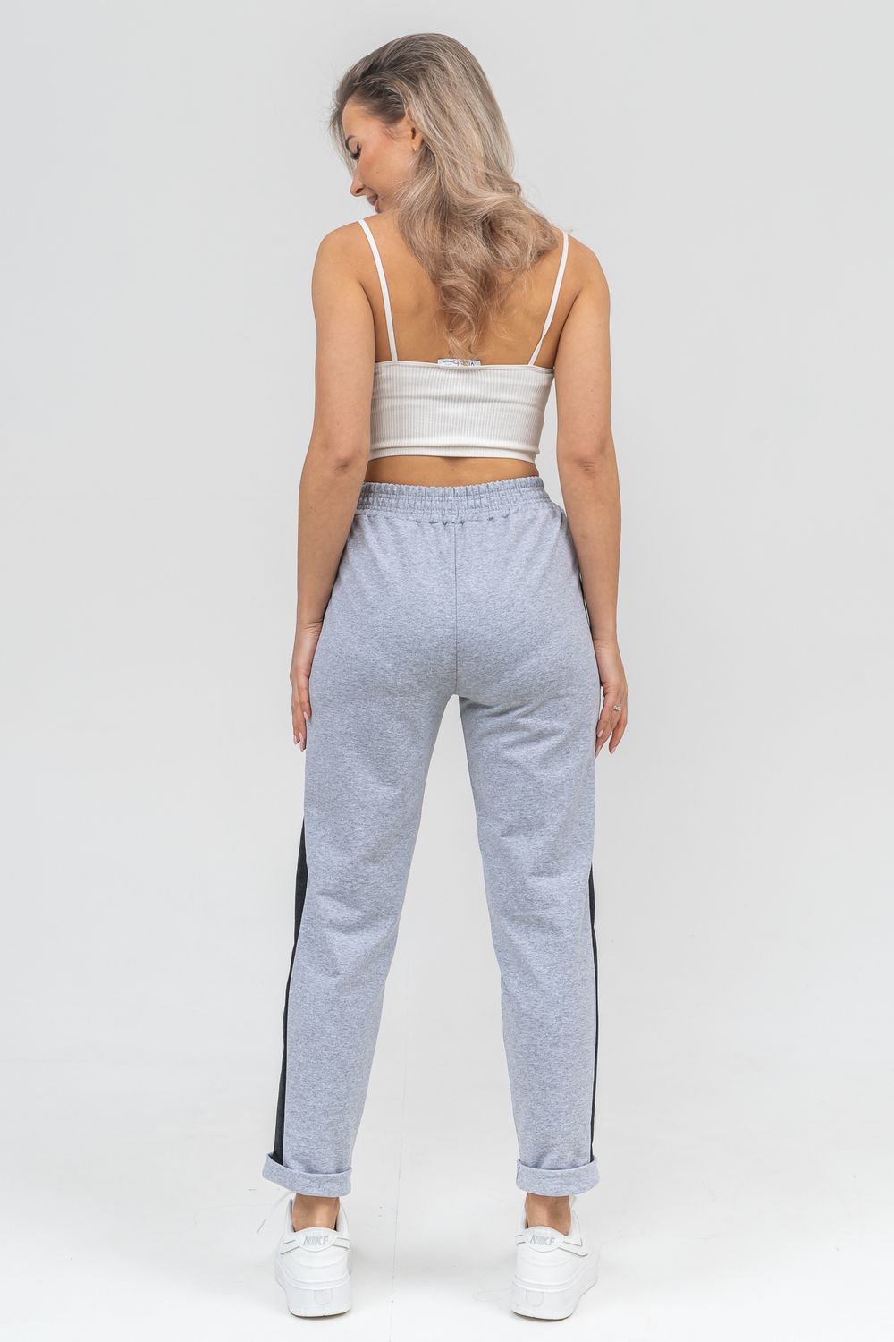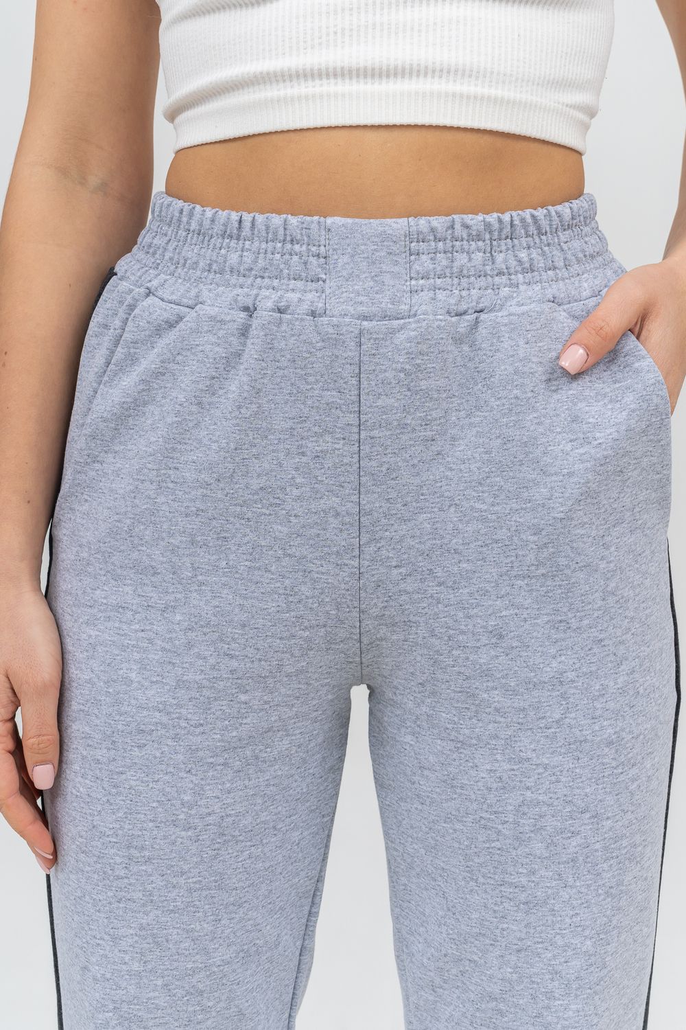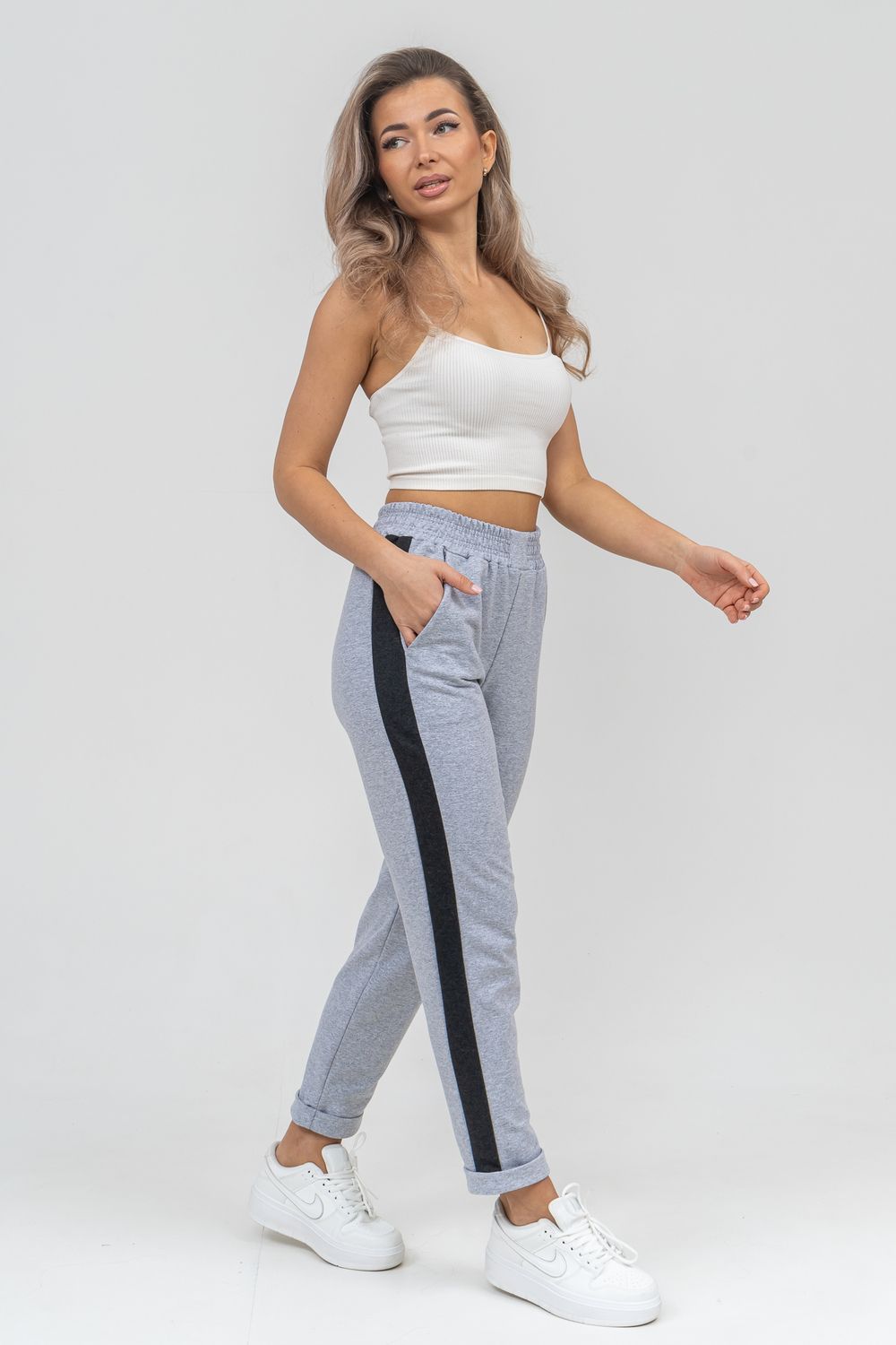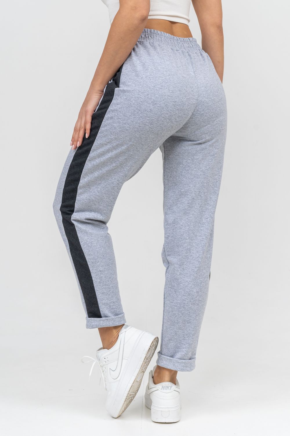 Молодежные брюки с длиной 7/8 и манжетом по низу, выполнены из футера цвета антрацит. По бокам брюк имеются карманы и светлые вставки. Пояс брюк обработан на специальной поясной машине. Брюки подходят как для спорта, так и для отдыха.