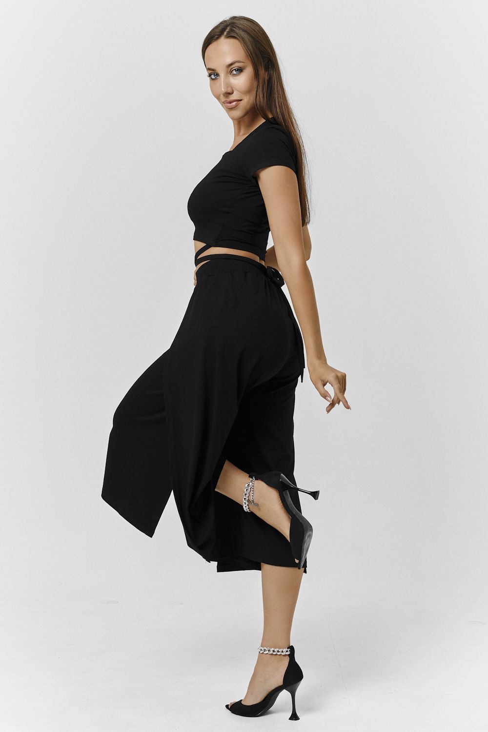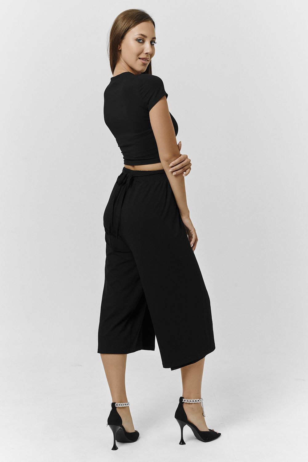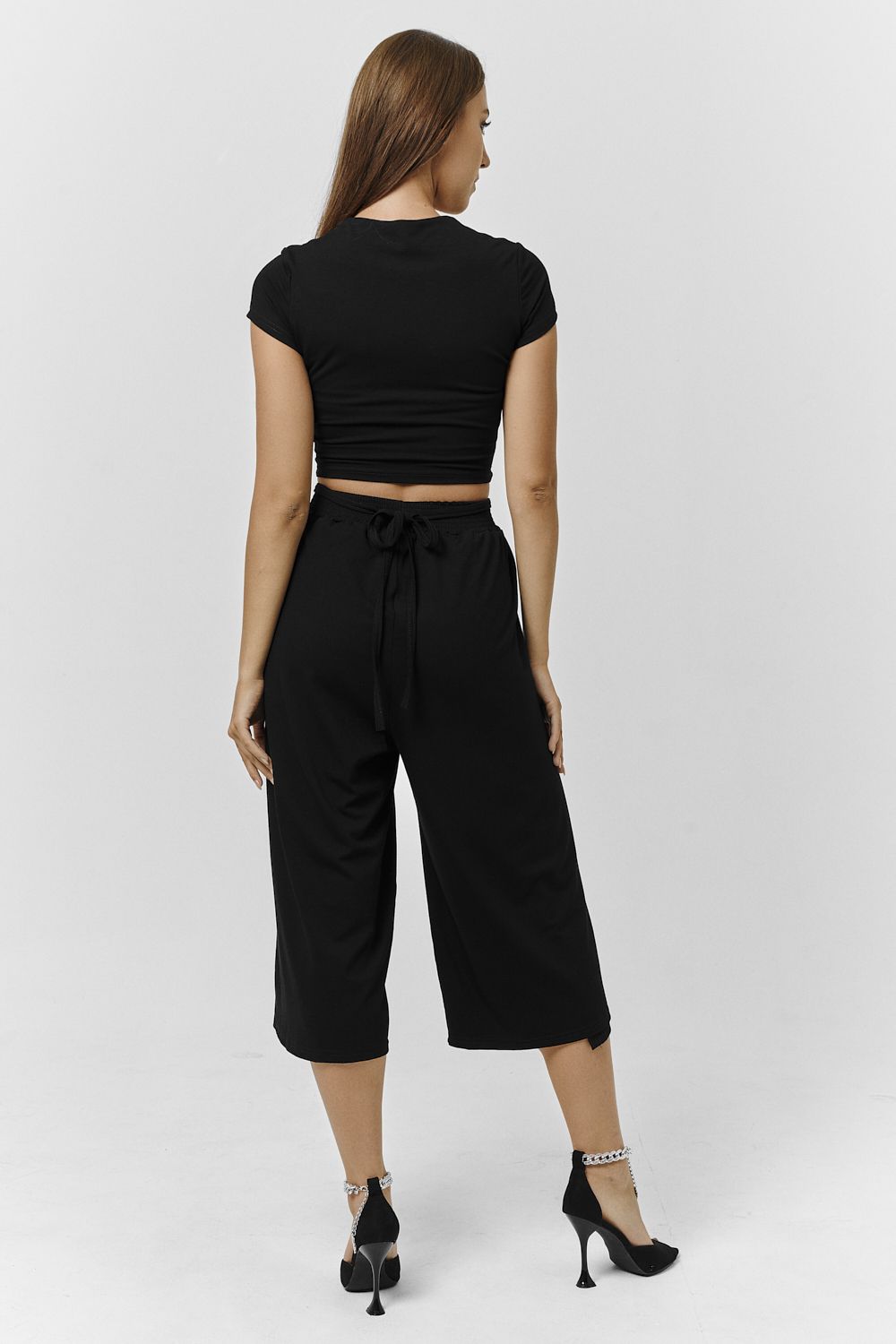 Брюки женские свободные, короткие, без боковых швов, до середины икры.