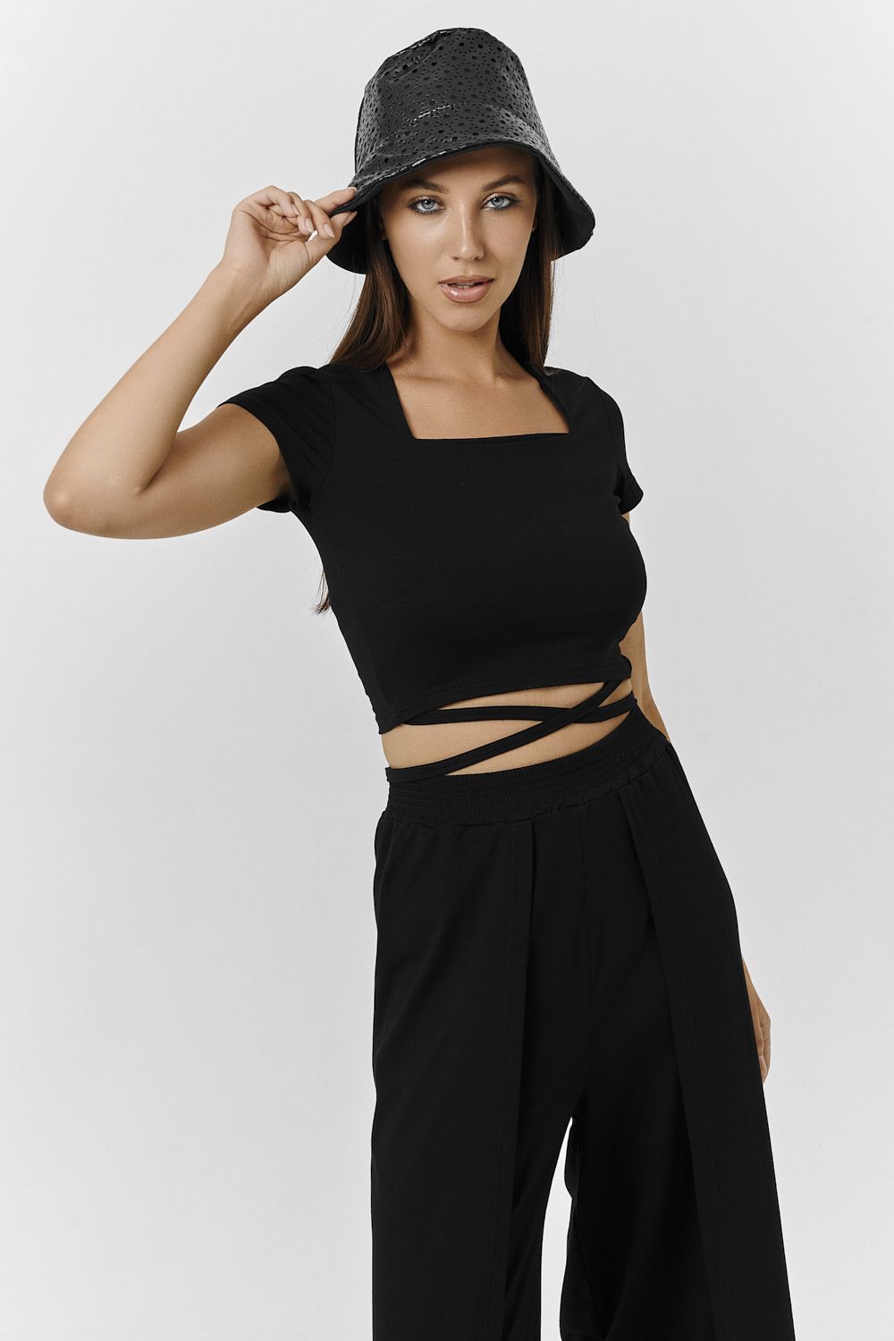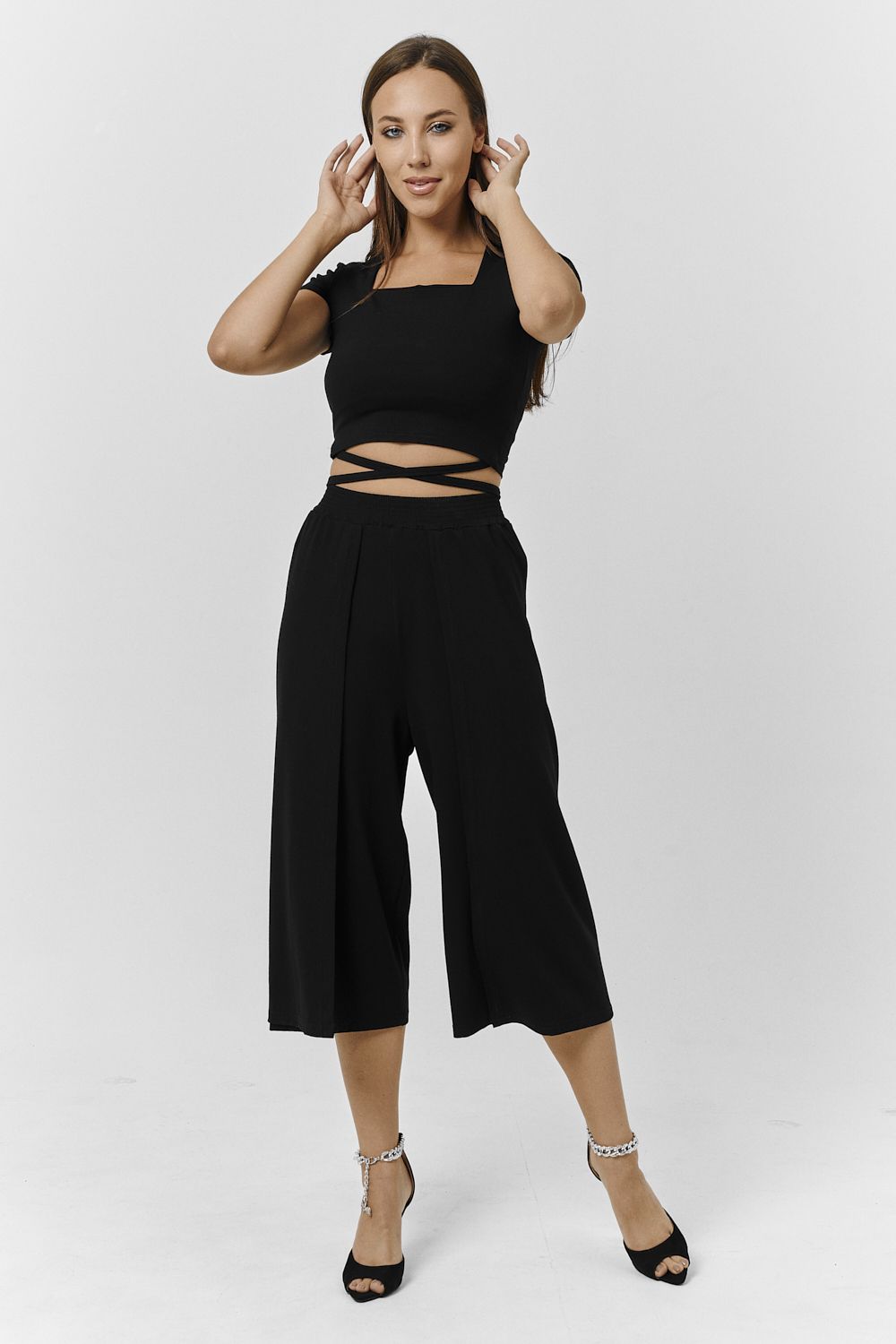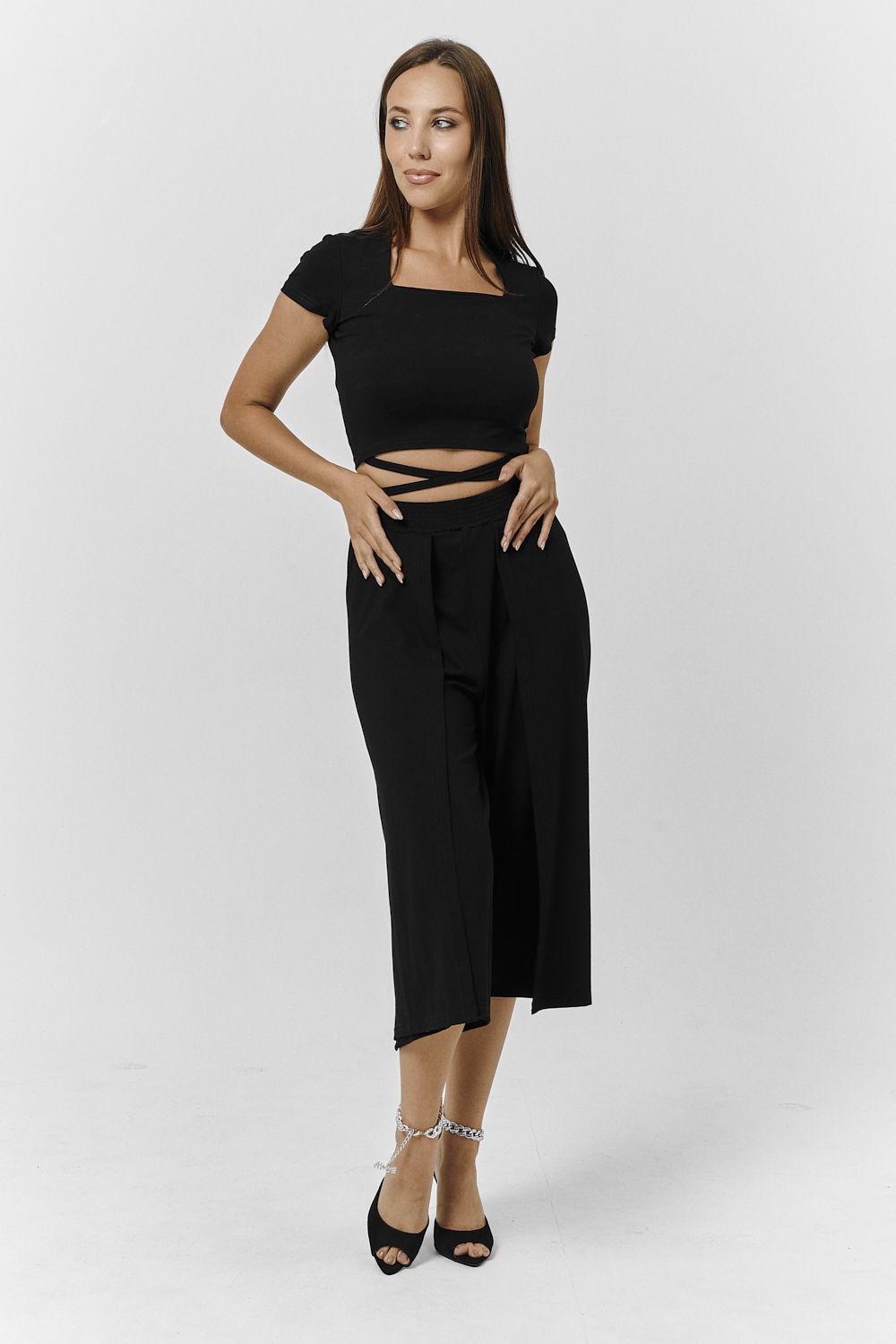 Брюки женские свободные, короткие, без боковых швов, до середины икры.