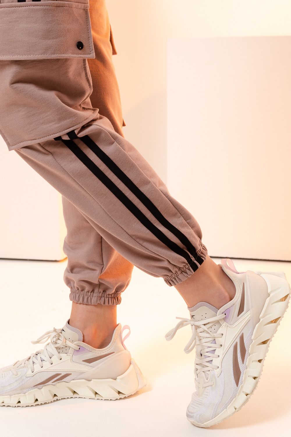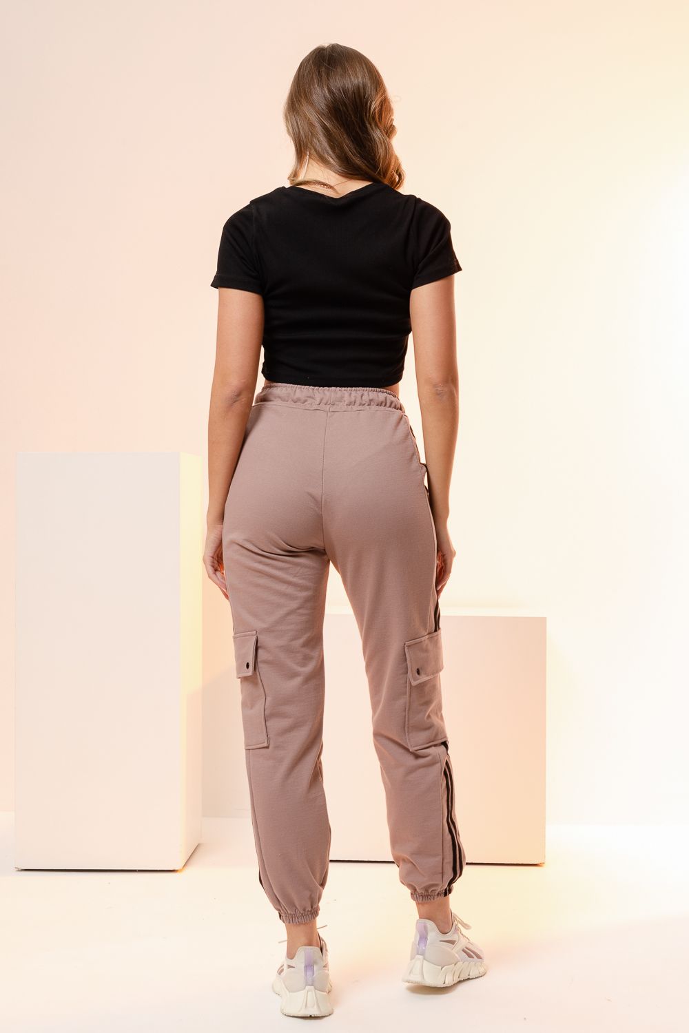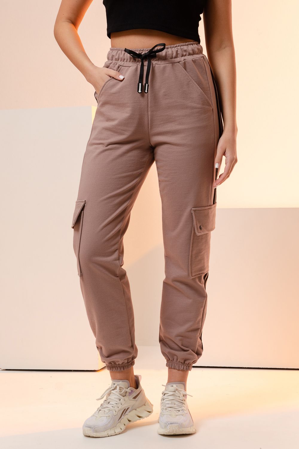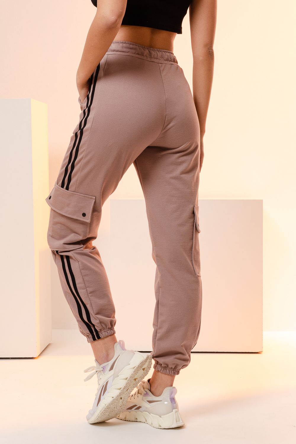Брюки спортивные женские. Модель отлично подойдет для прогулки в парке, занятий спортом, фитнесом. Материал хорошо пропускает воздух. Брюки для тех, кто стремится выглядеть хорошо в любую погоду не только летом, но и осенью - весной. Брюки в стиле карго с полосками по бокам, высокой посадкой имеют прямой крой, брюки будут держать модную планку еще несколько сезонов. За счет своего удобства и комфорта этот фасон стремительно набирает популярность. Отлично подойдут как для худеньких девушек и подростков, так и для полных женщин.