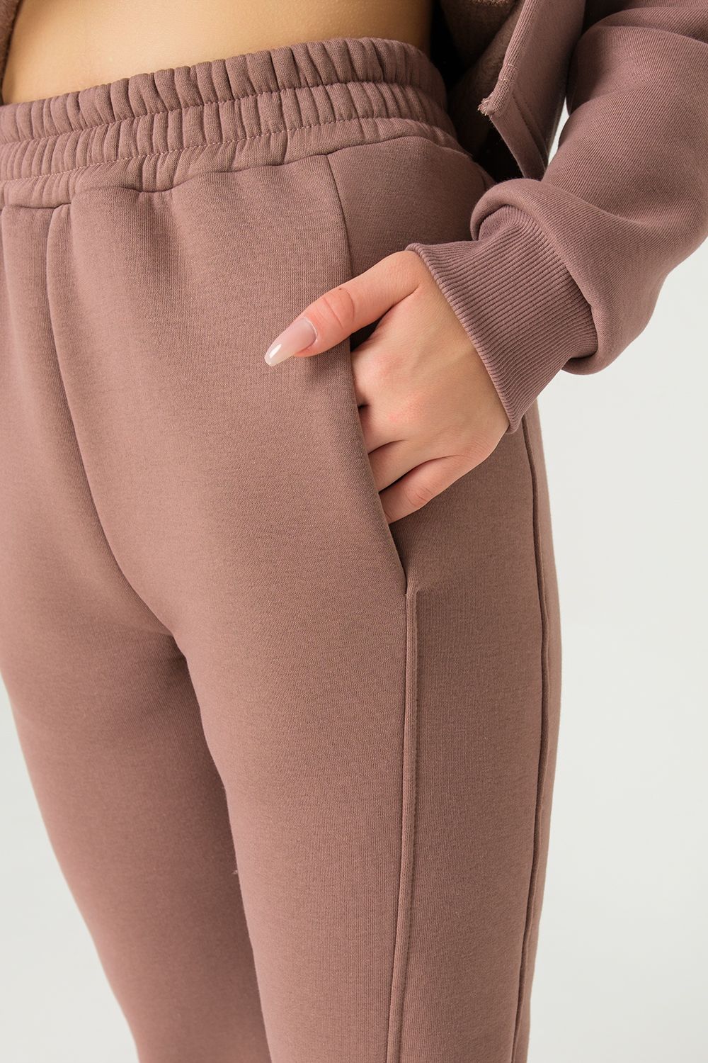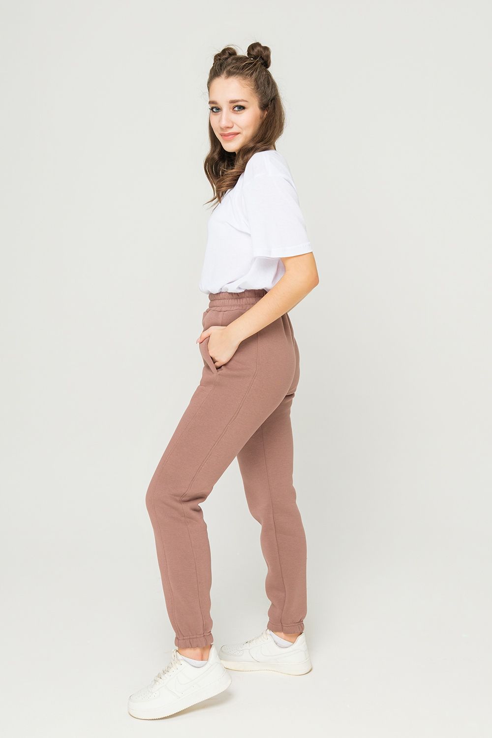 Брюки утепленные, на поясе, свободные, с боковыми карманами, собраны по низу на резинку. Вдоль боковых швов расположены лампасы.