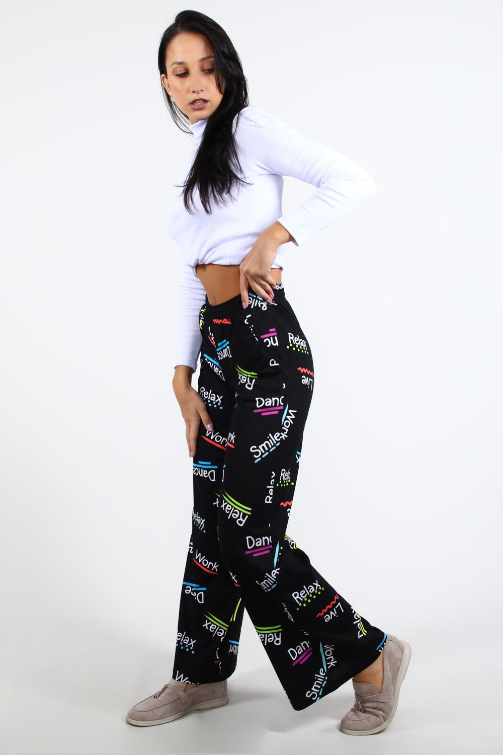 Брюки женские широкие, свободного покроя с поясом 4см. Данная модель выполнена из эластичного трикотажного полотна кулирка. На поясе присутствуют три декоративные строчки. Отлично подходят для прогулок и повседневной носки.