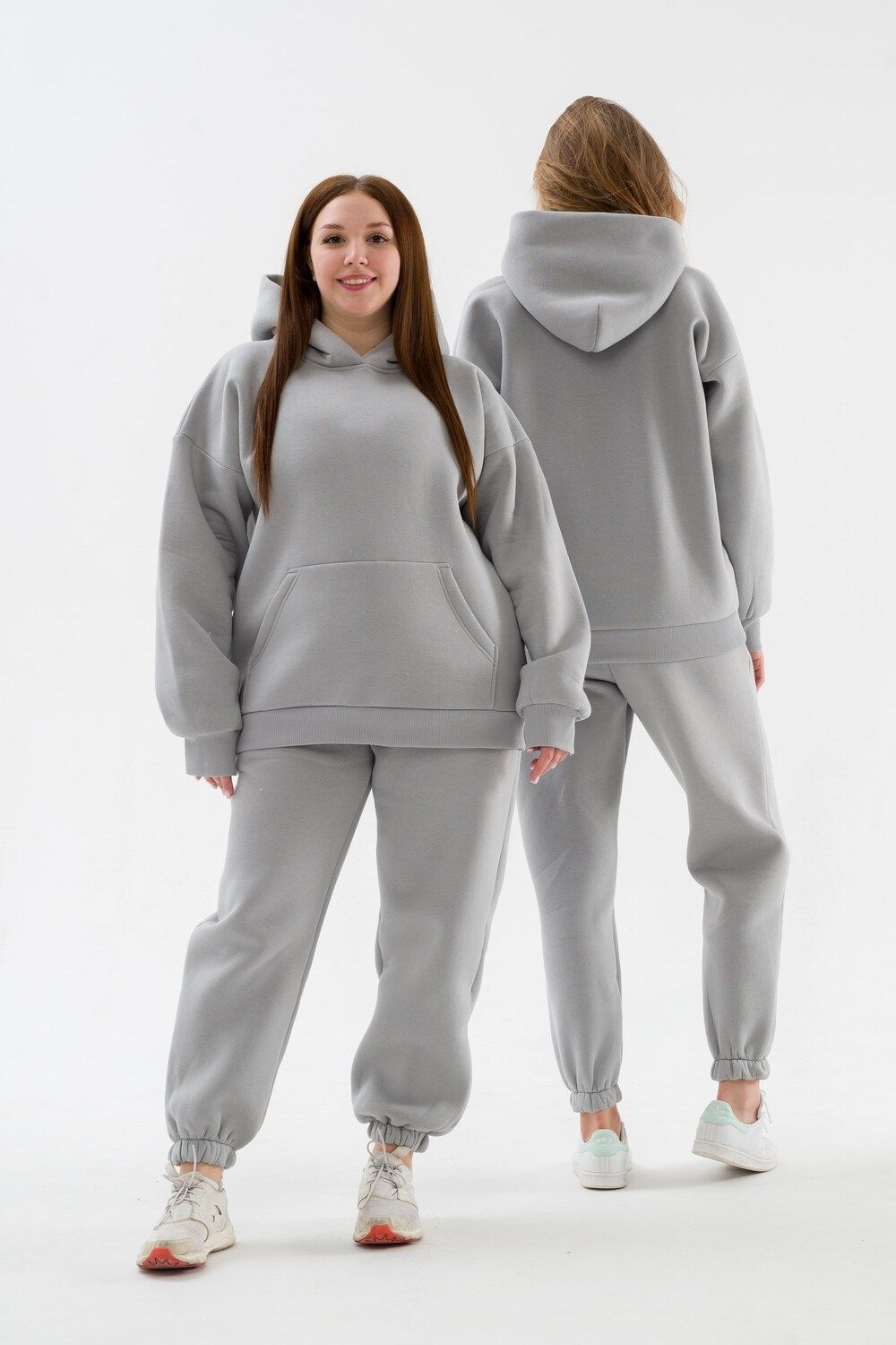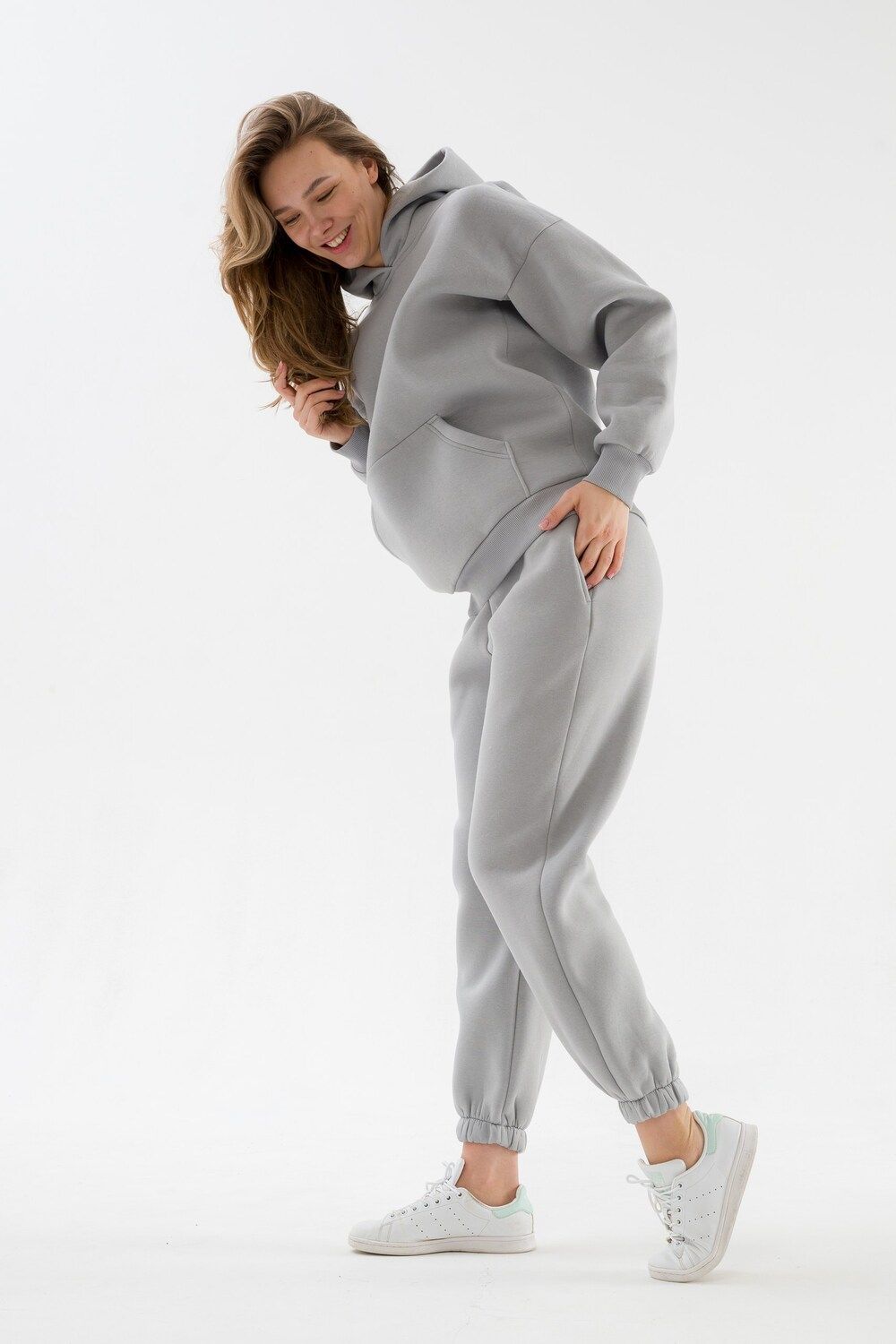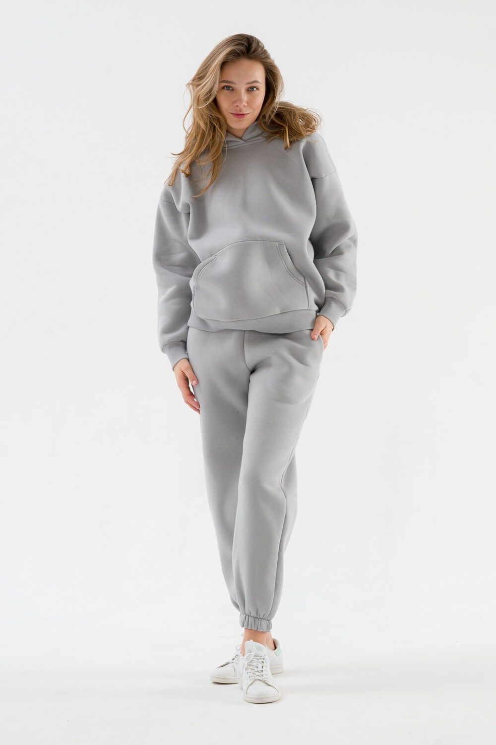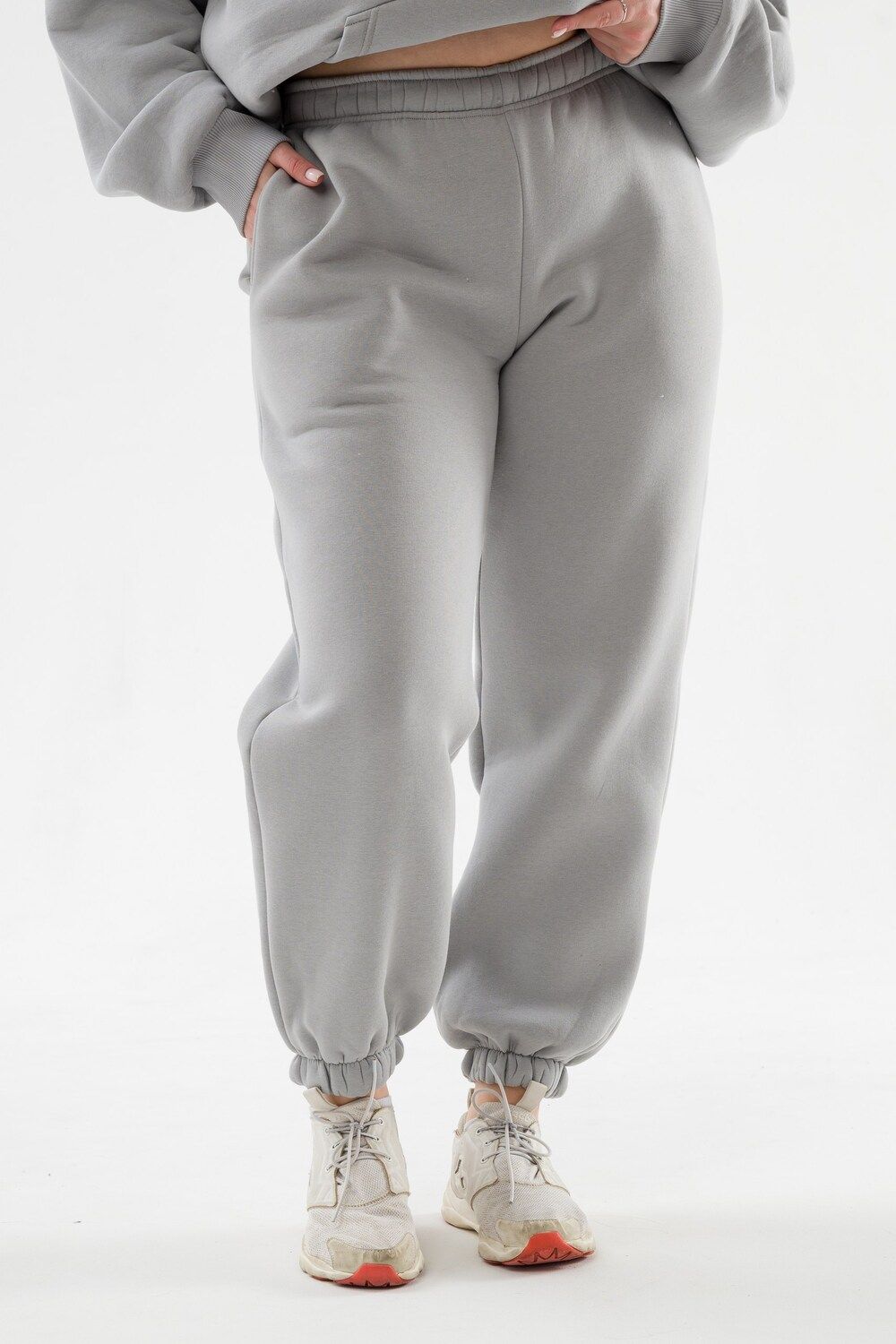 Брюки 89603 с начесом теплые костюмные - светло серый