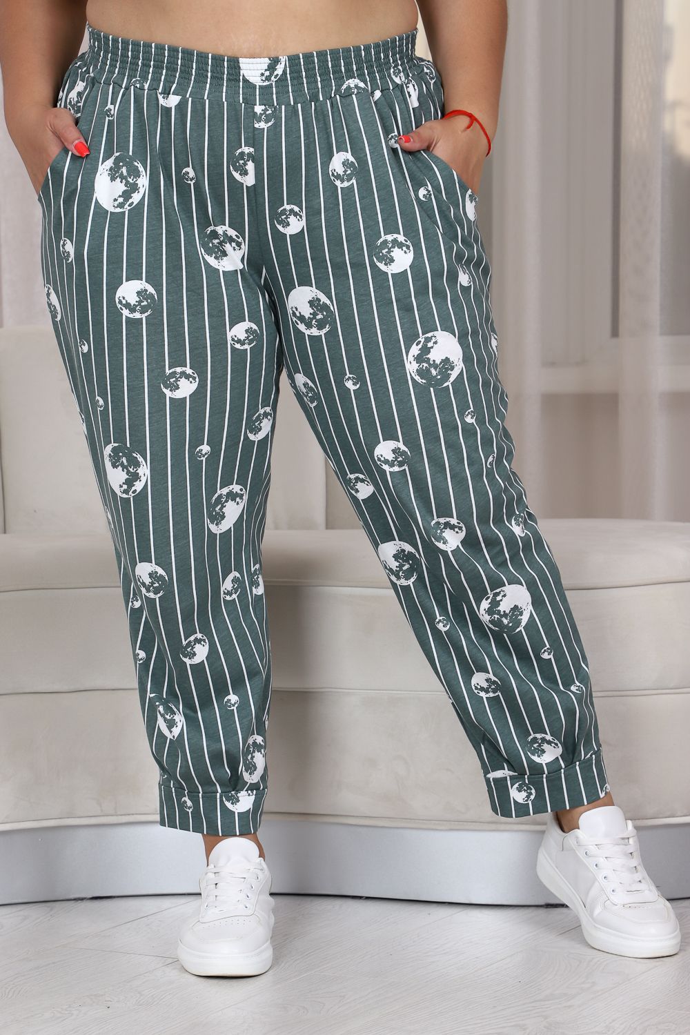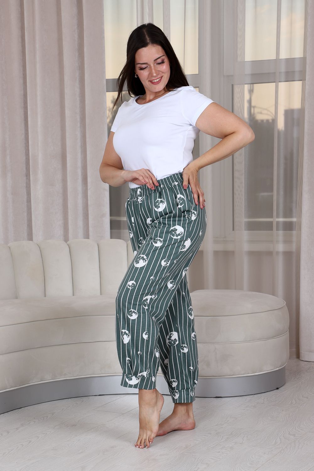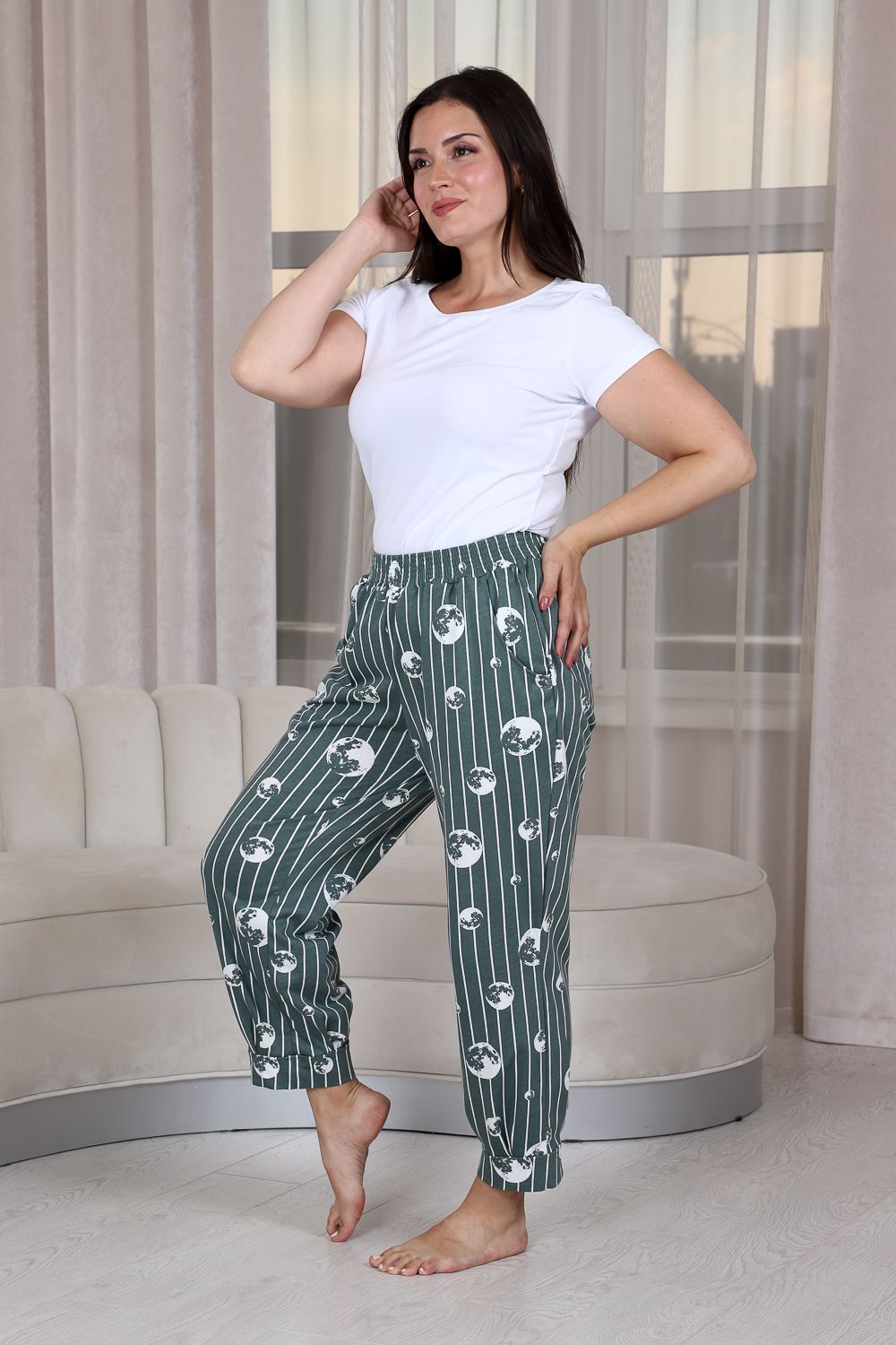Брюки женские, "бананы", внизу передней и задней части по две встречные складки, манжеты. В брюках удобные внутренние карманы, пояс выполнен на многоигольной машине.