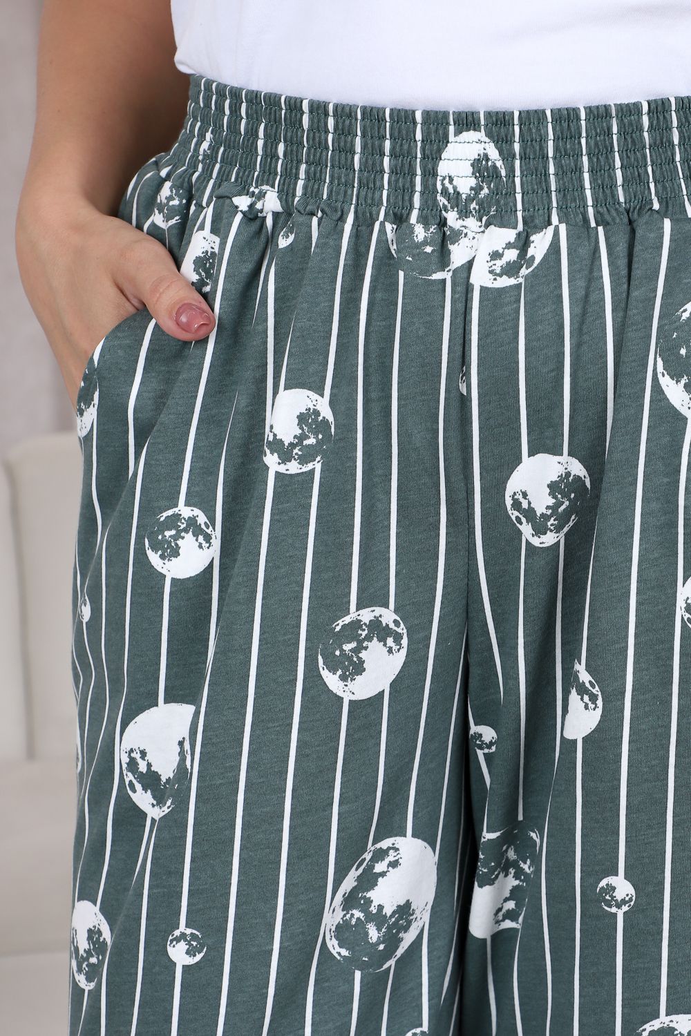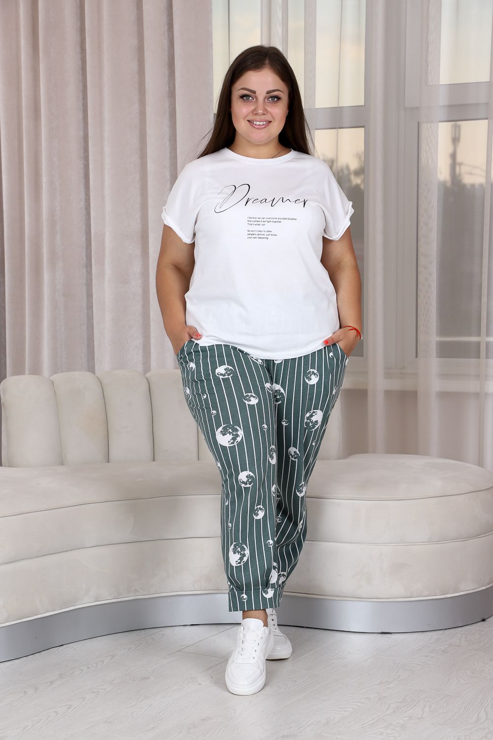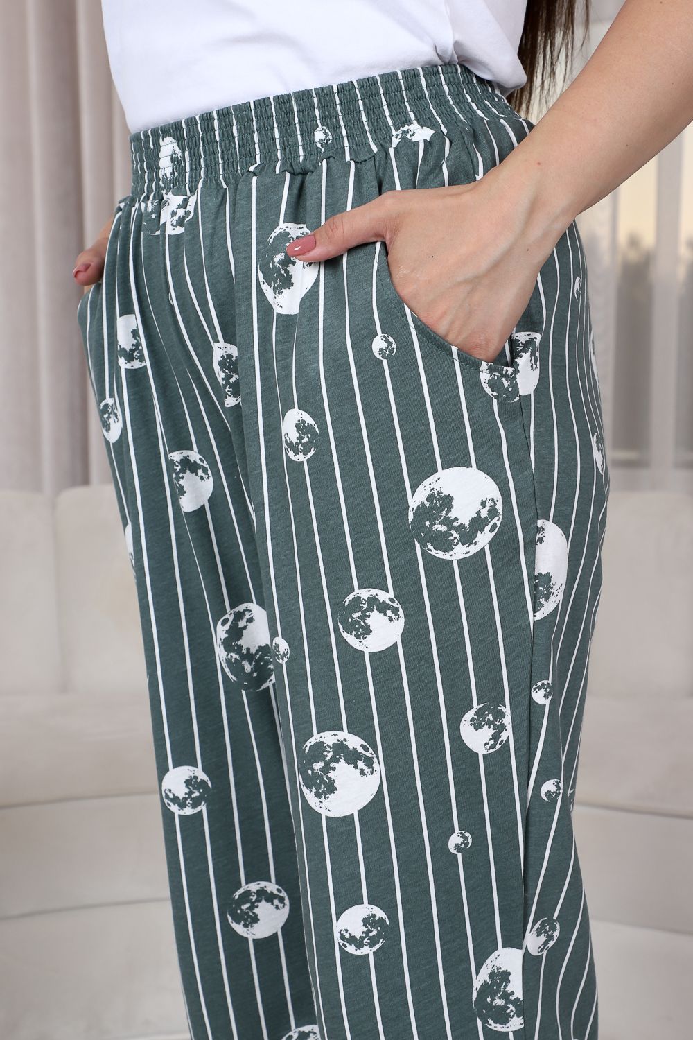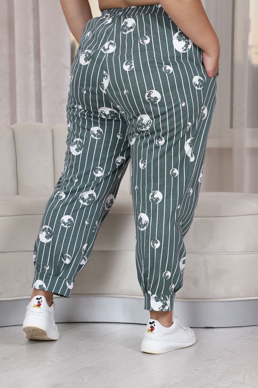 Брюки женские, "бананы", внизу передней и задней части по две встречные складки, манжеты. В брюках удобные внутренние карманы, пояс выполнен на многоигольной машине.