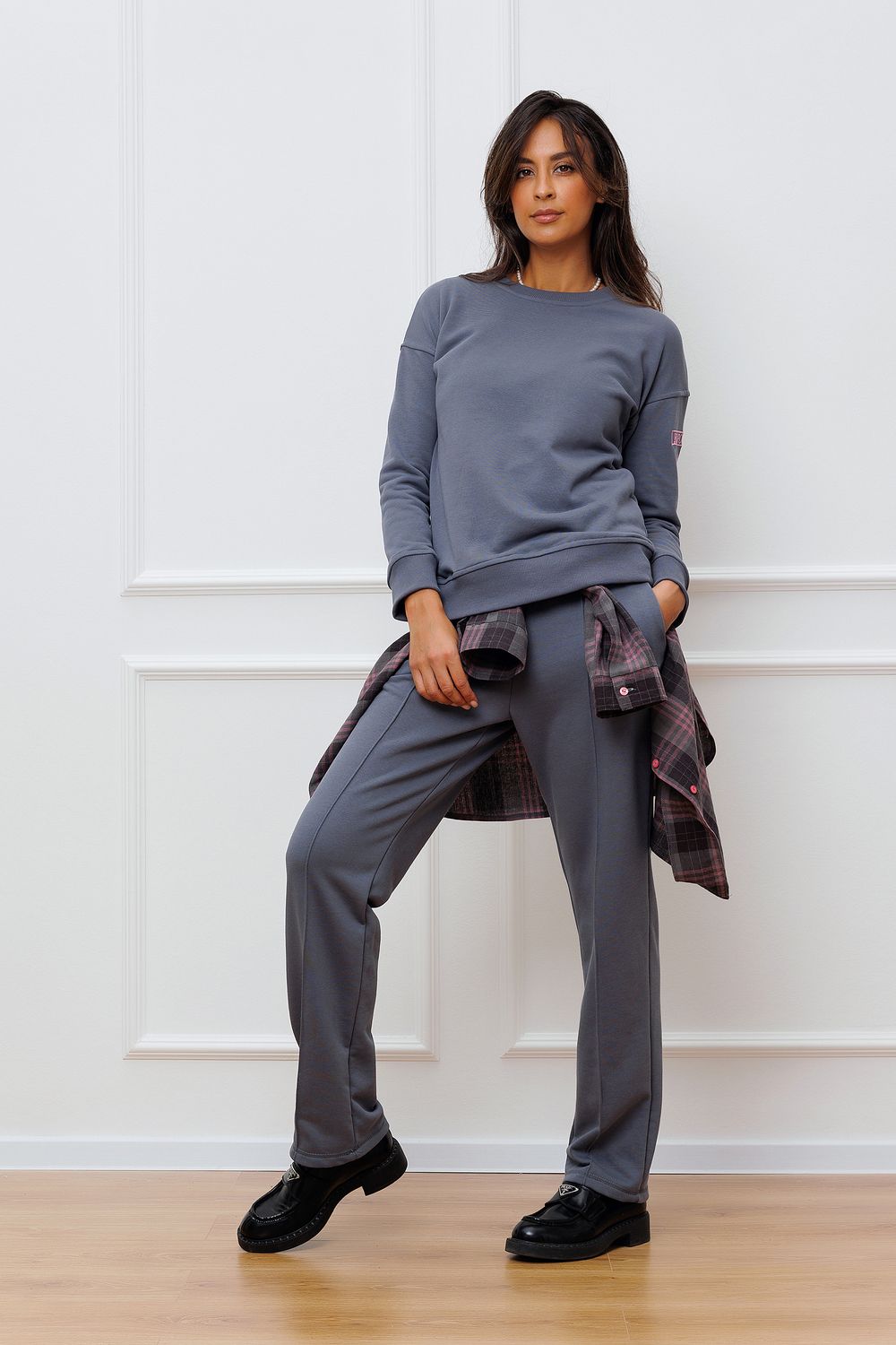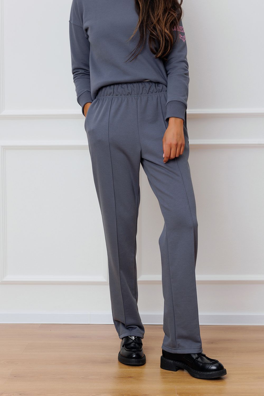 Повседневные женские брюки Raposa в спортивном стиле, станут отличным дополнением к вашему гардеробу. Cовременный дизайн и комфортная посадка позволят вам чувствовать себя уверенно и стильно в любой ситуации. Модель доступна в двух расцветках: яркий зелено-бирюзовый и графитовый. Штаны имеют прямой крой, который подчеркнет вашу фигуру и создаст элегантный образ. Пояс на эластичной резинке, что обеспечивает идеальную посадку на талии и комфорт при движении. Декоративная отстрочка по всей длине изделия придает брюкам особый шарм и стильный вид. Она создает эффектный контраст и привлекает внимание к деталям. Брюки осенние отлично сочетаются с различным верхом и обувью, позволяя создавать разнообразные образы. Рекомендуем полный образ со свитшотом Raposa.