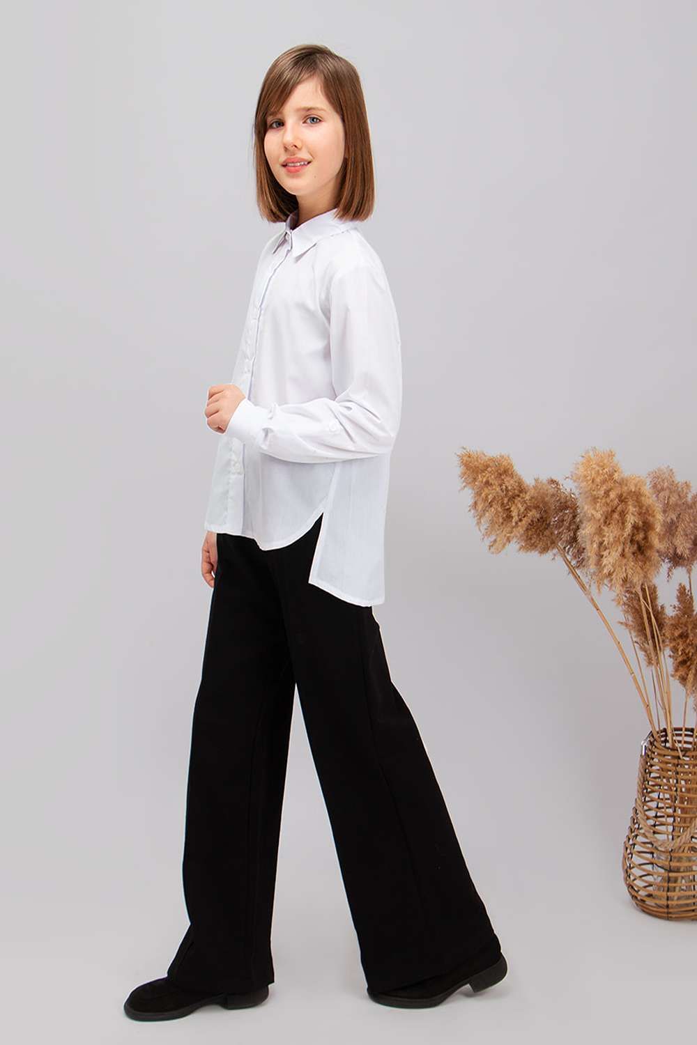 Стильные, трикотажные брюки палаццо на широкой резинке, без молнии и пуговиц. Модель имеет расширяющийся от бедра силуэт, что визуально вытягивает фигуру. Брюки прекрасно сочетаются с любым верхом, и подойдут для любого мероприятия, подчеркнут индивидуальный стиль девочки, и разнообразят ее повседневный школьный образ.