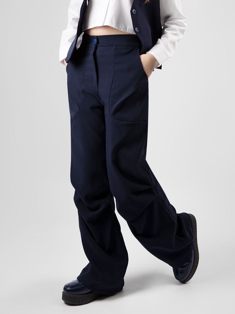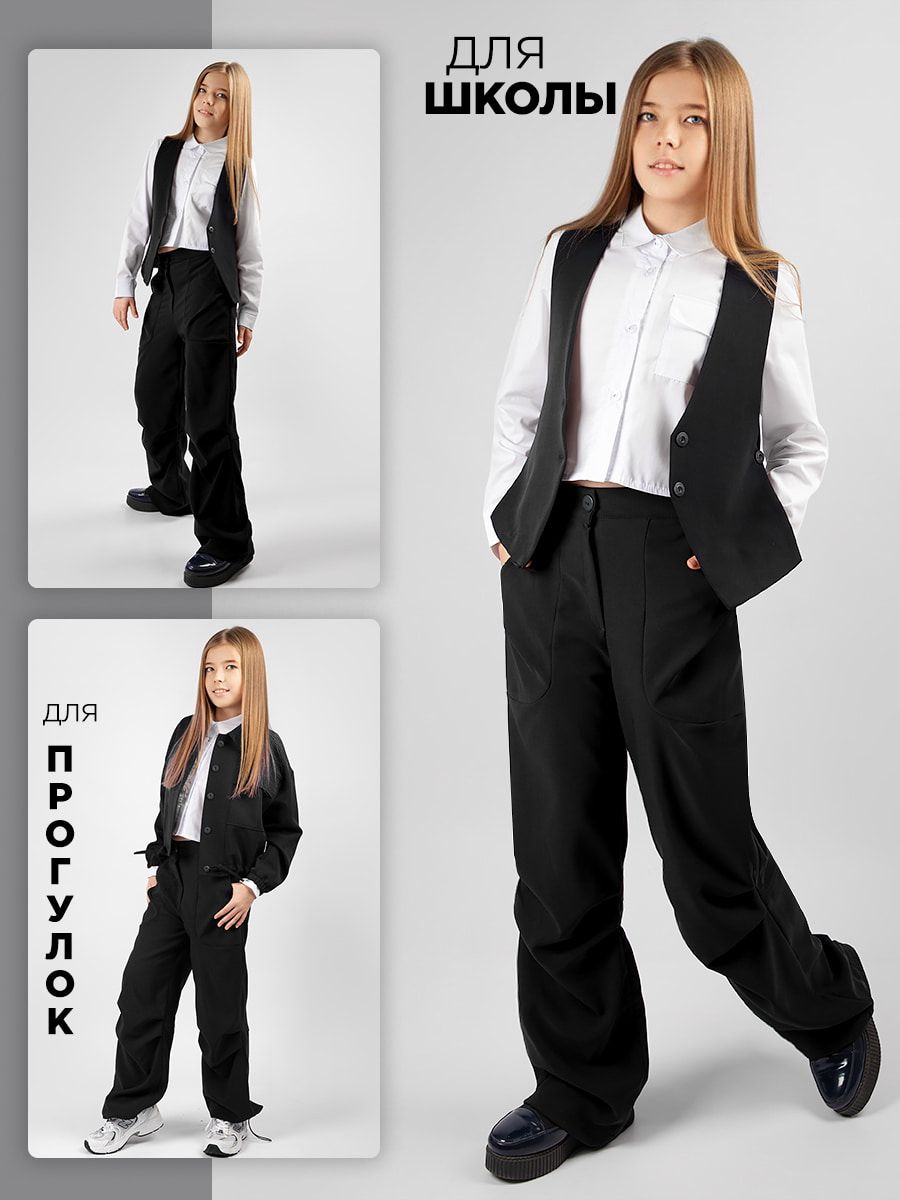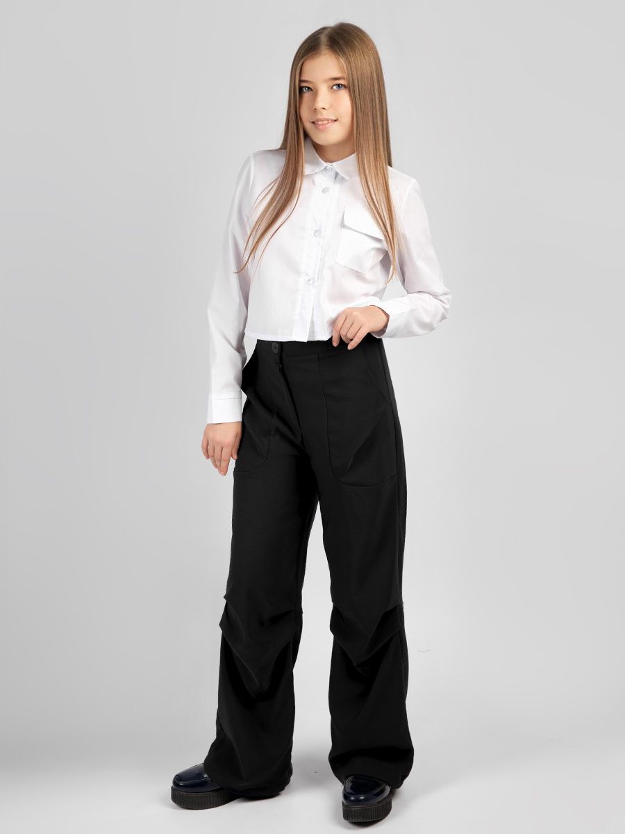 Брюки-карго для девочки Соль&Перец в стиле спорт шик. Брюки с большими накладными карманами по бокам, застёгиваются на молнию и пуговицу, сзади в пояс вшита резинка. Защипы в районе колен создают комфорт при движениях, низ брючин на регулируемой резинке. Брюки выполнены из износостойкой костюмной ткани «Босс» которая долго сохраняет форму и привлекательный внешний вид. Это отличный вариант для создания стильного школьного образа.