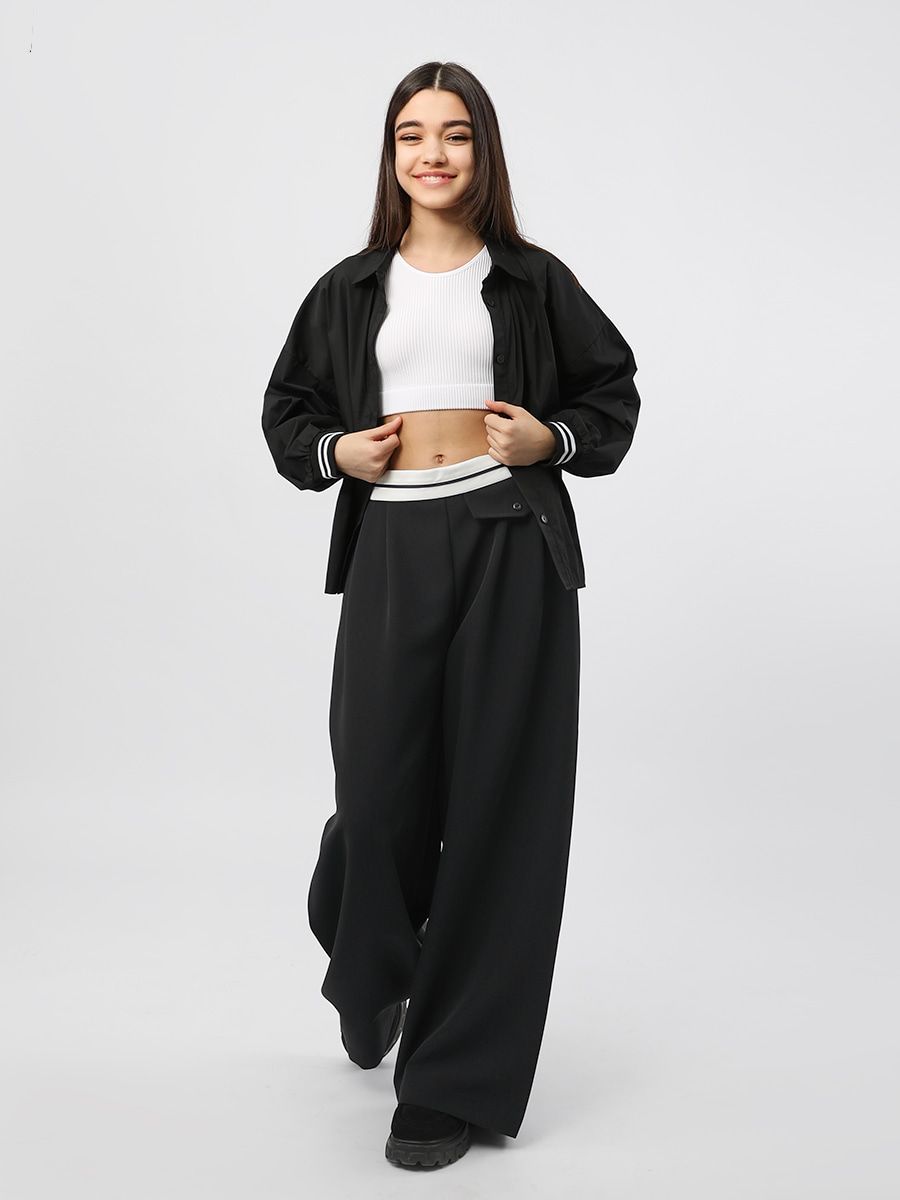 Брюки для девочки Соль&Перец. Модель имеет расширяющийся от бедра силуэт, что визуально вытягивает фигуру. Брюки застёгиваются на потайную молнию, сзади в пояс вшита резинка. Брюки прекрасно сочетаются с любым верхом, и подойдут для любого мероприятия, подчеркнут индивидуальный стиль девочки, и разнообразят её школьный образ.