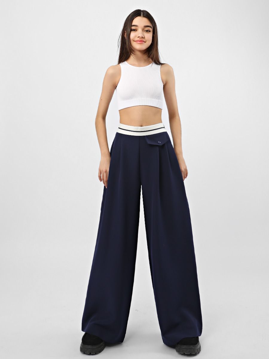Брюки для девочки Соль&Перец. Модель имеет расширяющийся от бедра силуэт, что визуально вытягивает фигуру. Брюки застёгиваются на потайную молнию, сзади в пояс вшита резинка. Брюки прекрасно сочетаются с любым верхом, и подойдут для любого мероприятия, подчеркнут индивидуальный стиль девочки, и разнообразят её школьный образ.
