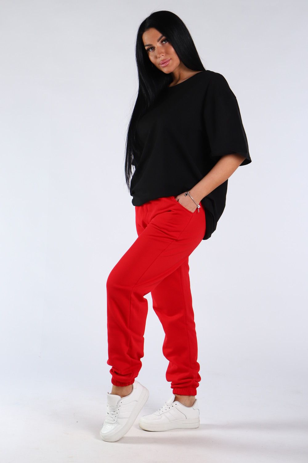 Брюки футер двухнитка с тонким начесом Арт. 1009 - красный