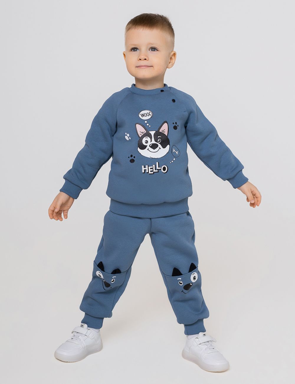 Брюки "Кольт" для мальчика из мягкого футера с начёсом. Пояс на резинке, низ штанины на эластичных манжетах. Принт, нанесённый методом шелкографии.