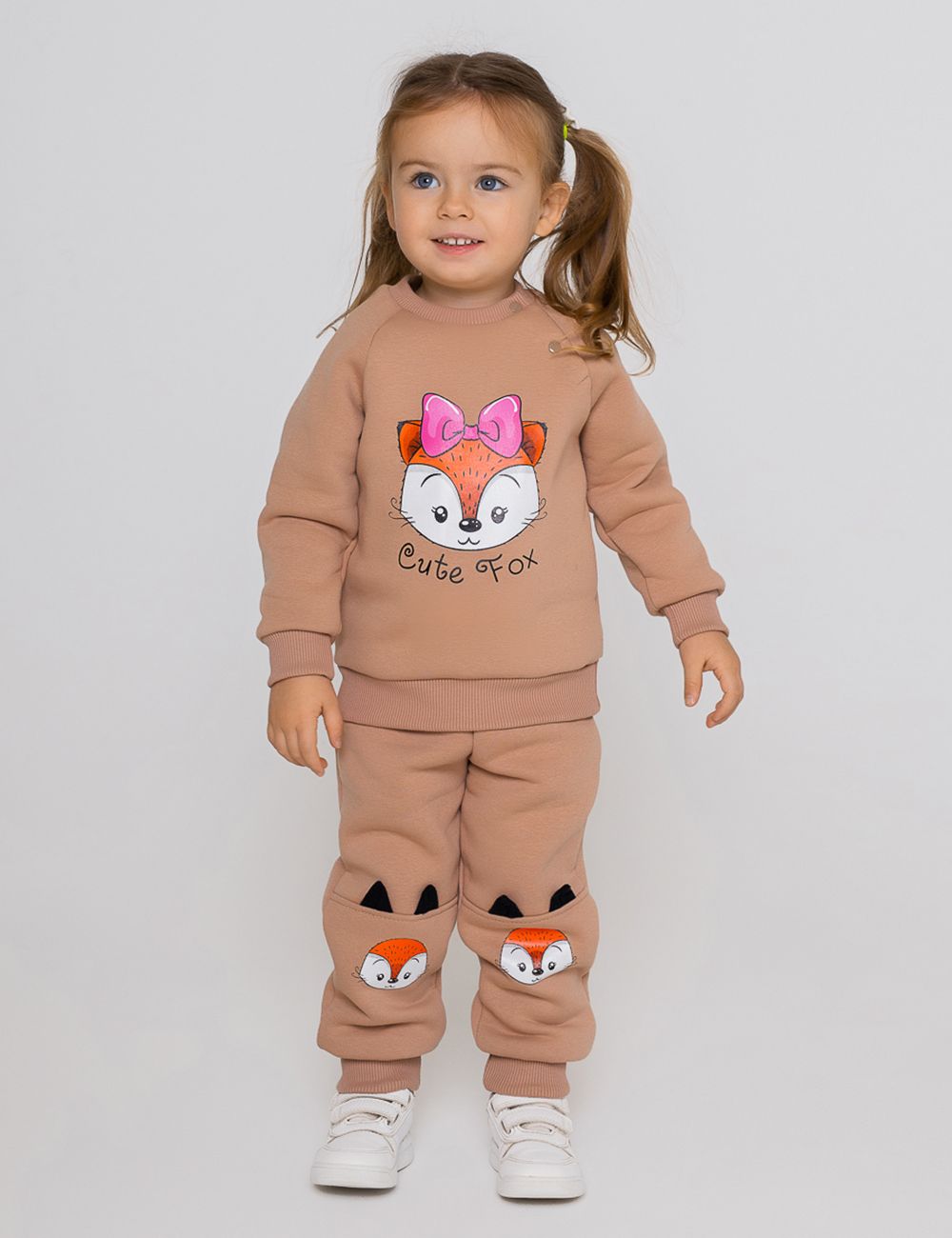 Брюки "Софи" для девочки из мягкого футера с начёсом. Пояс на резинке, низ штанины на эластичных манжетах. Принт, нанесённый методом шелкографии.