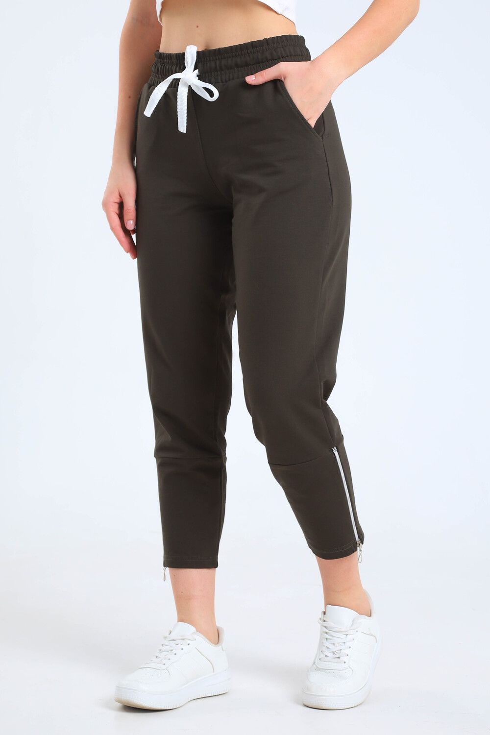 Женские укороченные брюки, пояс на резинке с регулируемым шнурком, два боковых кармана, зауженный низ на молнии. Сделаны из высококачественного трикотажного хлопка, легкие и приятные к телу, не сковывают движения. Идеально подходят для любого случая, для спорта, для прогулок, для дома.