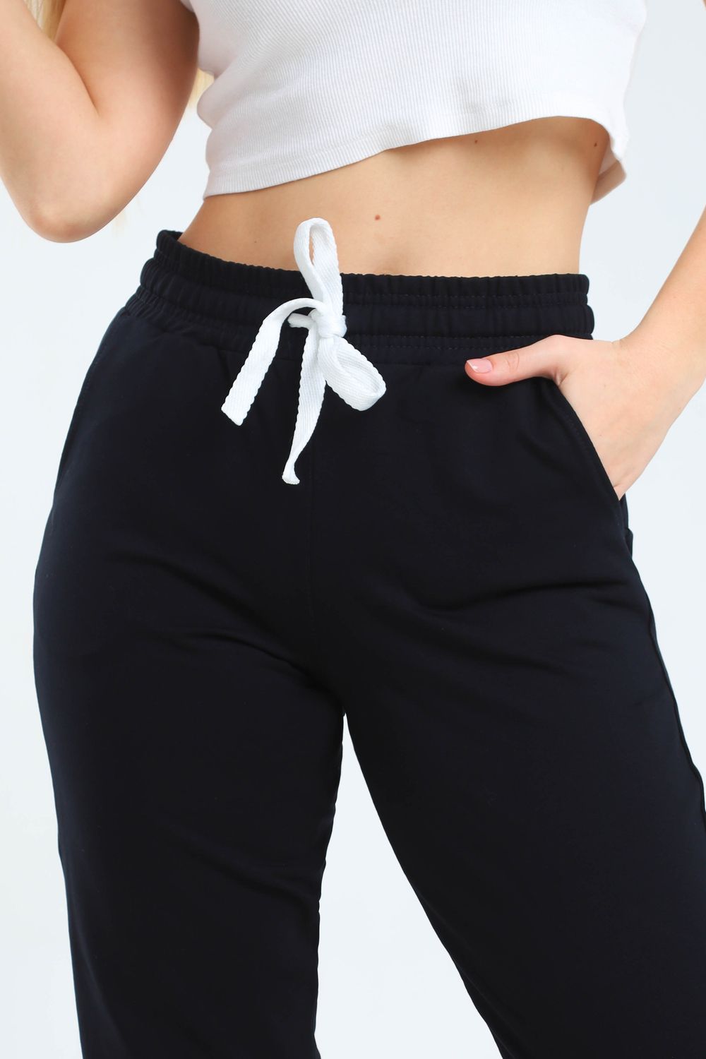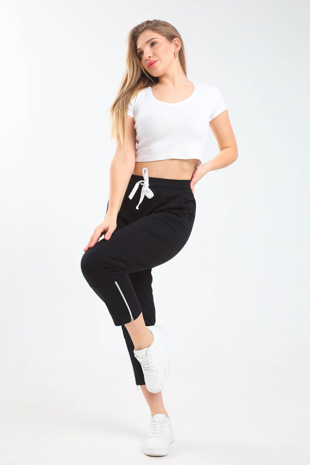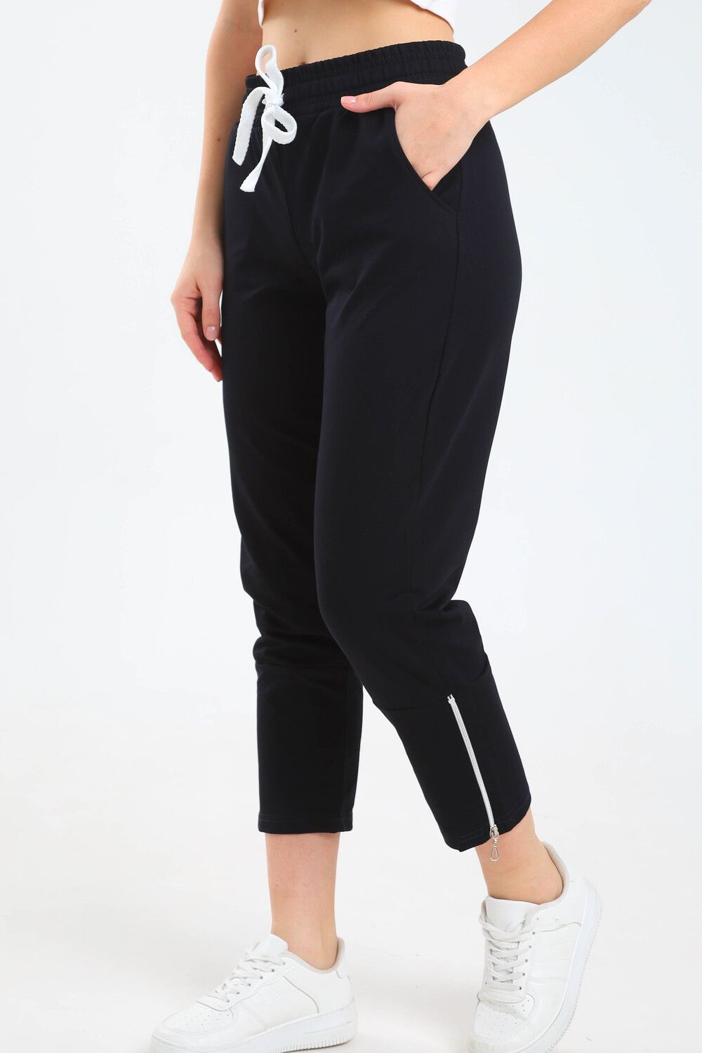 Женские укороченные брюки, пояс на резинке с регулируемым шнурком, два боковых кармана, зауженный низ на молнии. Сделаны из высококачественного трикотажного хлопка, легкие и приятные к телу, не сковывают движения. Идеально подходят для любого случая, для спорта, для прогулок, для дома.