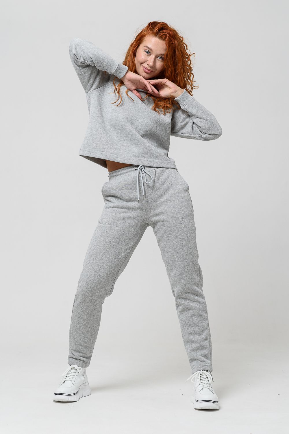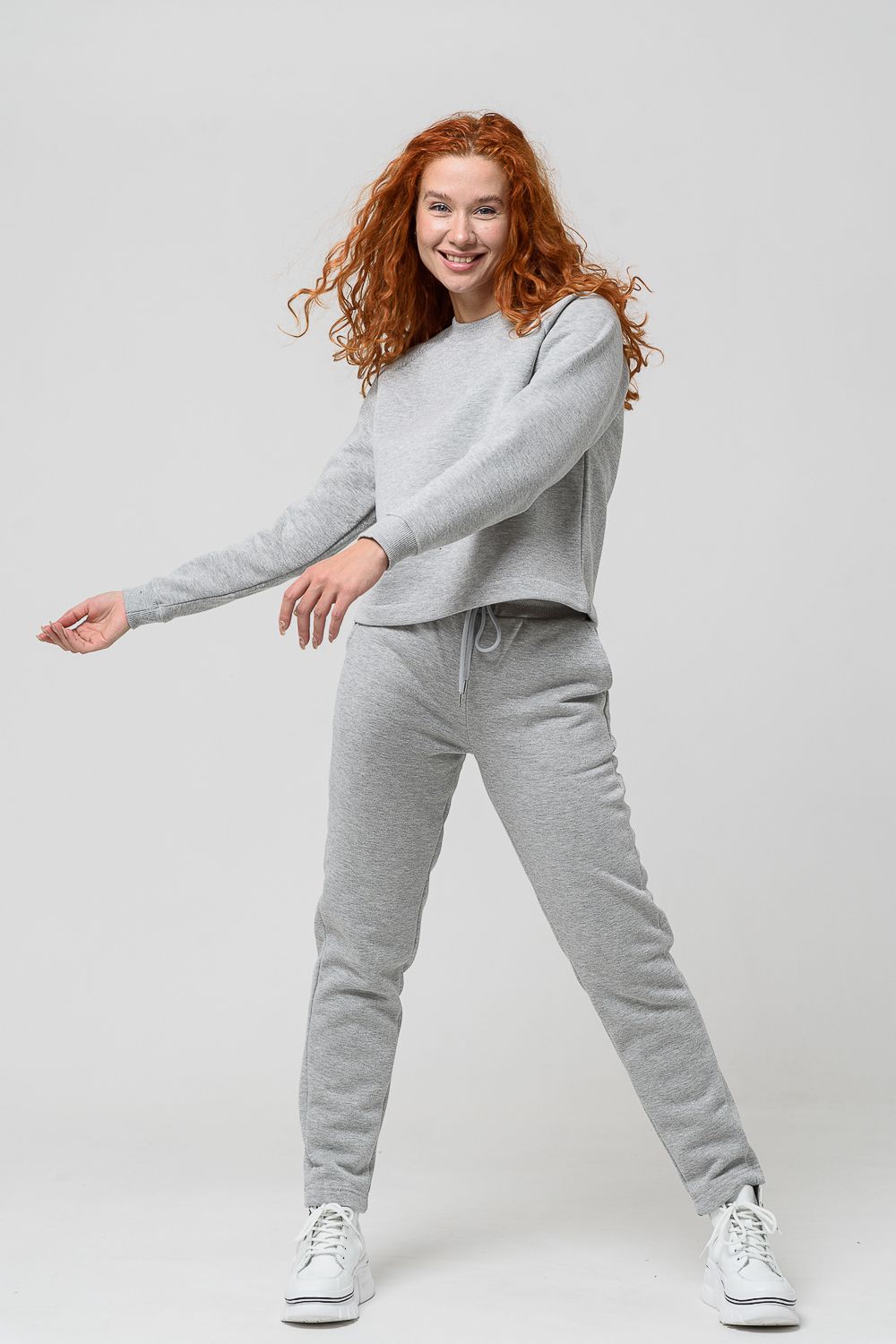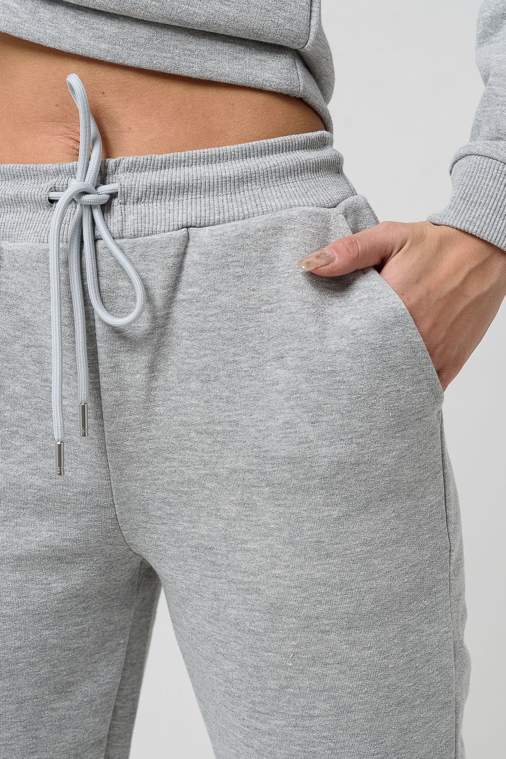 Брюки женские прямого силуэта. Выполнены из мягкой теплой ткани футера с начесом. Пояс брюк на эластичной широкой резинке со шнурком.
