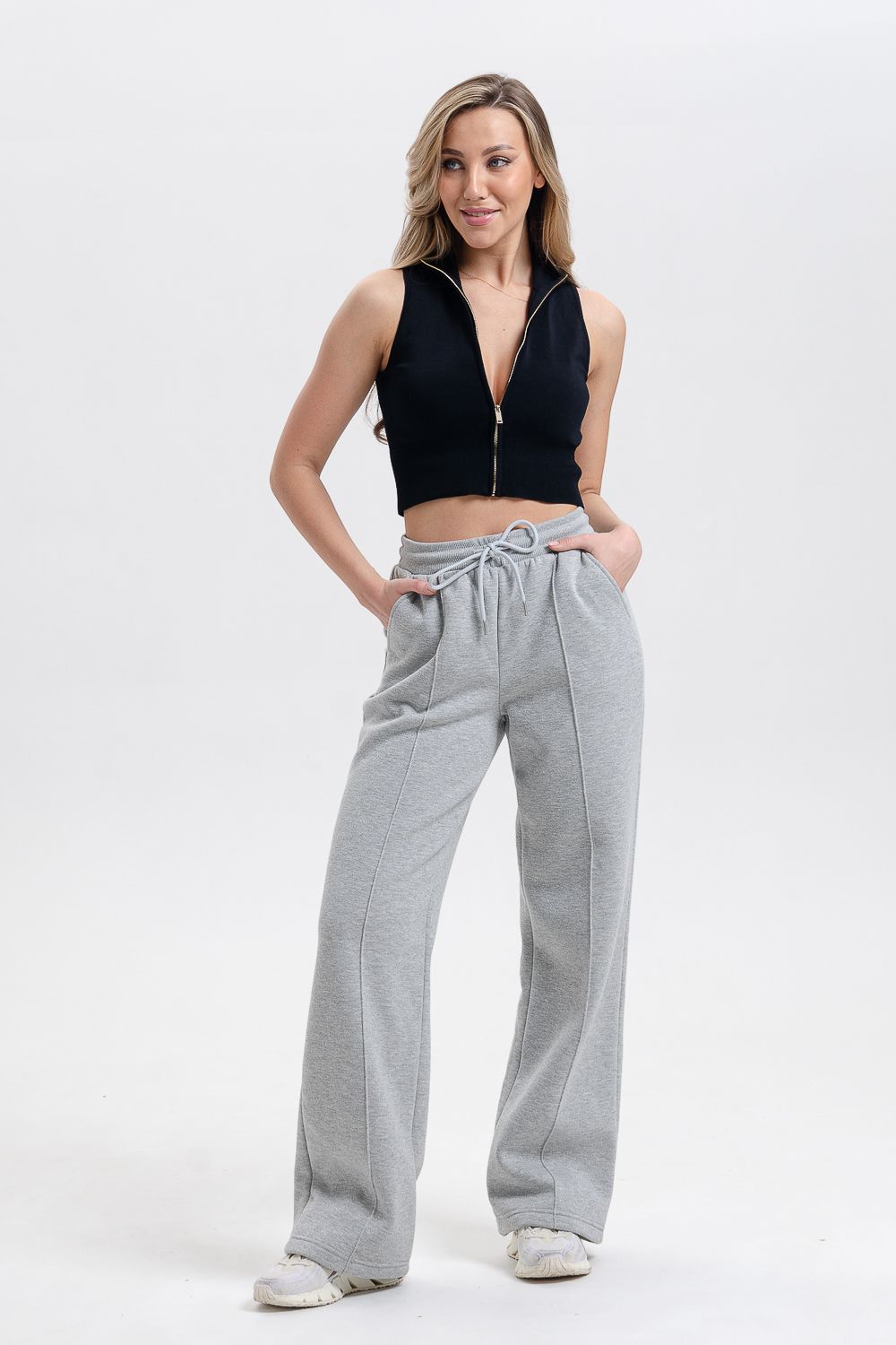 Широкие женские брюки с карманами - это современная классика. Брюки утепленные, с высокой посадкой, широкие свободные. Модель со стрелками, идеальна для повседневной носки в прохладную погоду.